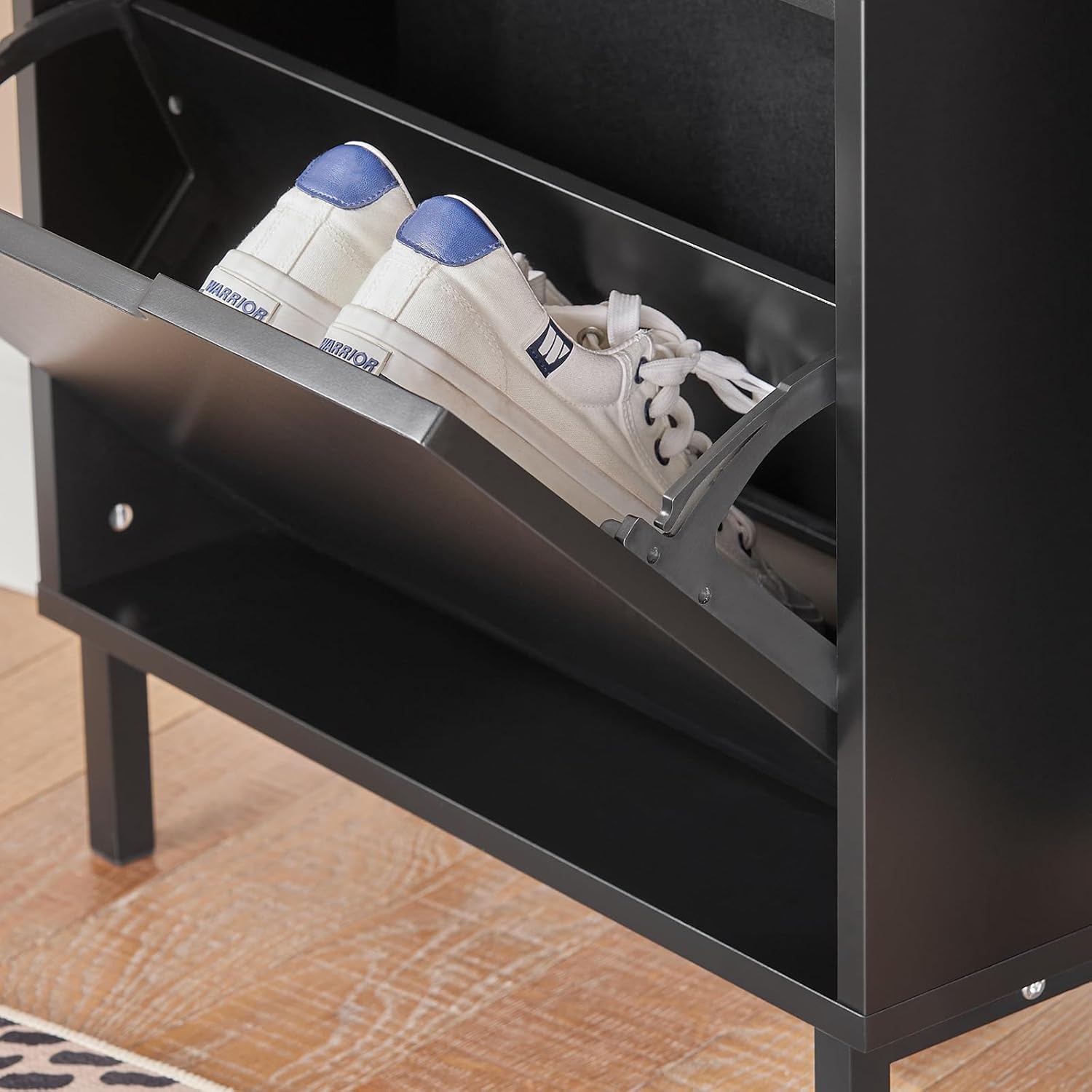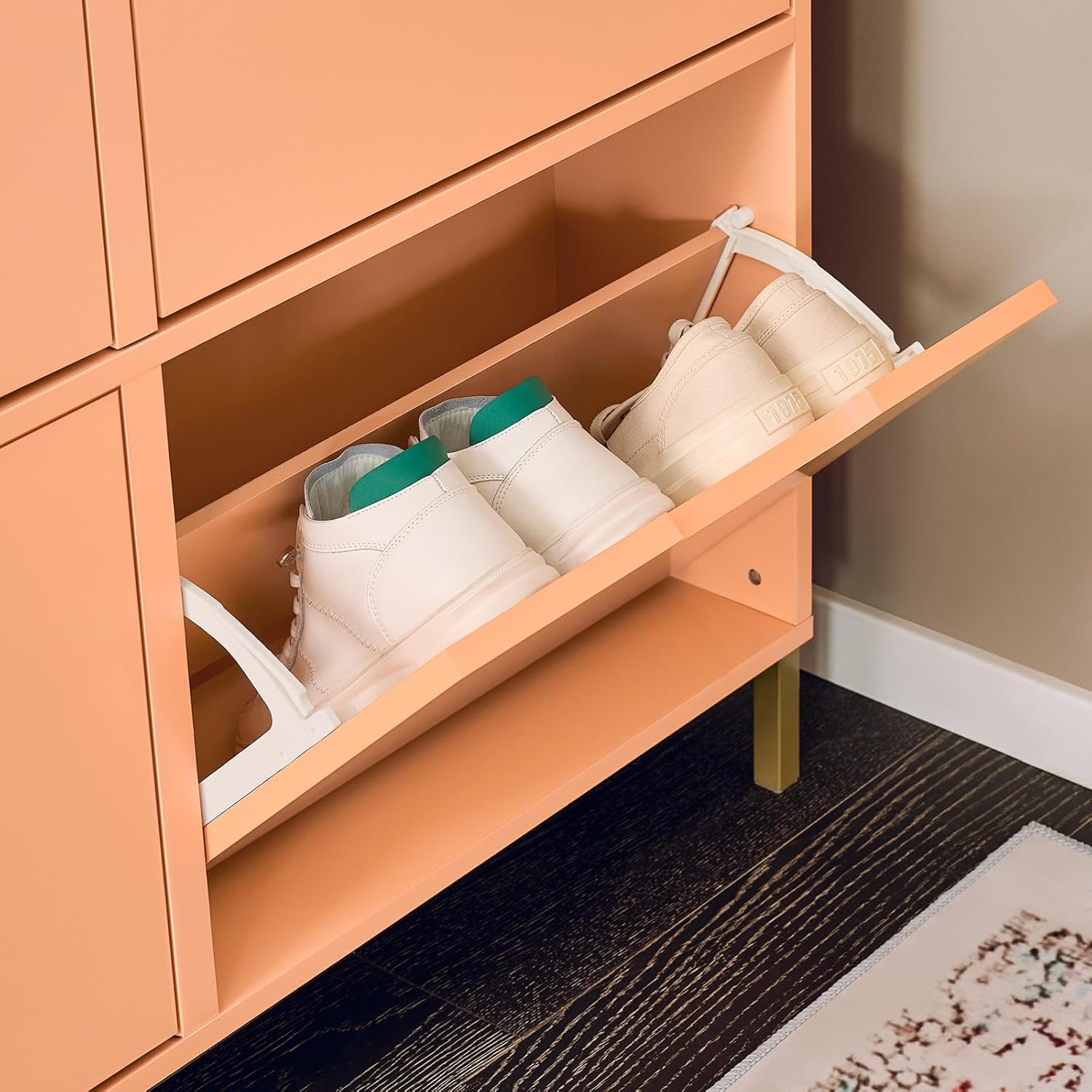 Con dure scomparti ribaltabili con 4 ripiani interni, puoi riporre le tue scarpe in modo ordinato. |
