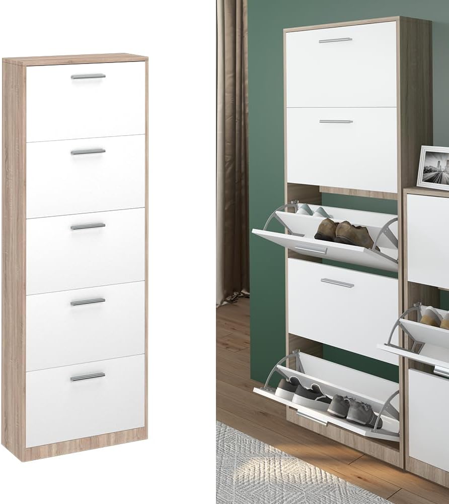 • La scarpiera offre 5 ripiani pieghevoli per scarpe e ampio spazio di archiviazione.