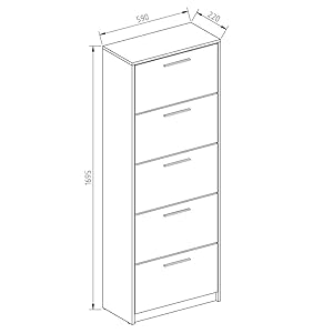 • DIMENSIONI: La scarpiera ha le seguenti misure: 59 cm - Larghezza, 169,5 cm - Altezza, 22 cm - Profondità.
