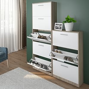 • Questa scarpiera moderna è un vero miracolo di spazio. In uno spazio minimo è possibile riporre il massimo delle scarpe.