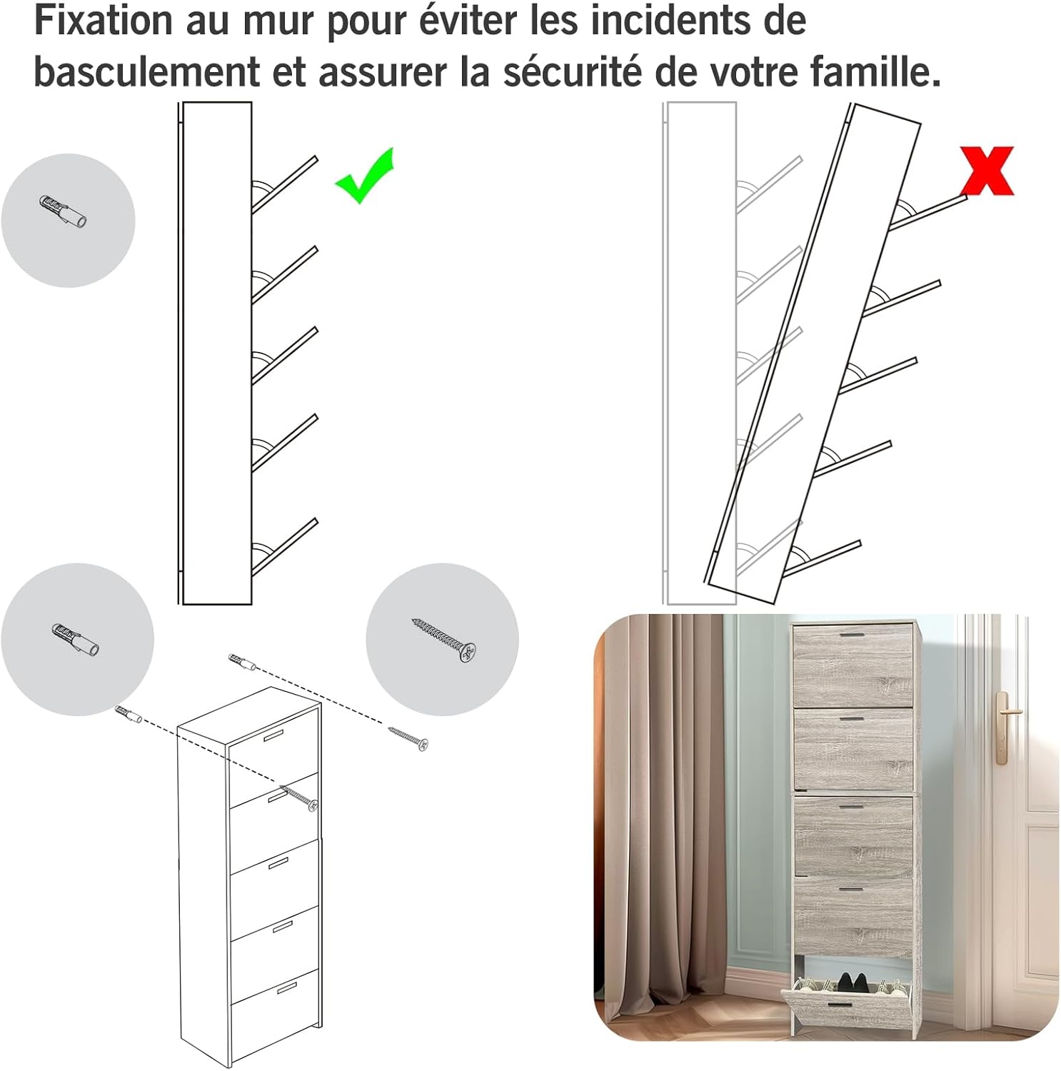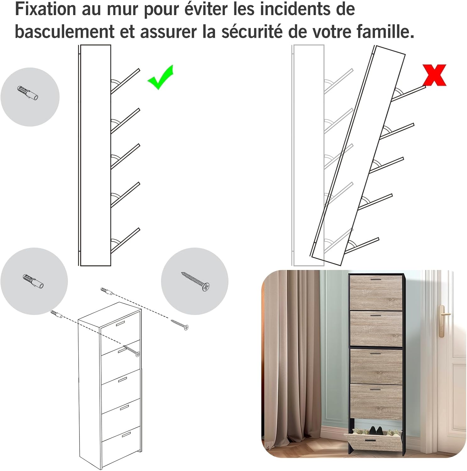 - Stretto (profondità 17 cm), il mobile si integrerà perfettamente nel vostro ingresso o corridoio.