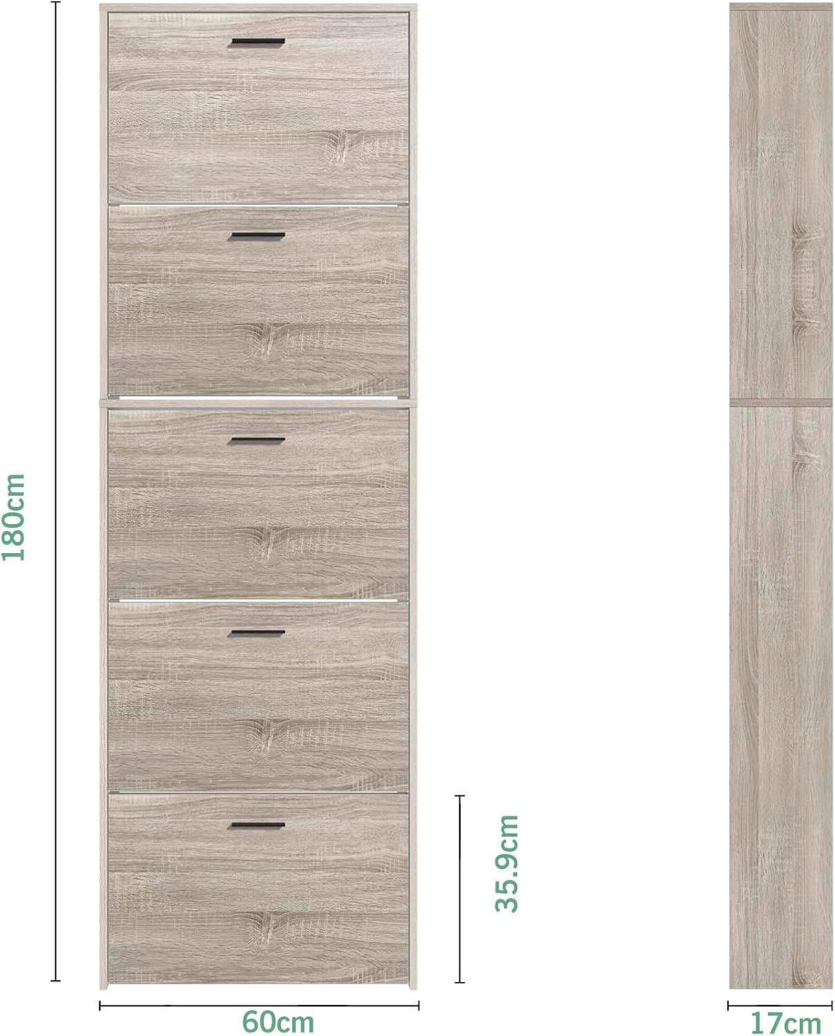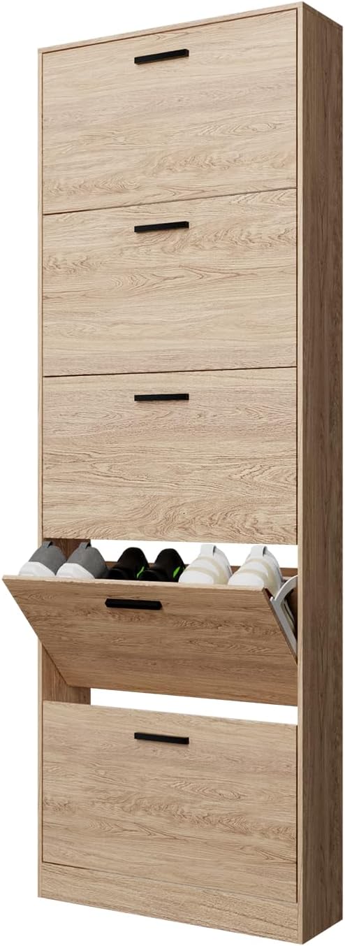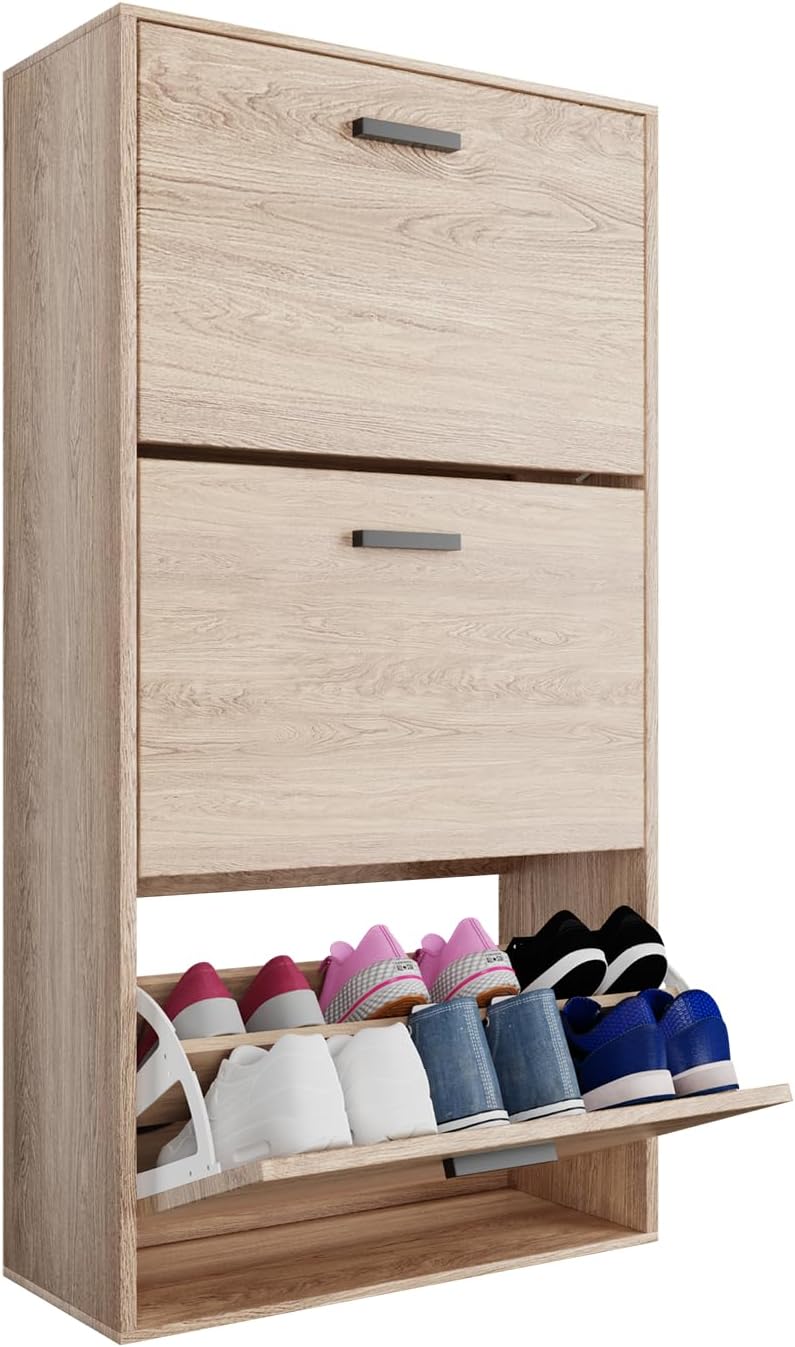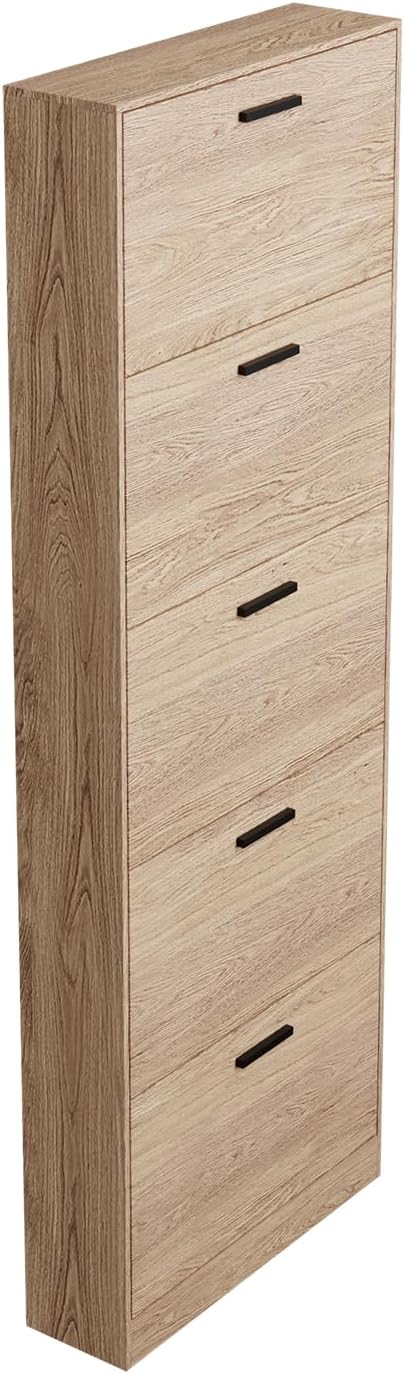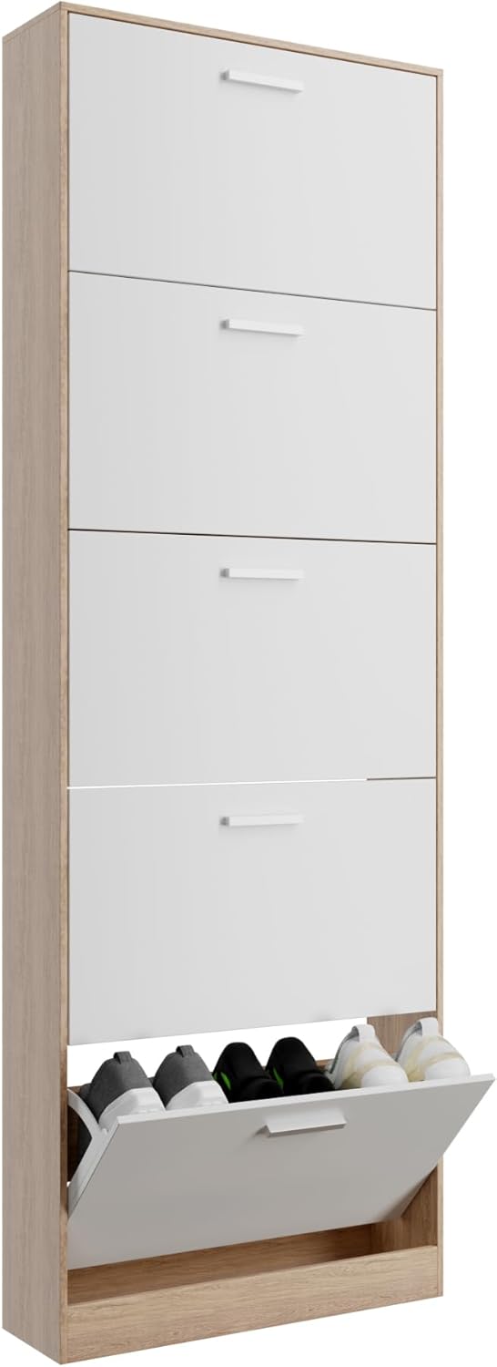 Vicco Scarpiera per 15 Paia Armadio Scaffale Grande Capacità per Ingresso L60xP17xH180 cm Bianco Legno Chiaro