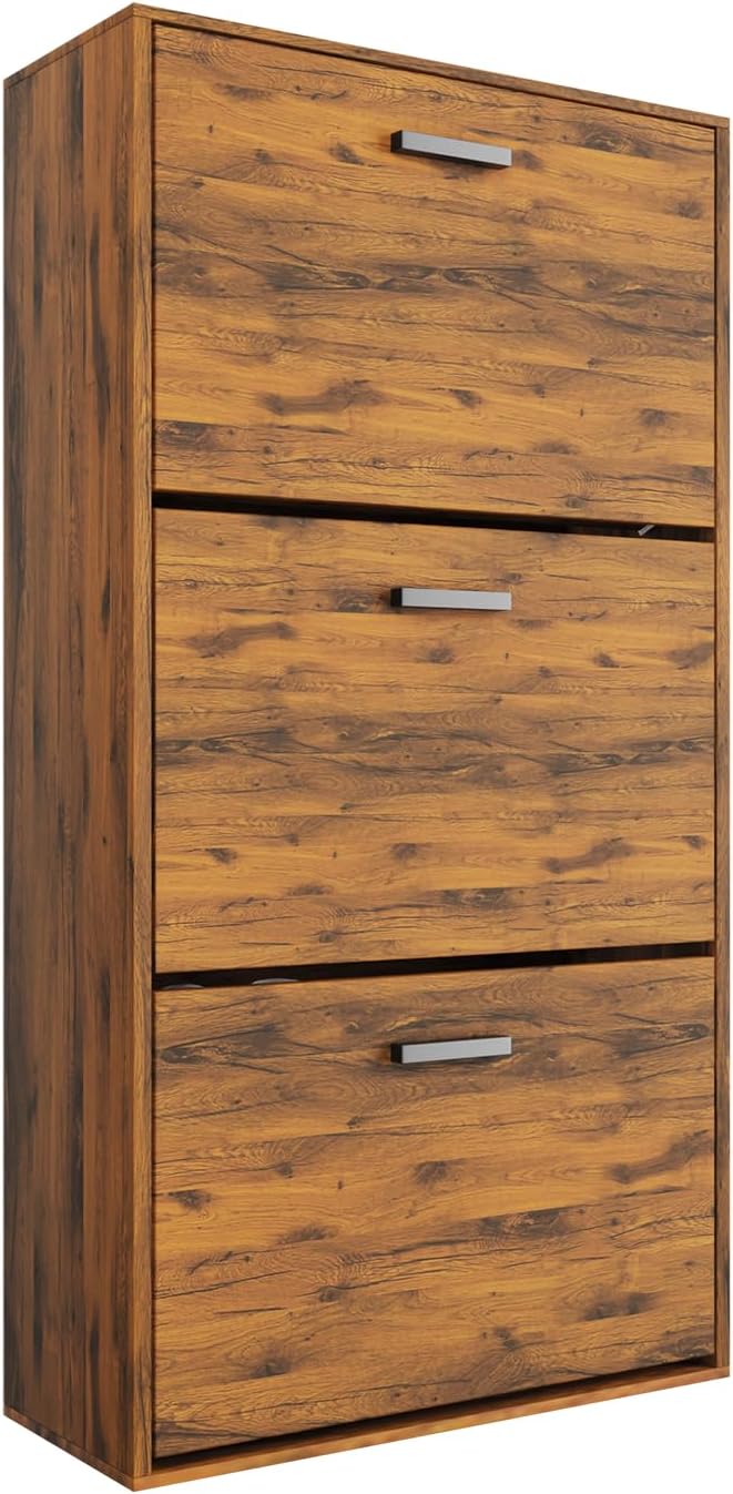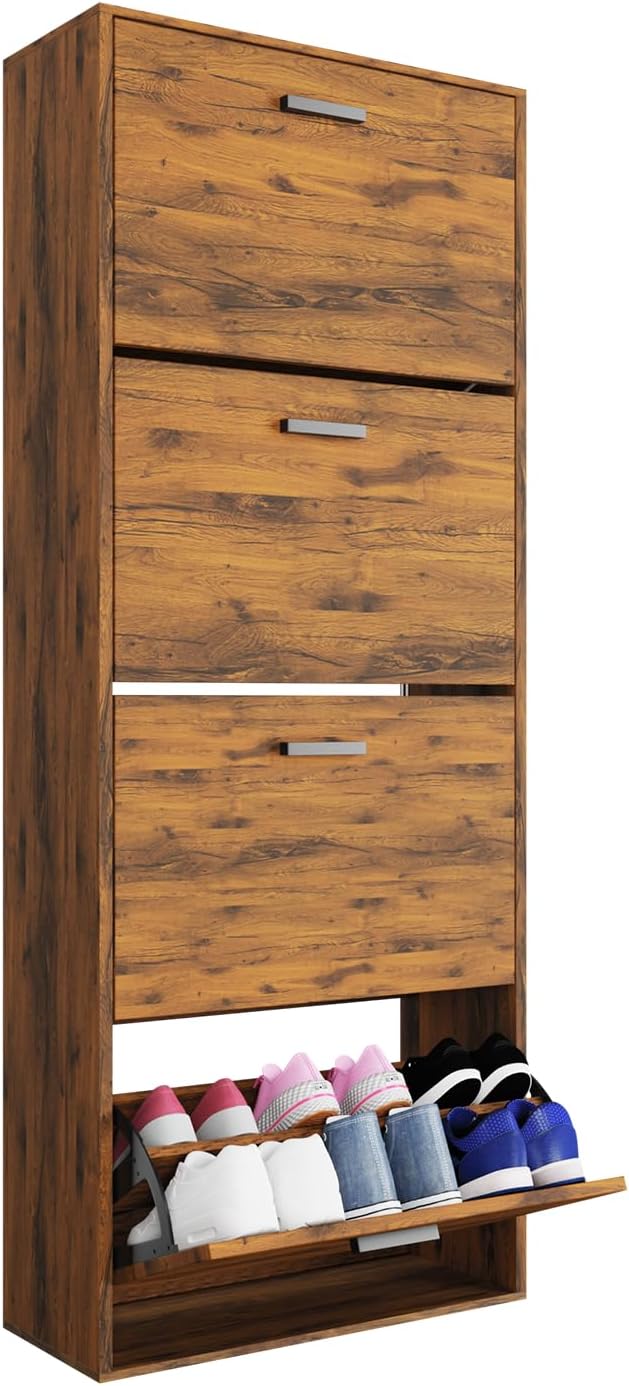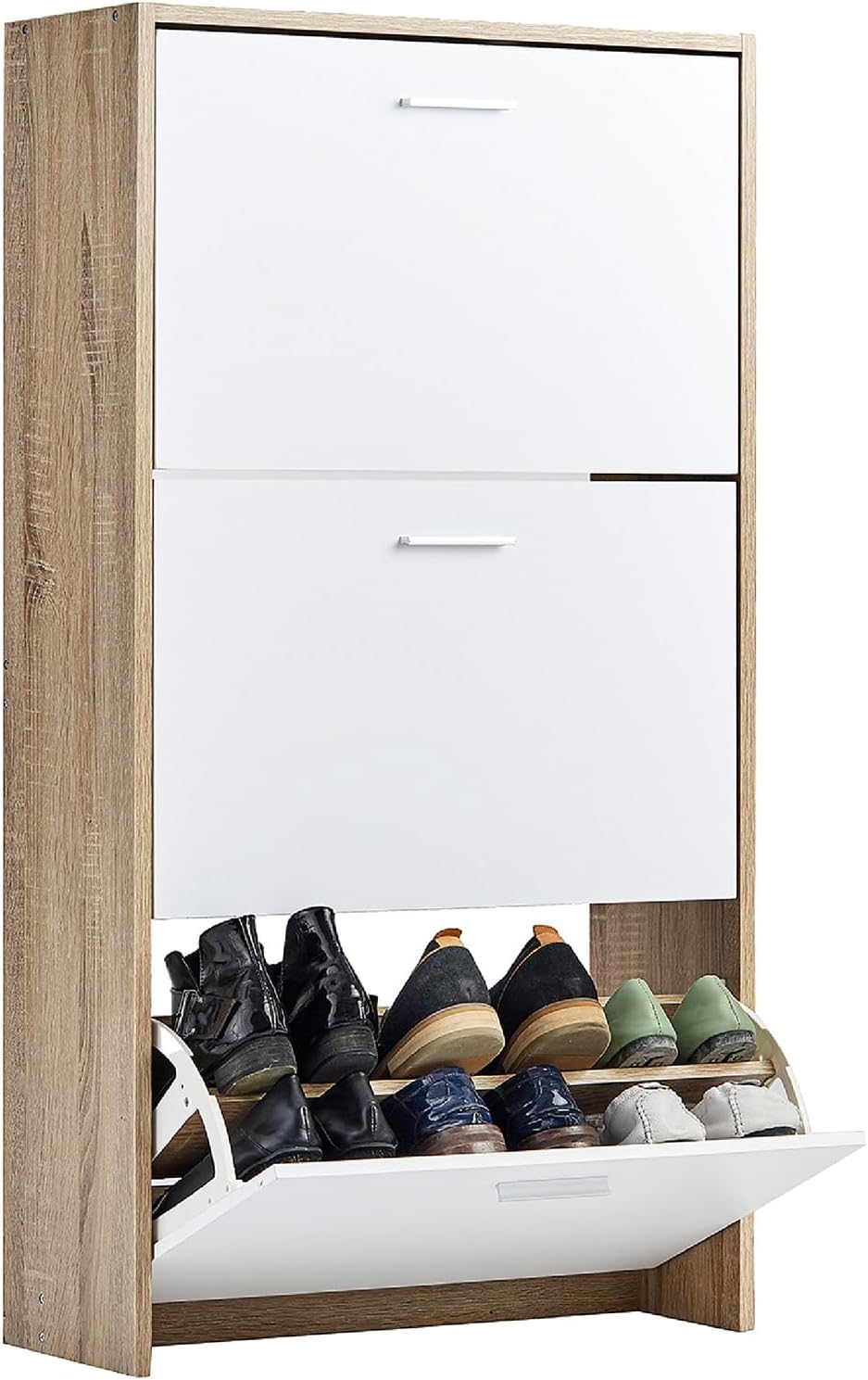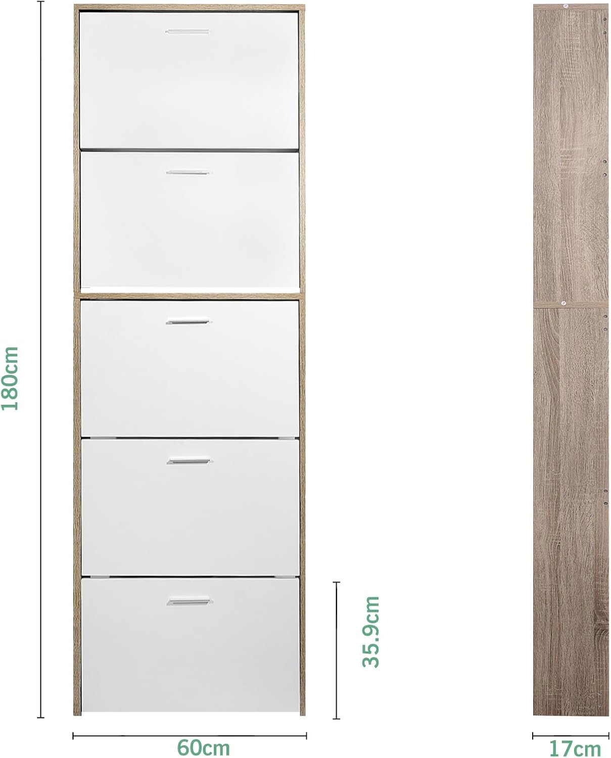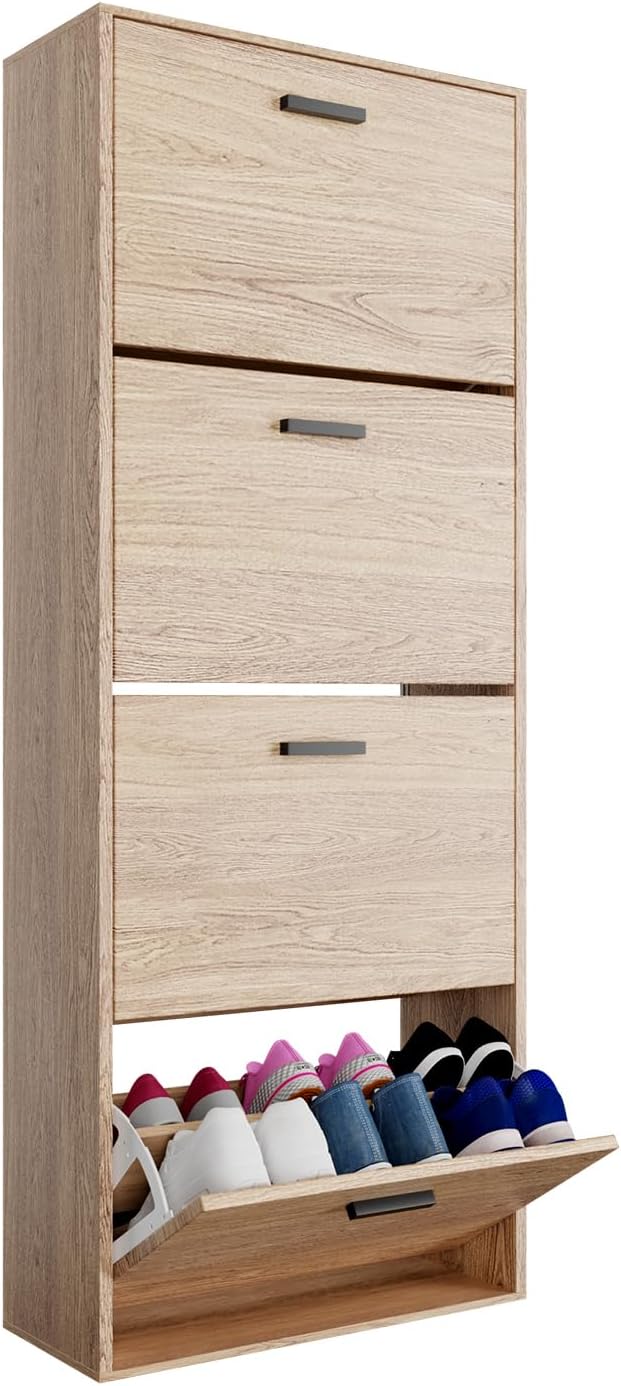 Vicco Scarpiera per 15 Paia Armadio Scaffale Grande Capacità per Ingresso L60xP17xH180 cm Bianco Legno Chiaro