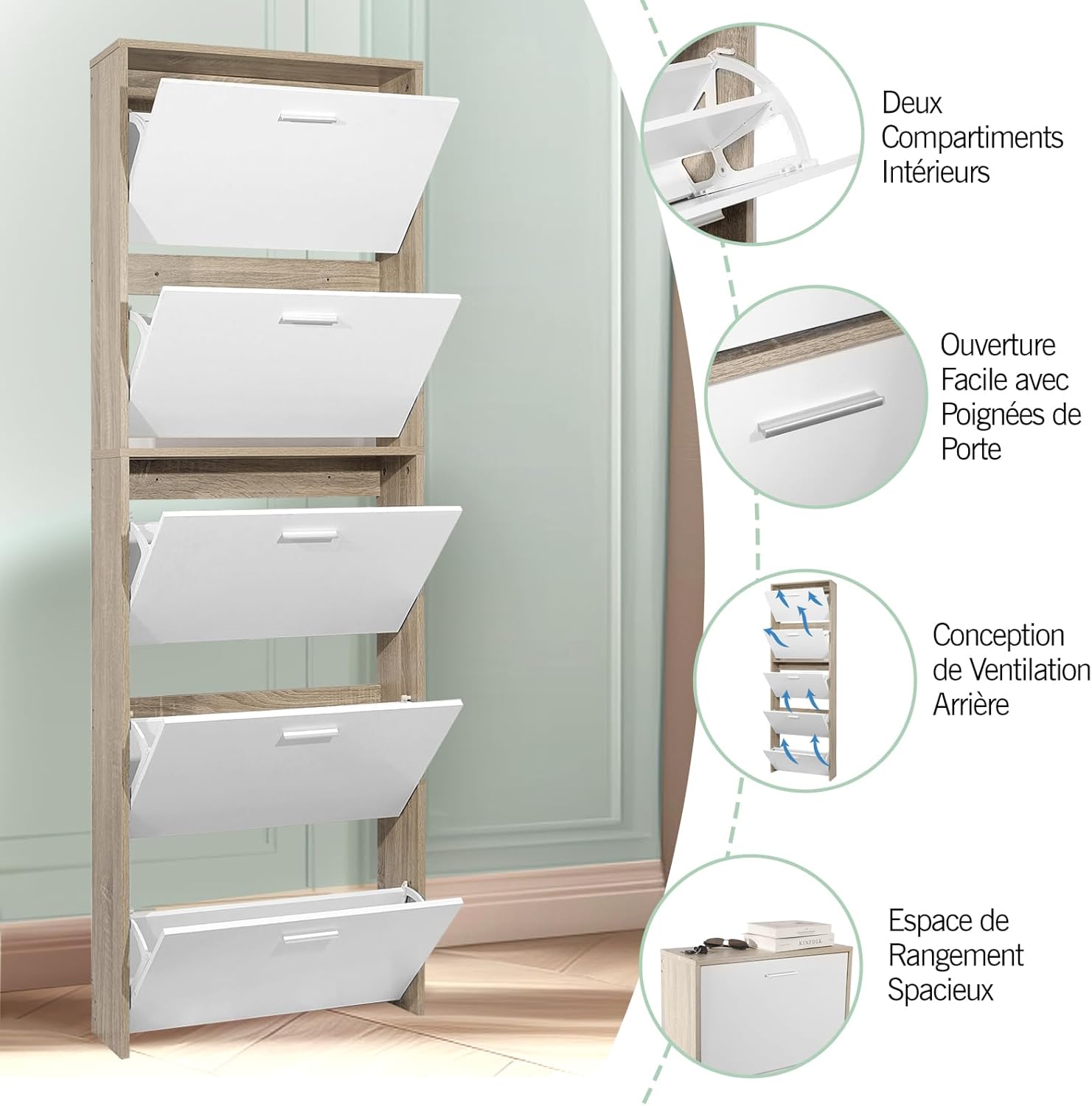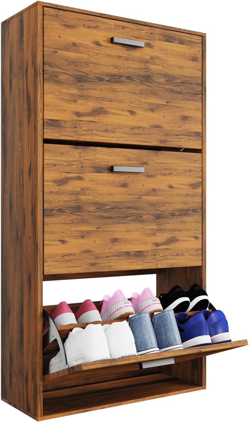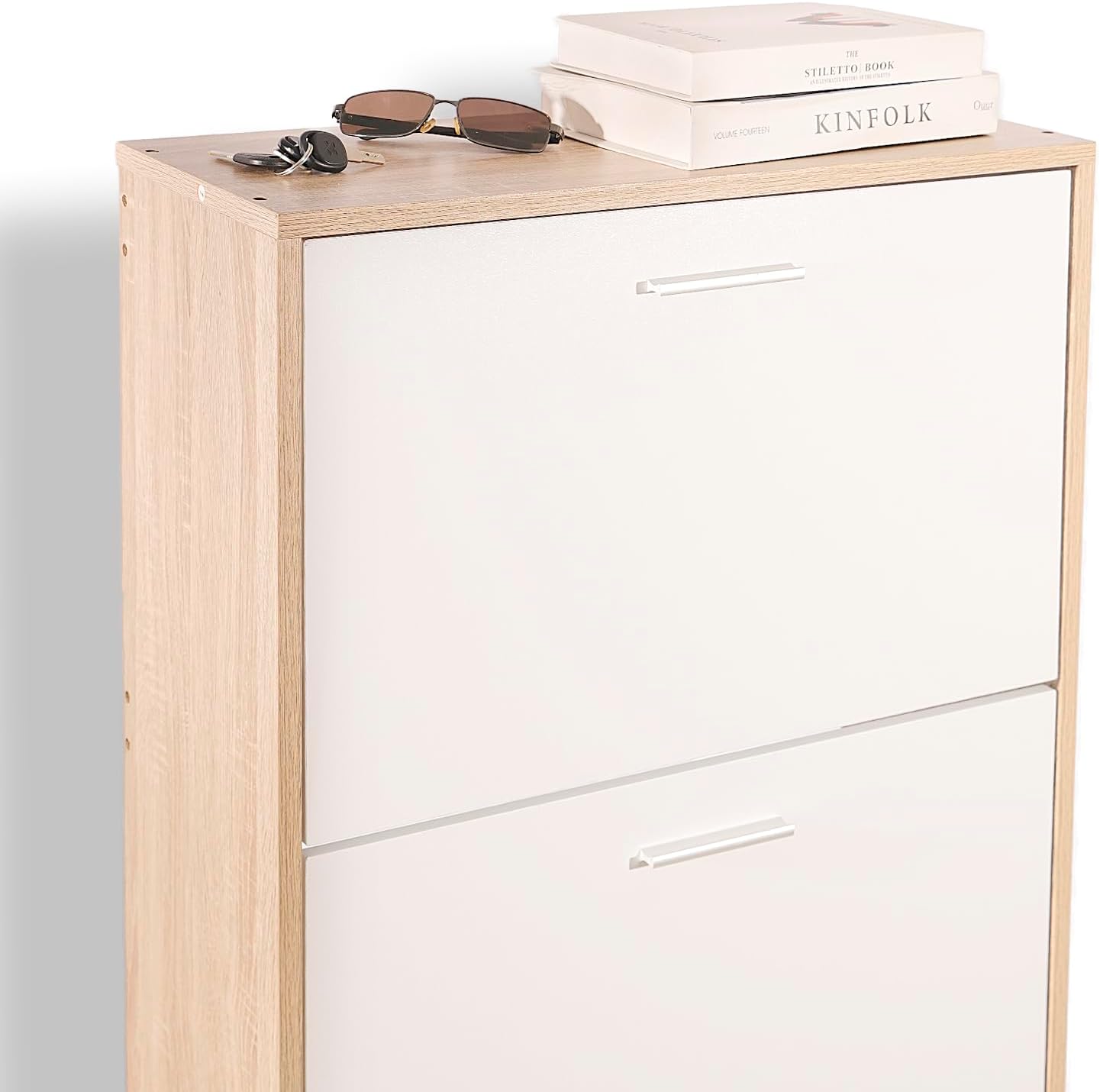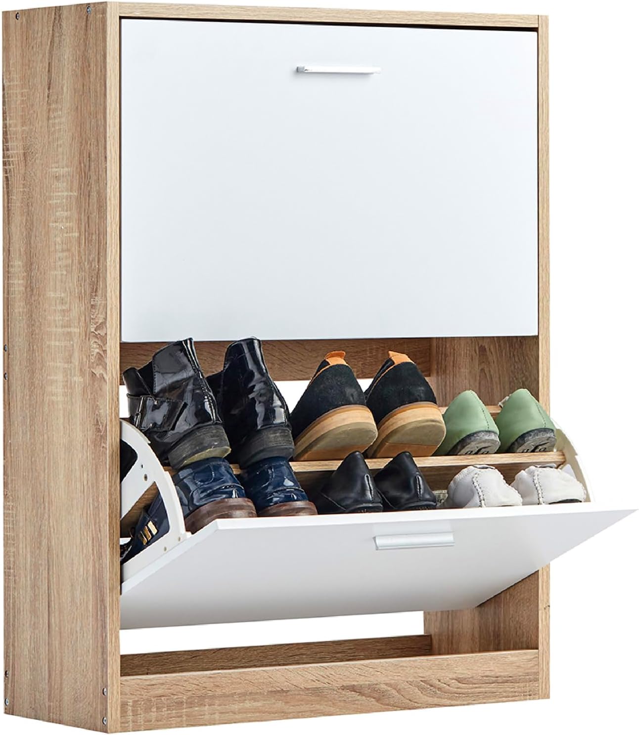 Vicco Scarpiera per 15 Paia Armadio Scaffale Grande Capacità per Ingresso L60xP17xH180 cm Bianco Legno Chiaro