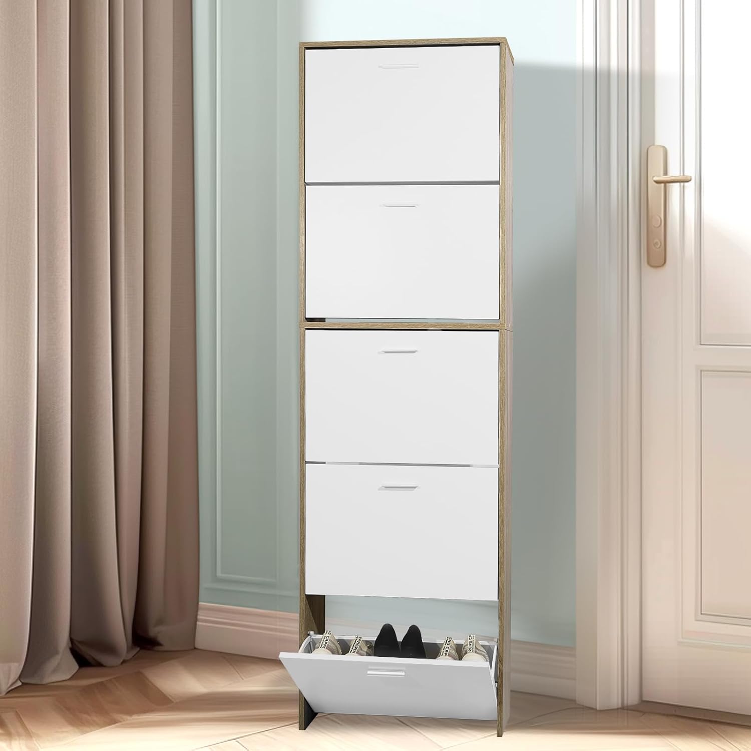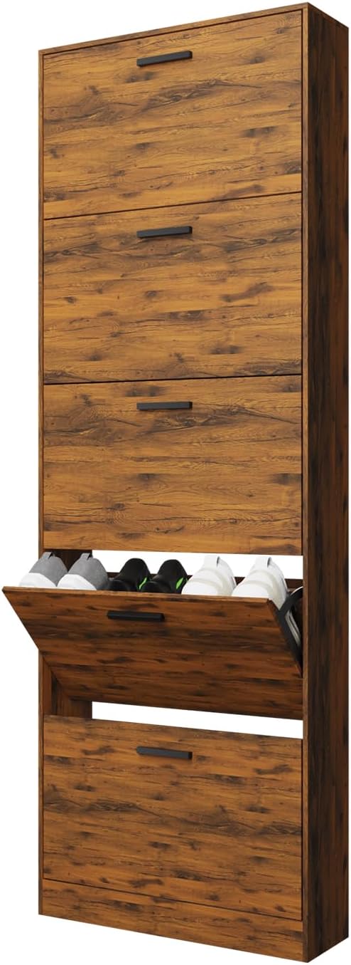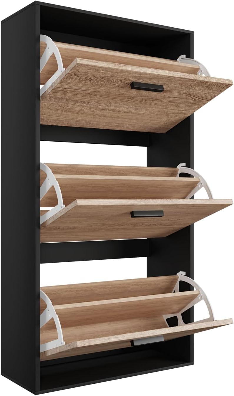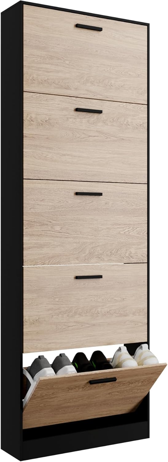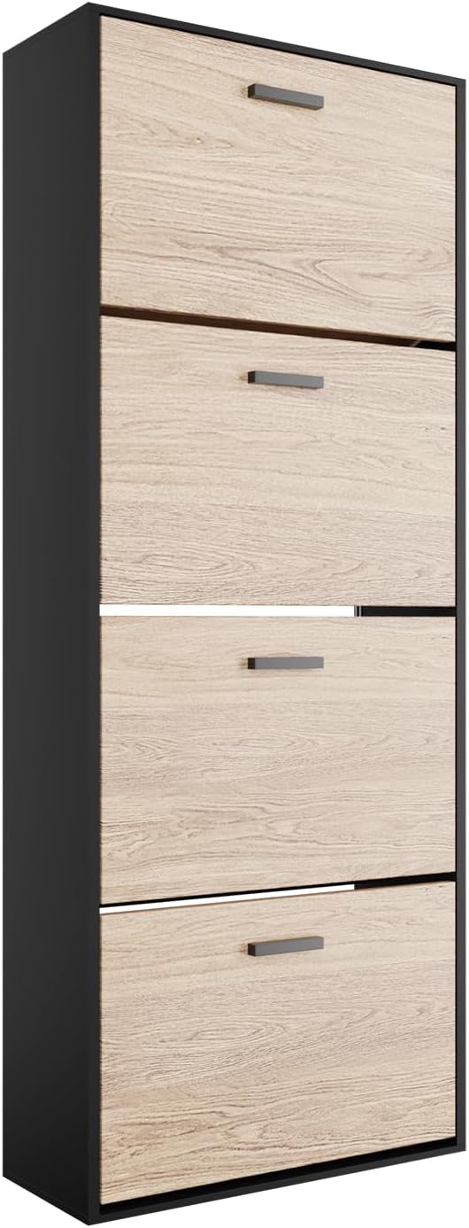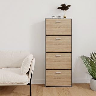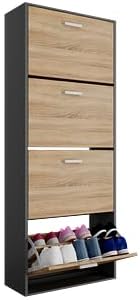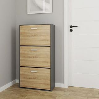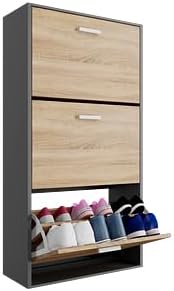 Mobile d'ingresso - Mettete ordine nel vostro corridoio o ingresso con questo mobiletto portascarpe stretto, pratico e moderno. Grande capacità di stoccaggio - Questo mobiletto portascarpe moderno, funzionale ed elegante permette di riporre un gran numero di scarpe. Per famiglie numerose, giovani coppie e single, ognuno dei compartimenti ribaltabili dell'armadio...