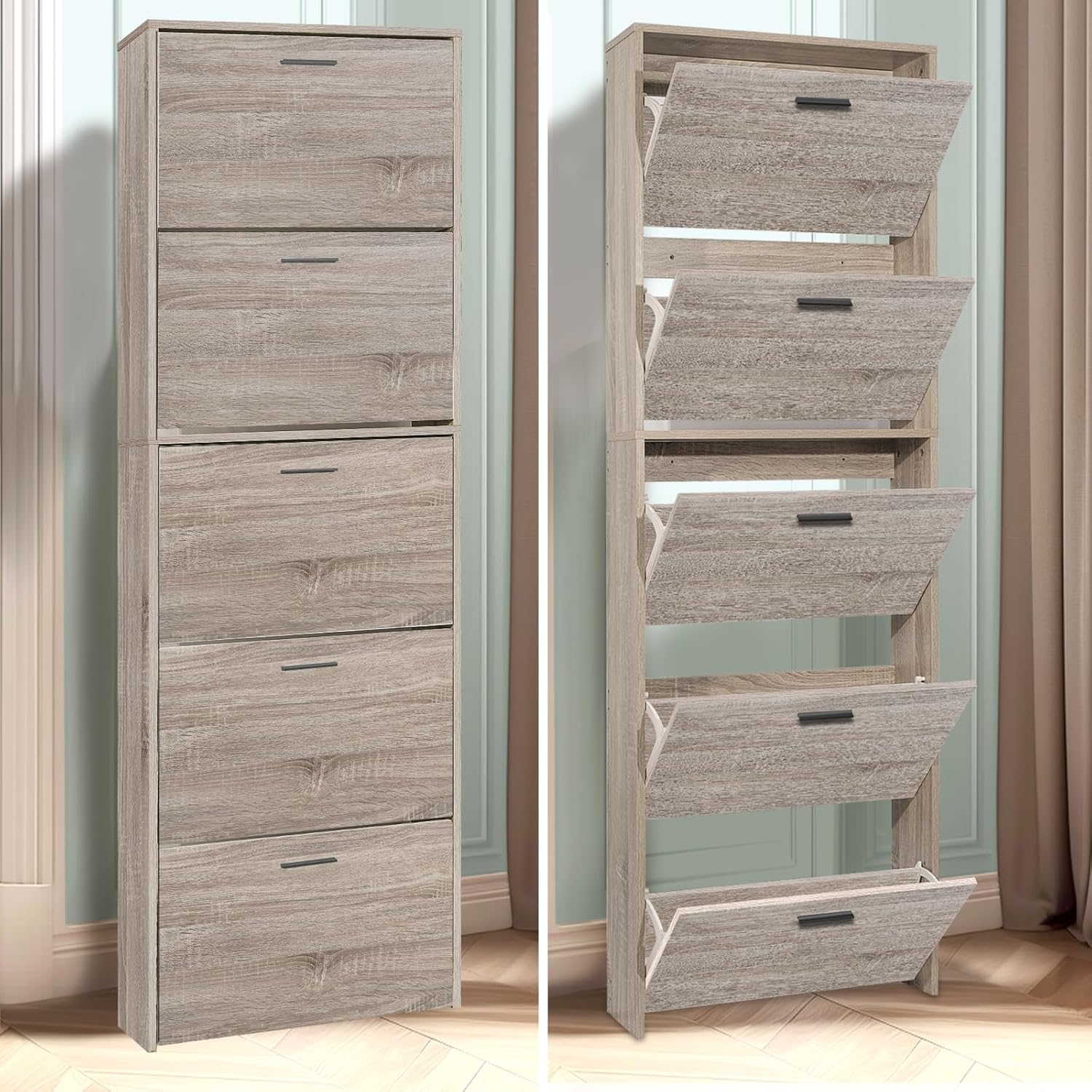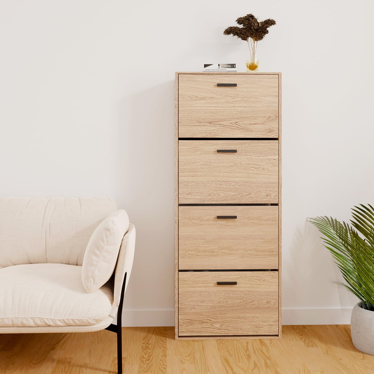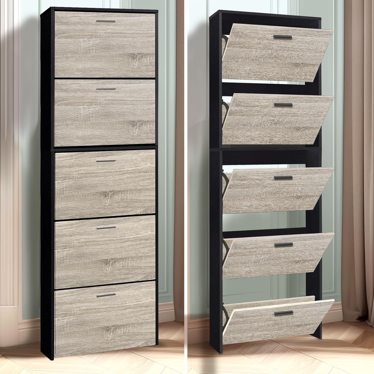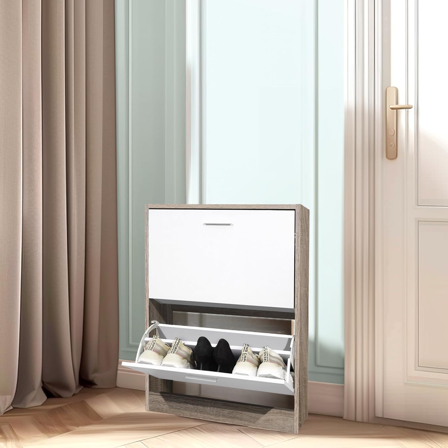Mobile d'ingresso - Mettete ordine nel vostro corridoio o ingresso con questo mobiletto portascarpe stretto, pratico e moderno. Grande capacità di stoccaggio - Questo mobiletto portascarpe moderno, funzionale ed elegante permette di riporre un gran numero di scarpe. Per famiglie numerose, giovani coppie e single, ognuno dei compartimenti ribaltabili dell'armadio...