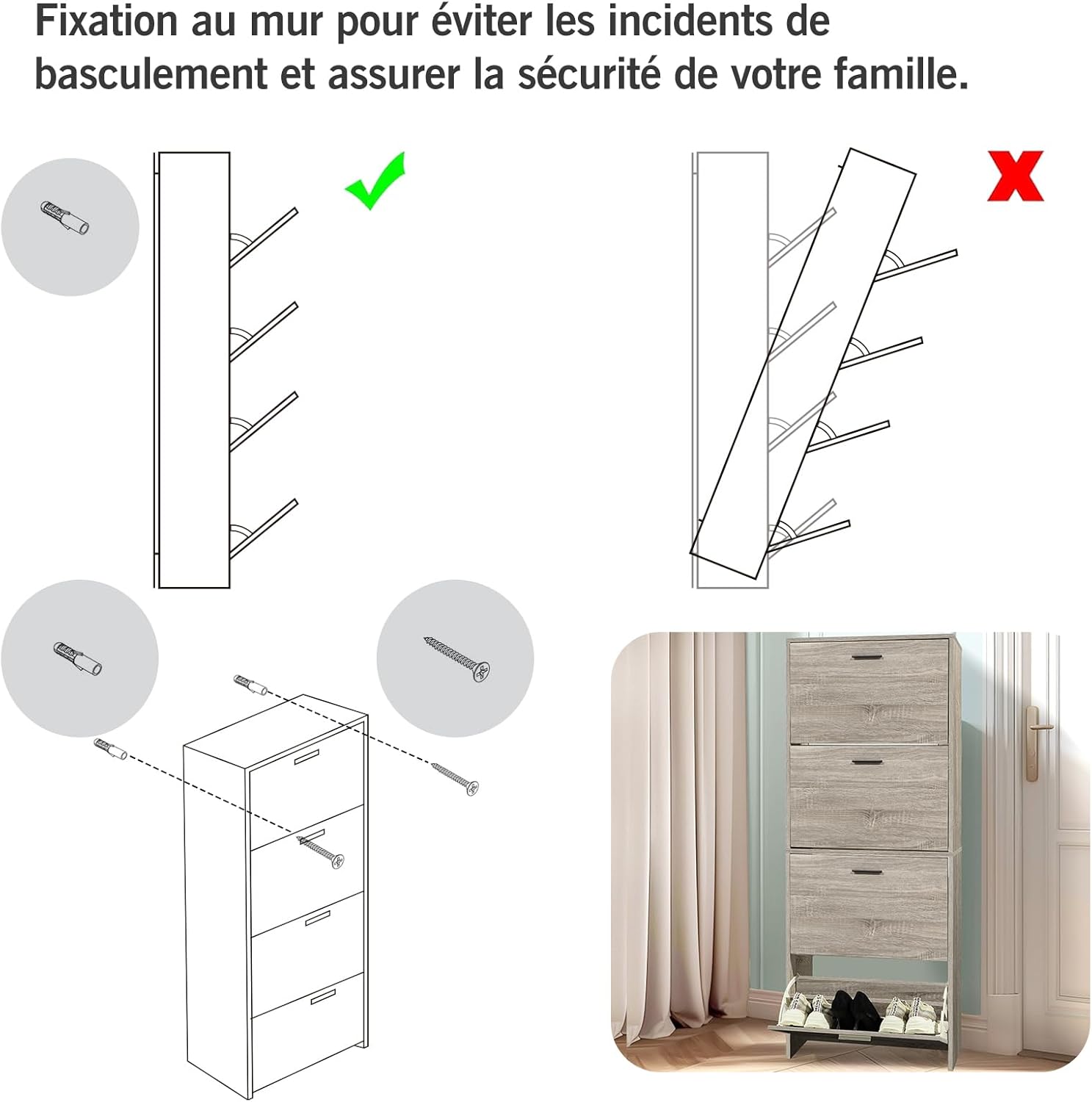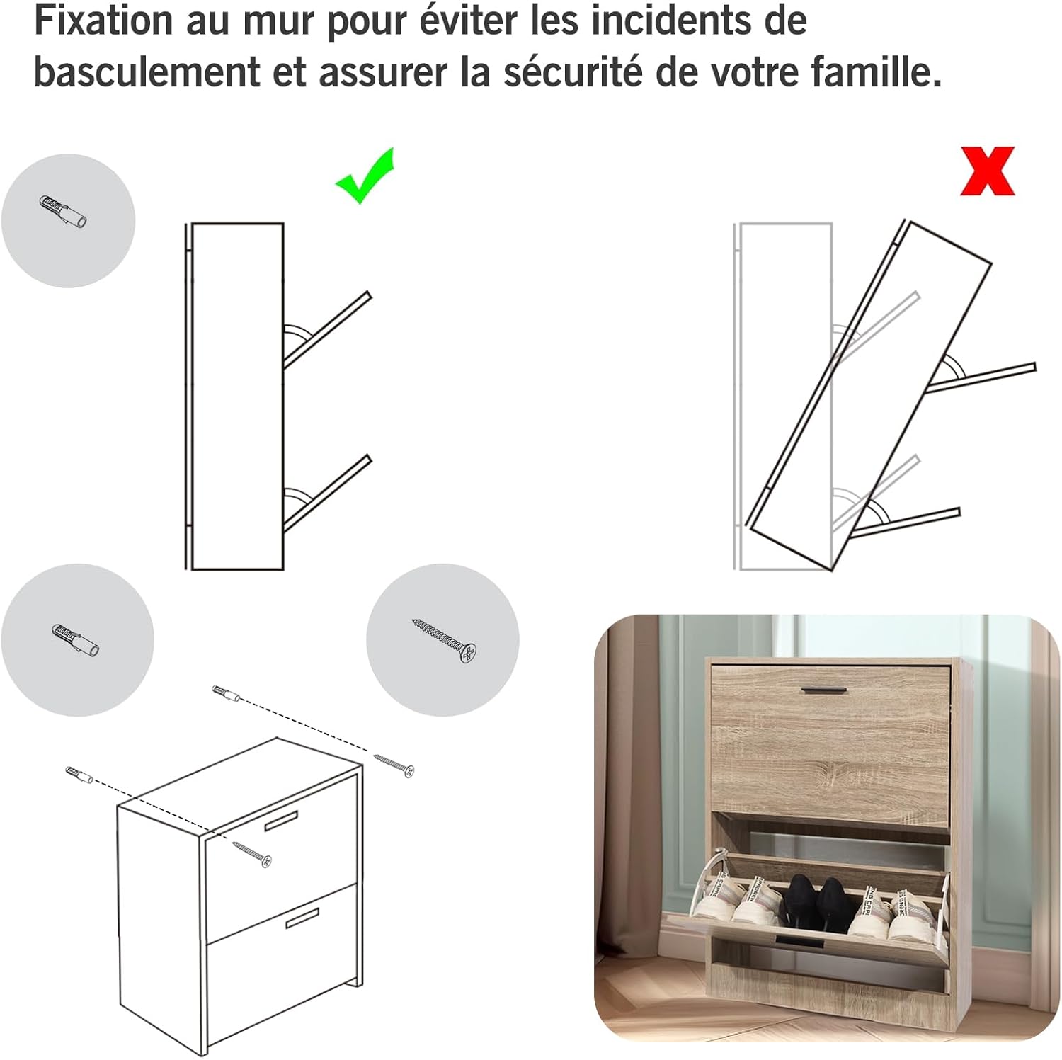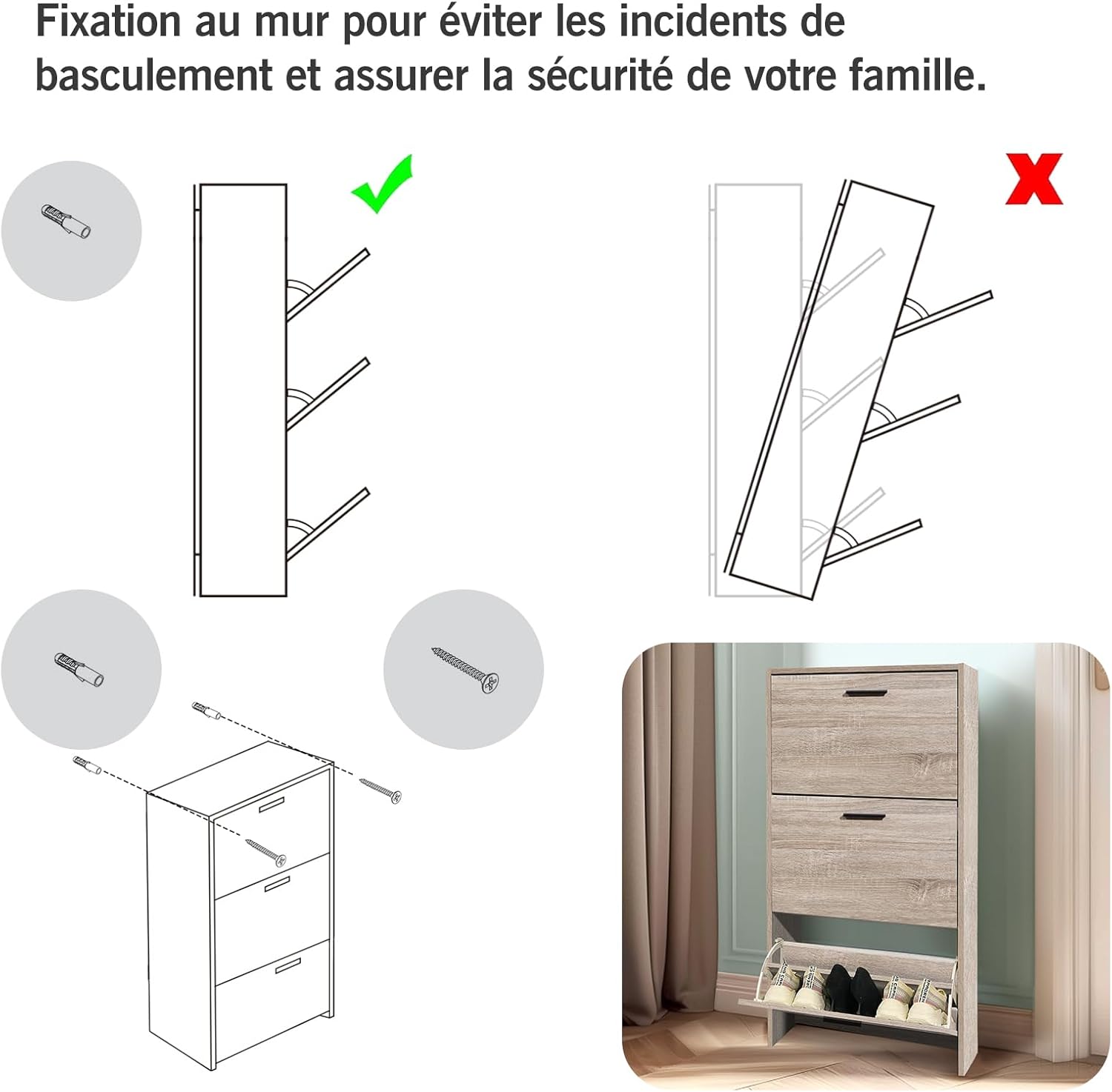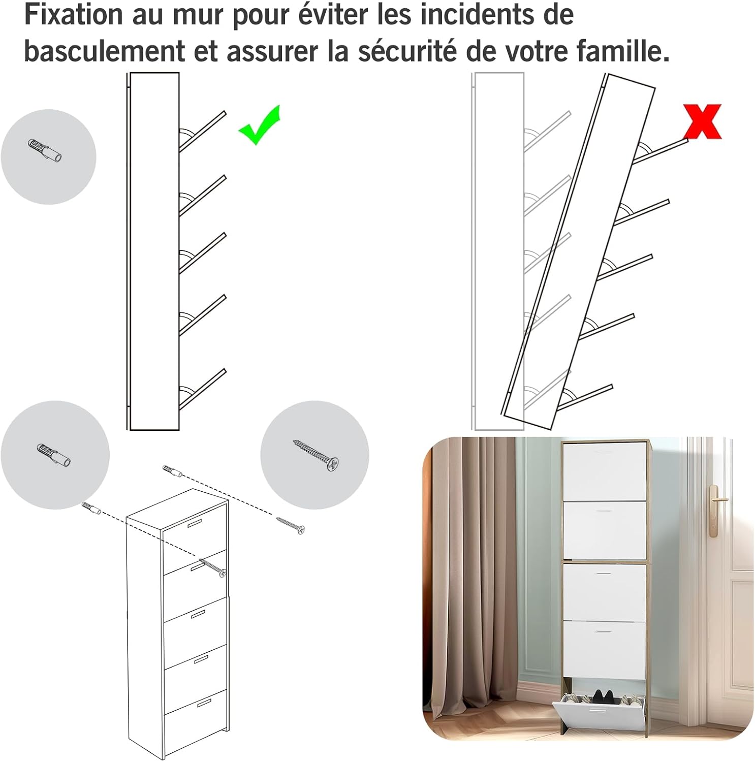 - Materiale robusto - Questo armadio portascarpe solido è realizzato in particelle di legno con rivestimento bianco.