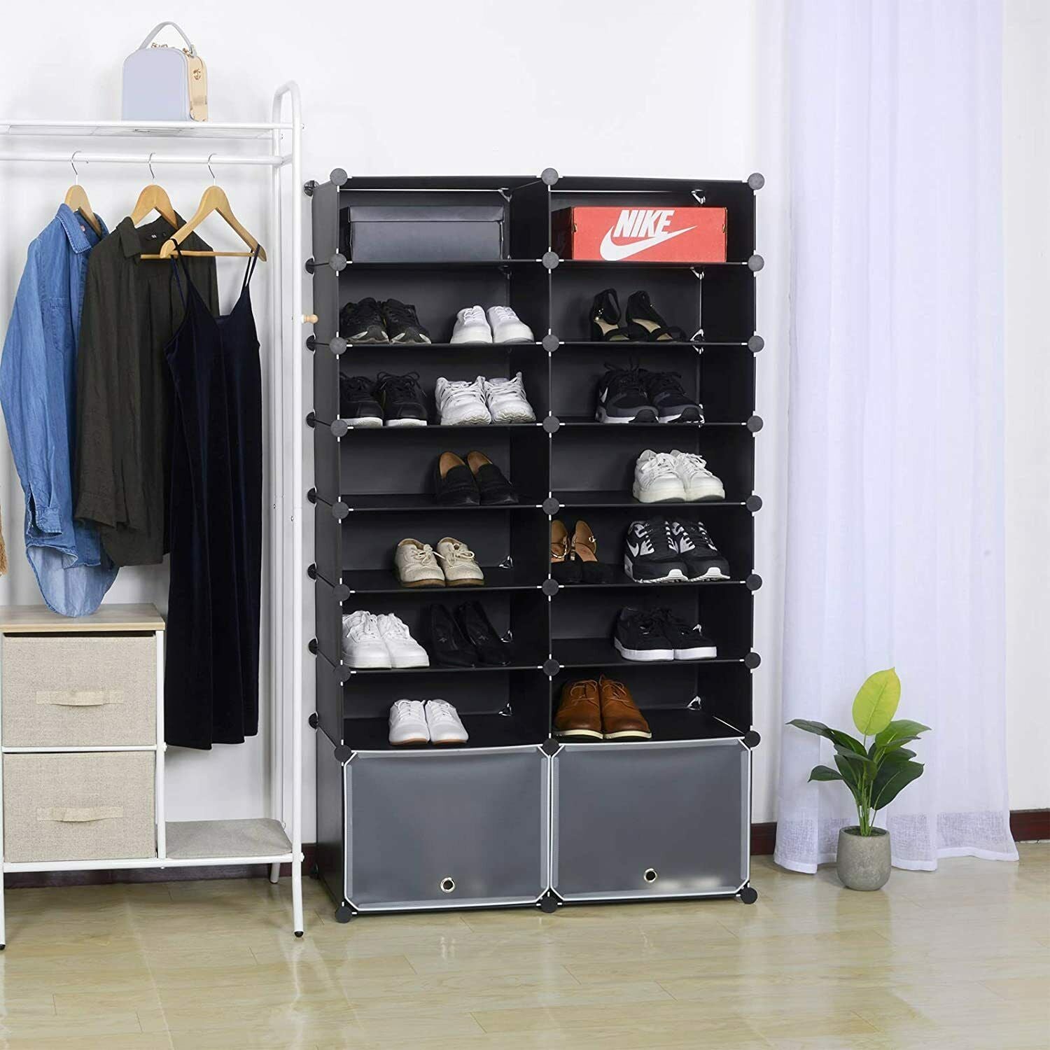 Scarpiera Salvaspazio Porta Scarpe Scatole in Platica da Ingresso Nero