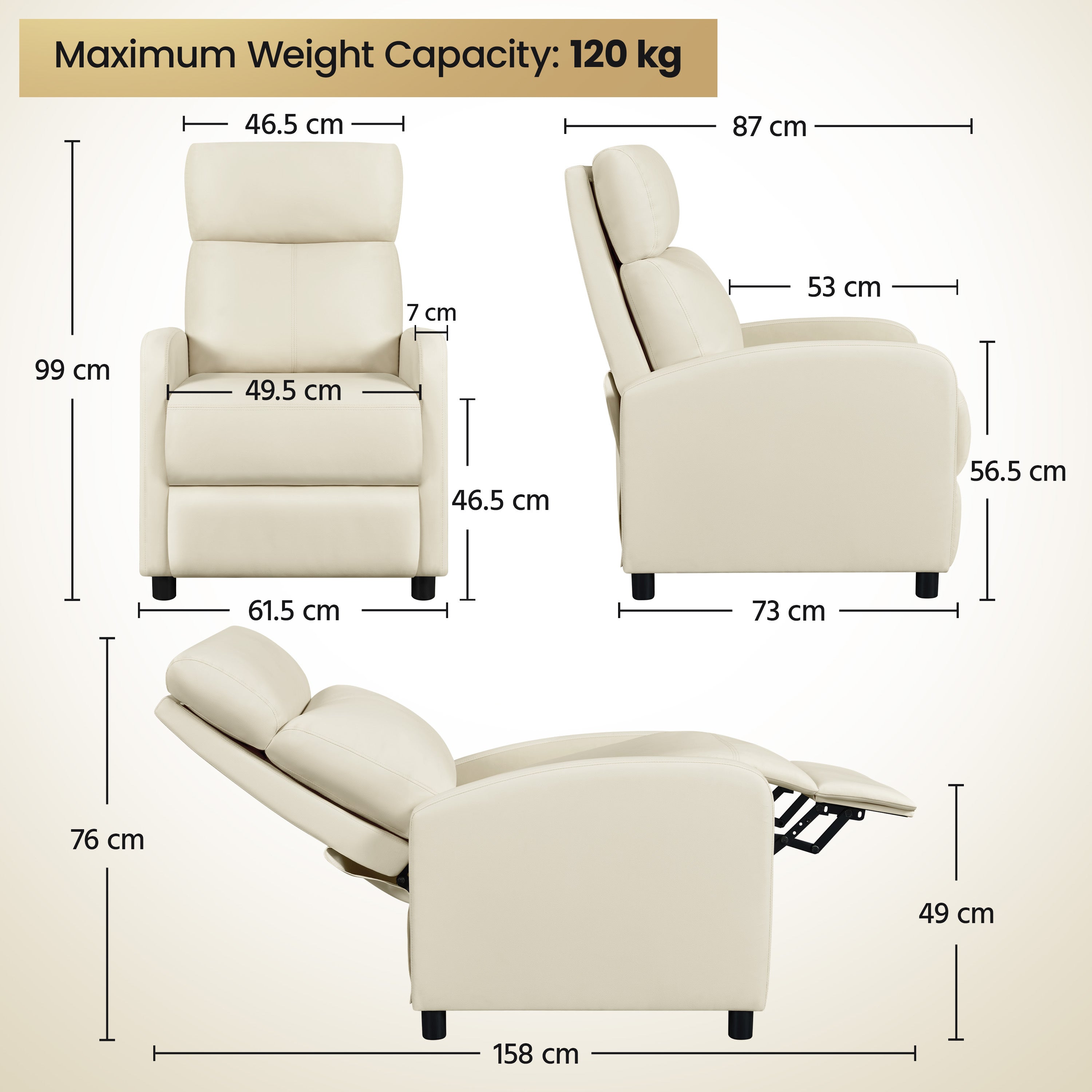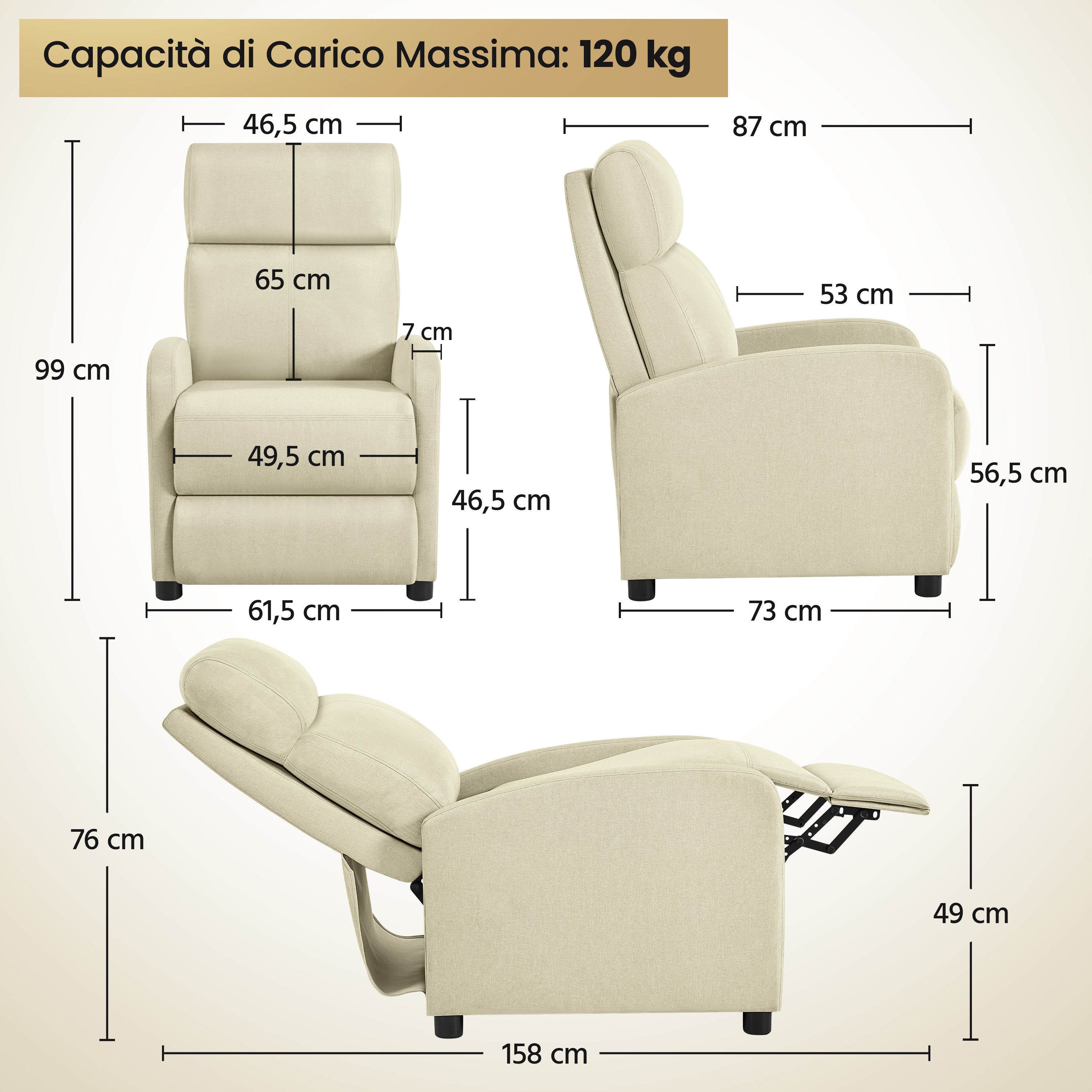 - Capacità di carico massima: 120 kg.