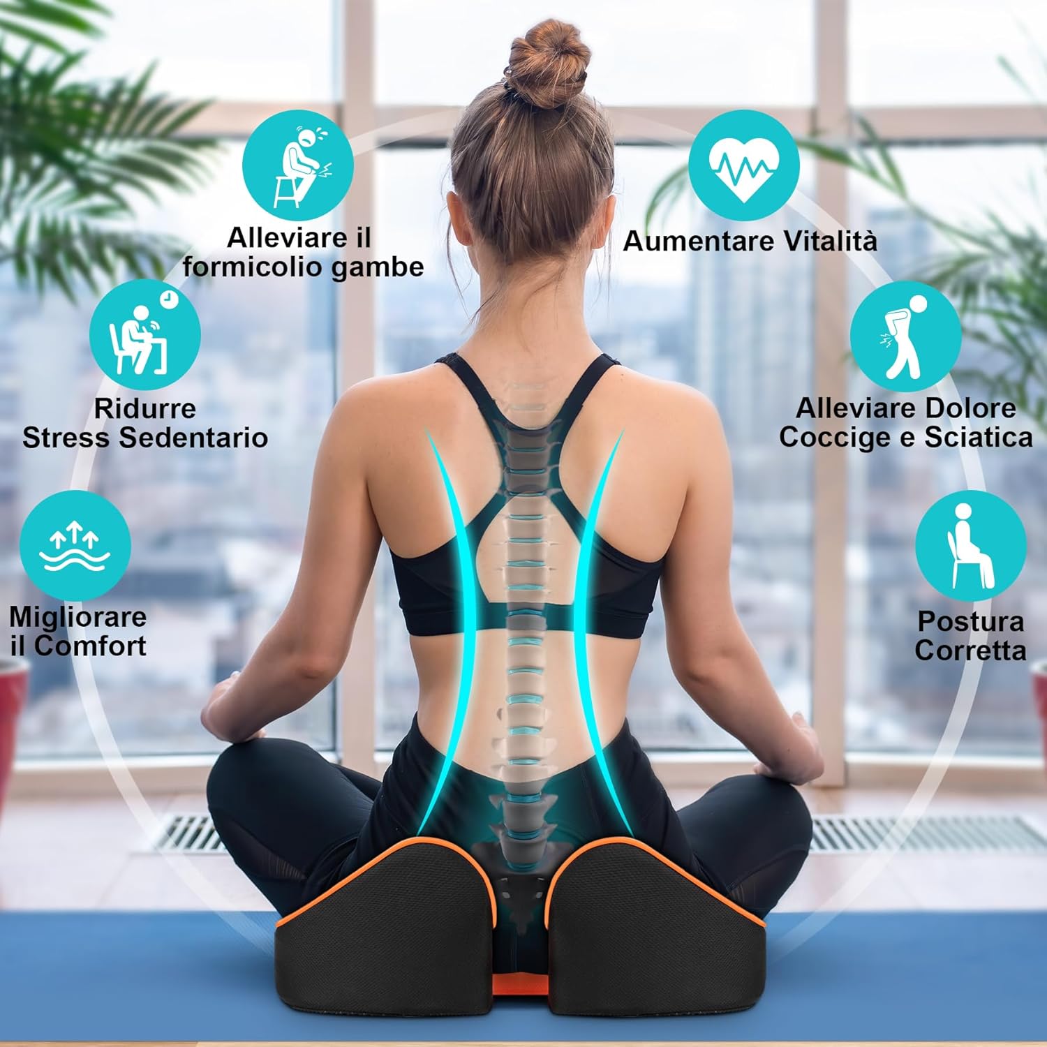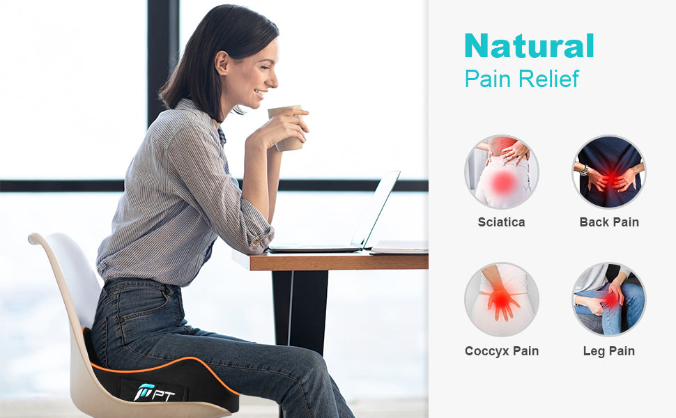 ma supporta anche la curva naturale delle cosce, distribuendo la pressione su fianchi, parte bassa della schiena e vita, alleviando il dolore da seduta prolungata e migliorando contemporaneamente la postura