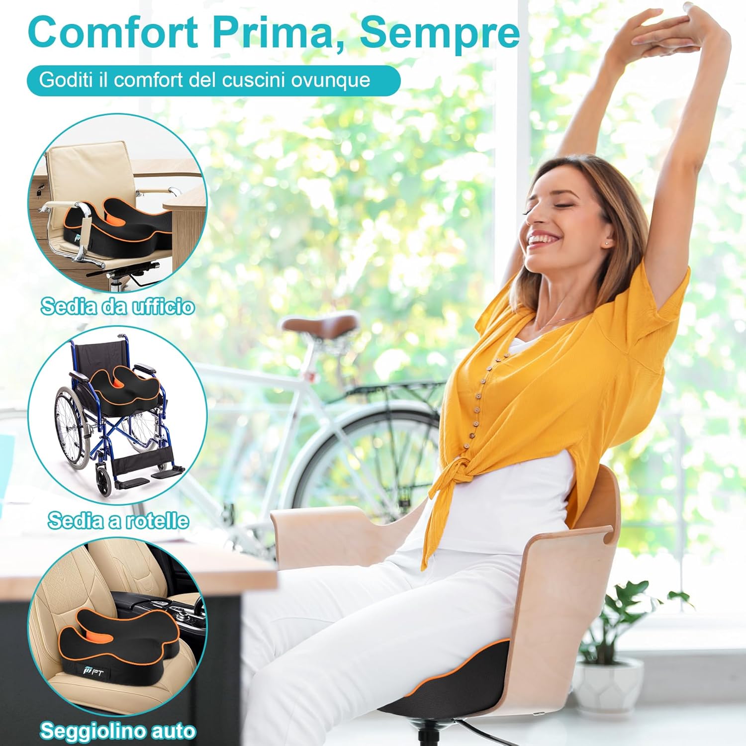 Posizionatelo su un sedile auto, una sedia da ufficio, una sedia da gioco o una sedia a rotelle per sperimentare immediatamente un comfort senza pari