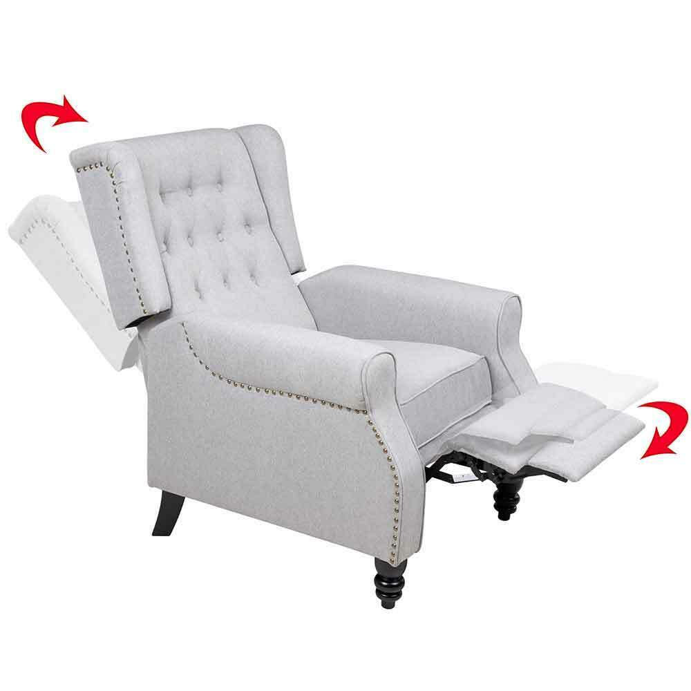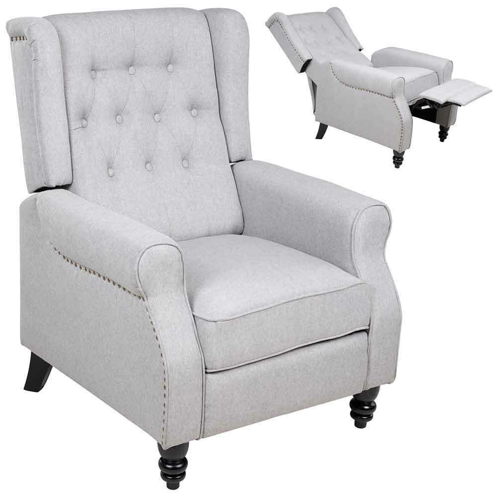 Poltrona Reclinabile Push Back Manuale Design Moderno Imbottita Tessuto Grigio