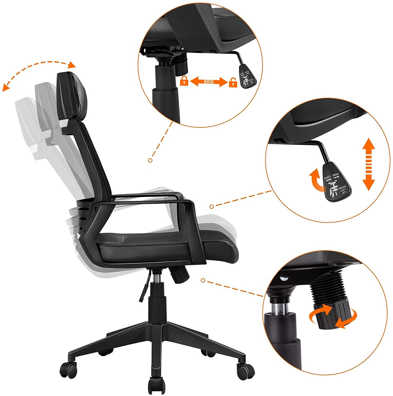 - Materiali Accuratamente Selezionati: la nostra sedia a rete regolabile è realizzata in pelle premium PU, spugna, compensato, PP e nylon. Uno speciale trattamento superficiale delle gambe e dei manici aggiunge resistenzaalla ruggine e al deterioramento. La solida struttura può contenere fino a 120kg, molto robusta e per un utilizzo di lunga durata.