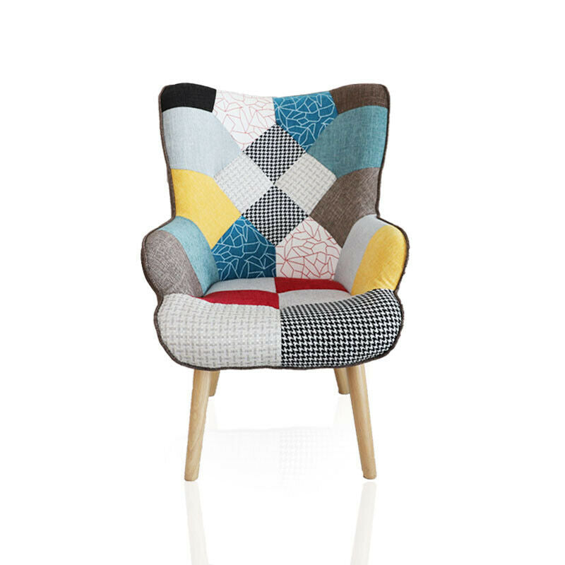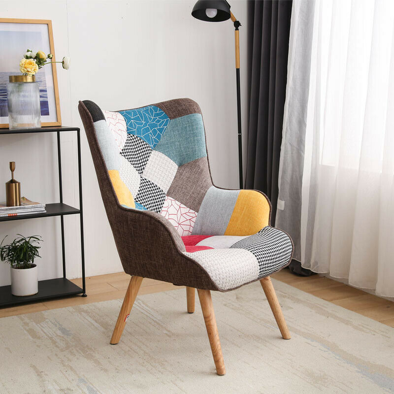 Poltrona tessuto stoffa imbottita con schienale alto e piedi in legno