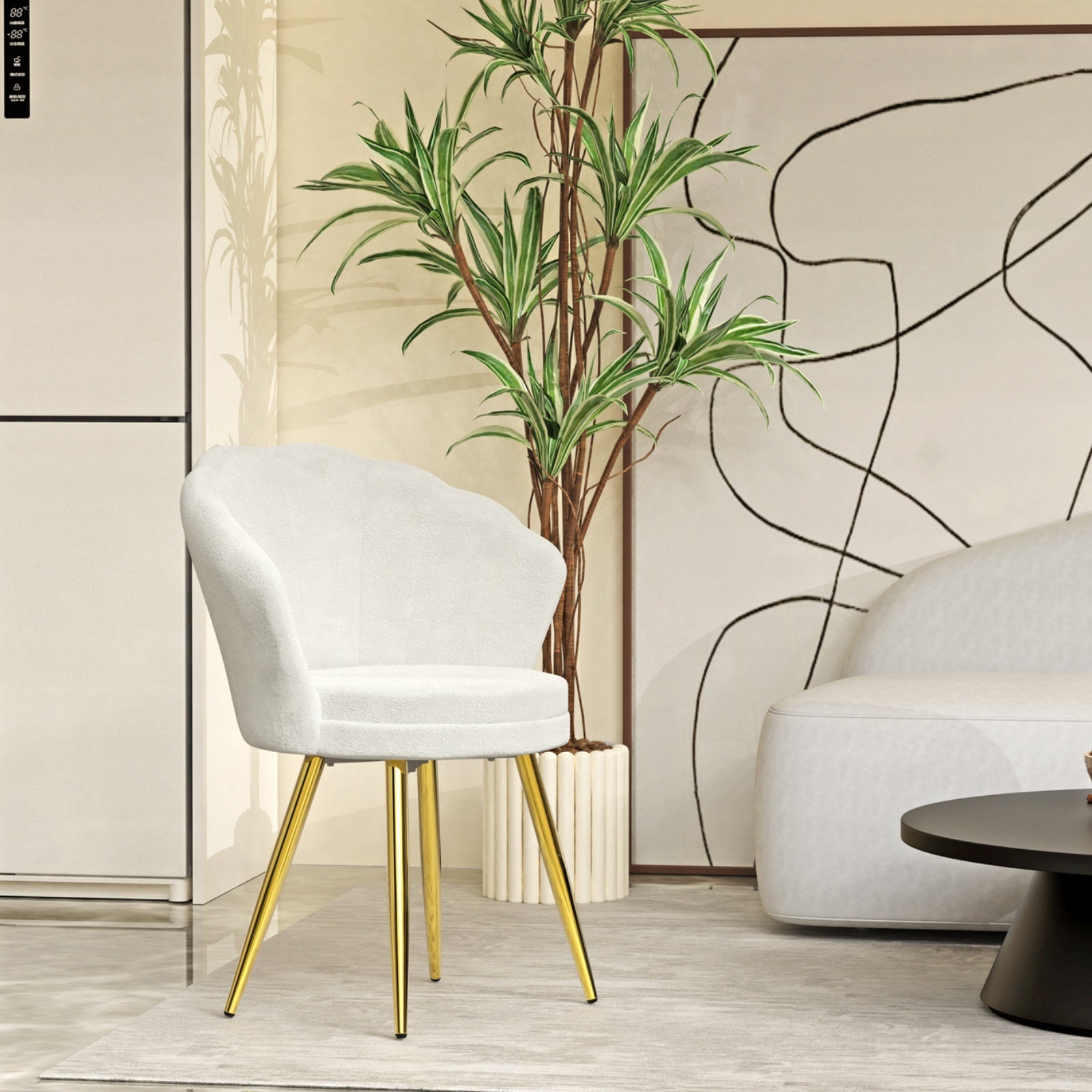 Sedia a braccioli dal design sofisticato che unisce eleganza e comfort. Realizzata in velluto morbido, offre un'imbottitura in spugna che garantisce sedute piacevoli e durature nel tempo. Le gambe in metallo dorato aggiungono un tocco di lusso contemporaneo, perfetto per arredamenti moderni e classici. Ideale per salotti, camere da letto...