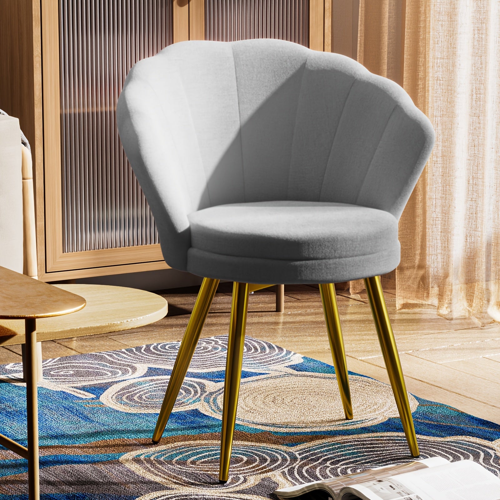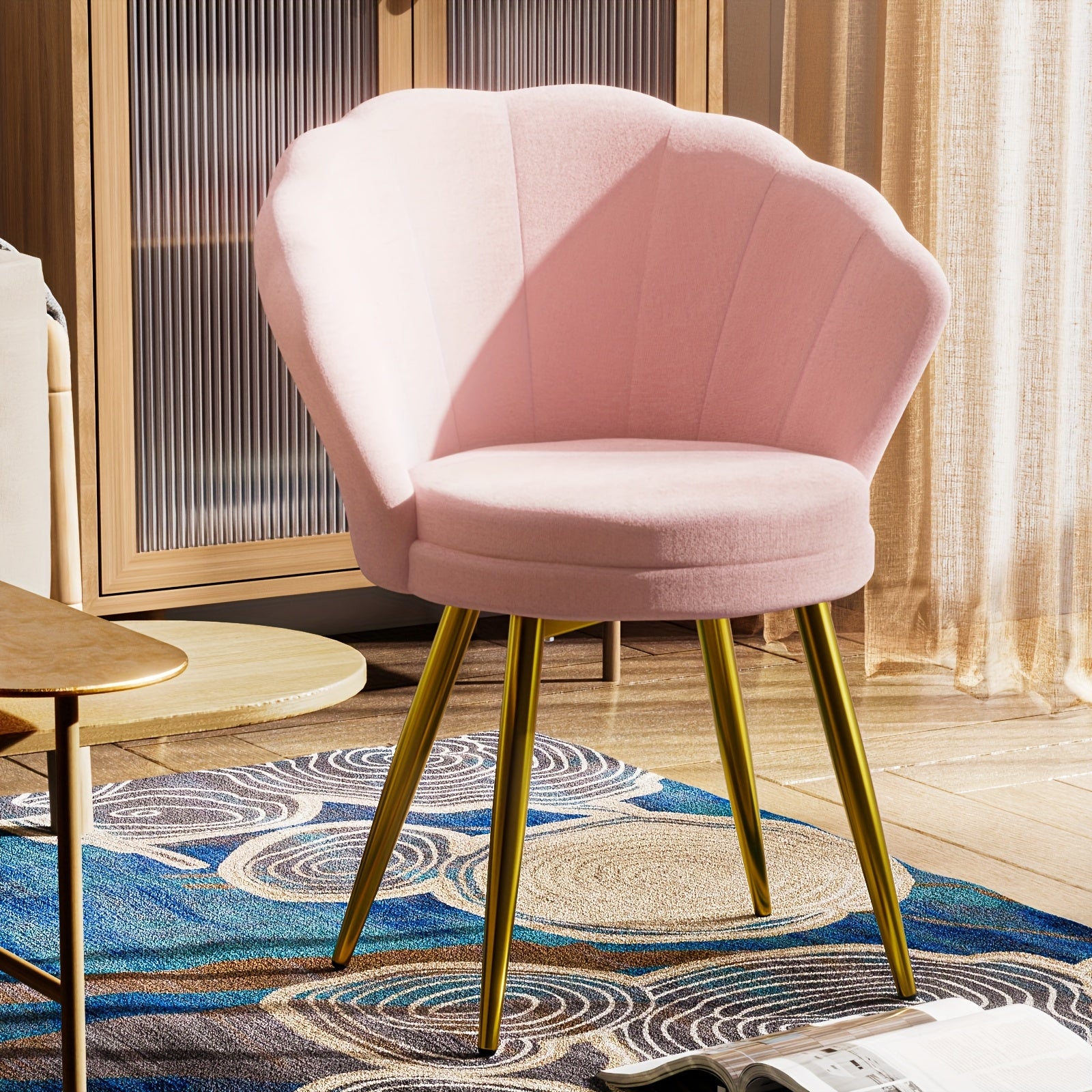 Sedia a braccioli in velluto elegante con gambe in metallo dorato