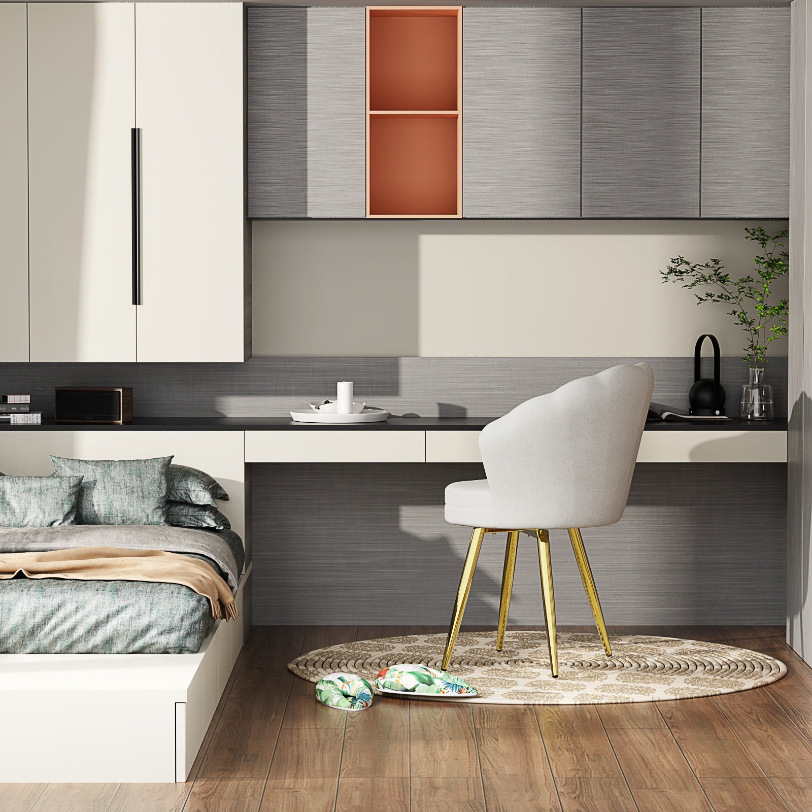 Le gambe in metallo dorato aggiungono un tocco di lusso contemporaneo, perfetto per arredamenti moderni e classici.
