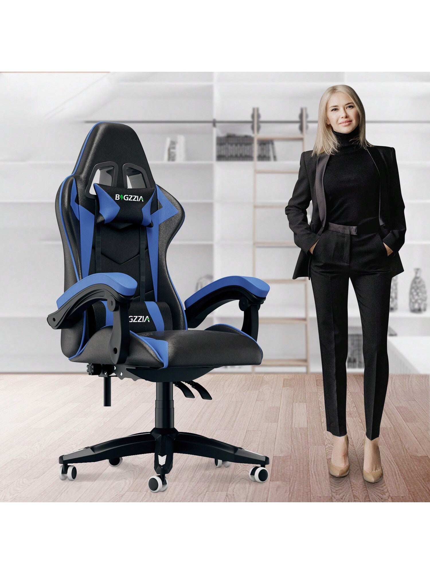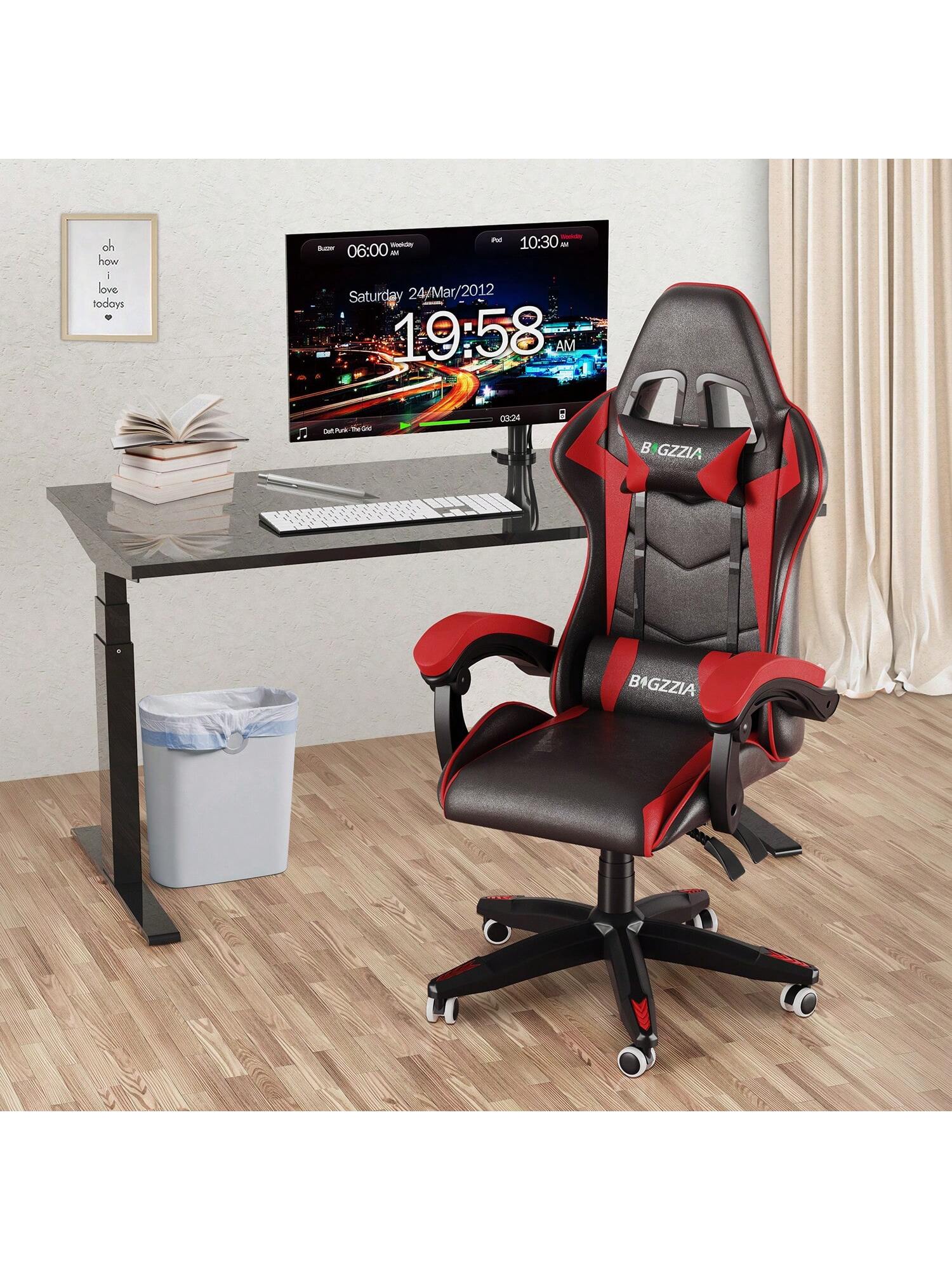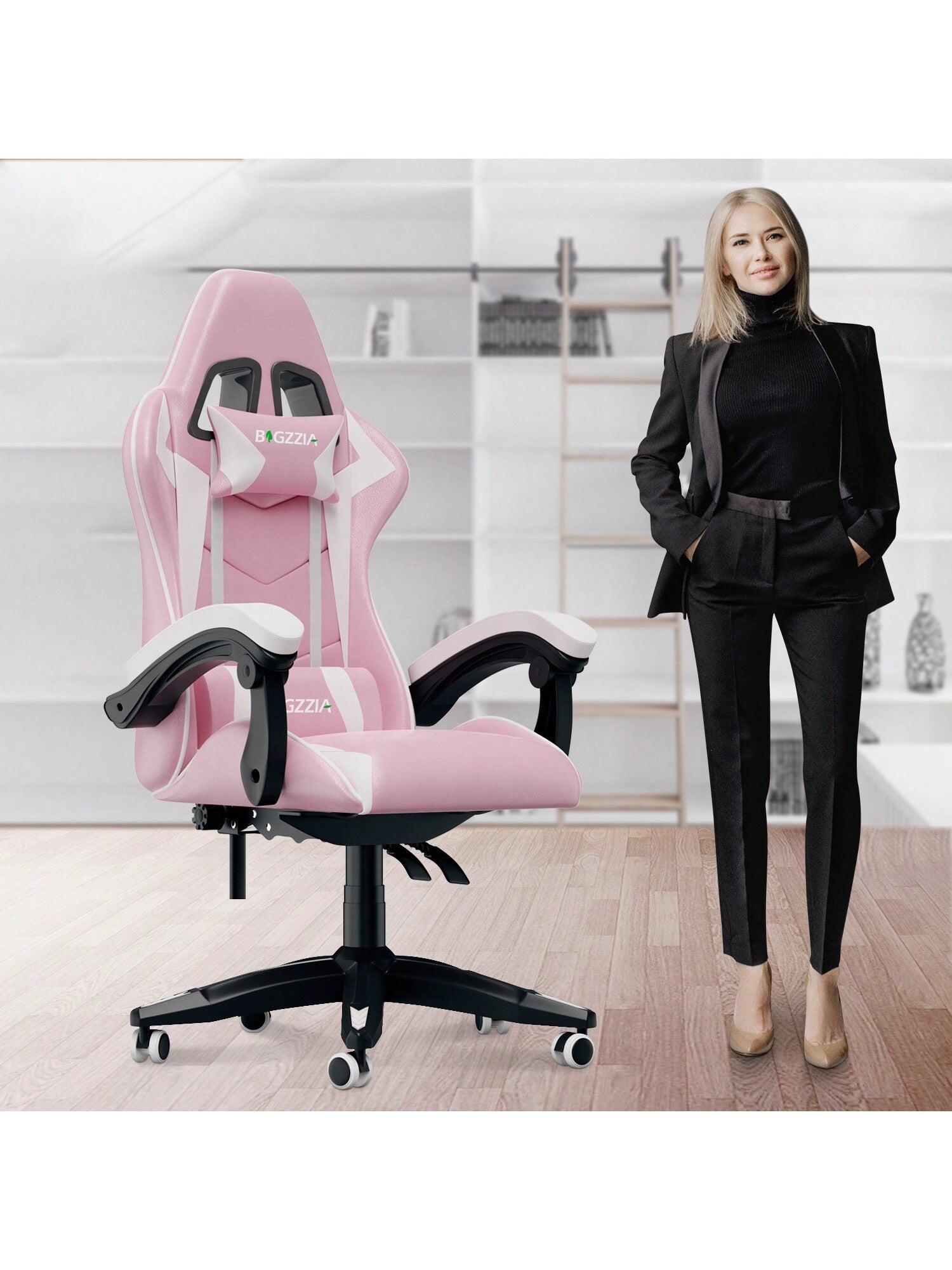 Per diversi stili di interni: 5 colori tra rosa, nero-rosso, nero-bianco, nero-verde e nero-blu tra cui scegliere. Le ruote girevoli a 360° possono essere spostate in modo flessibile tra le stanze, il che è molto adatto per uffici, case, sale giochi per e-sport....di più