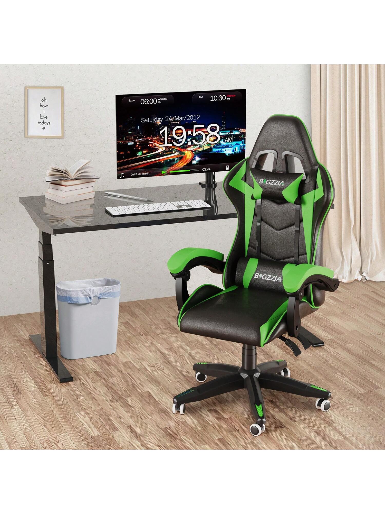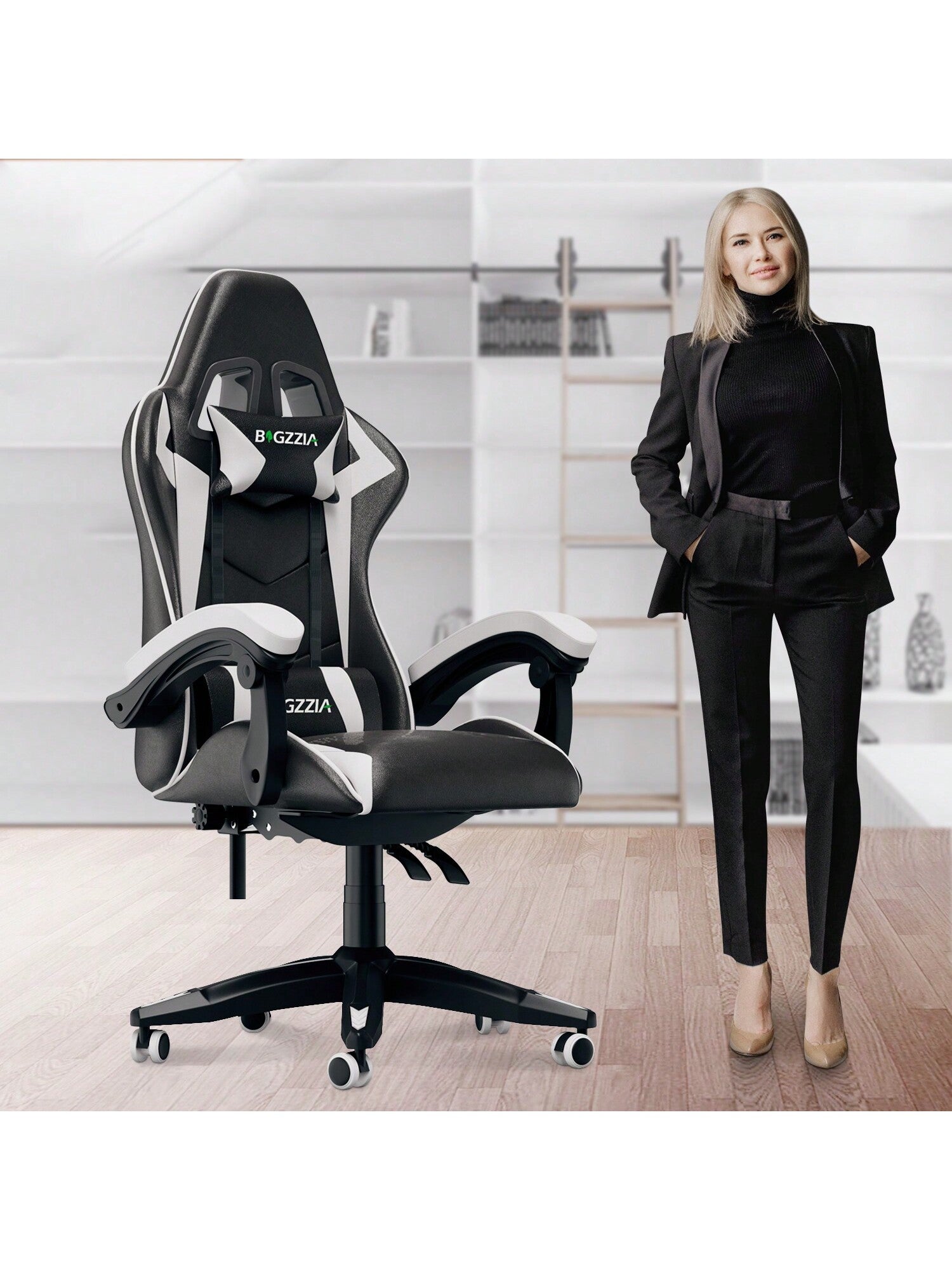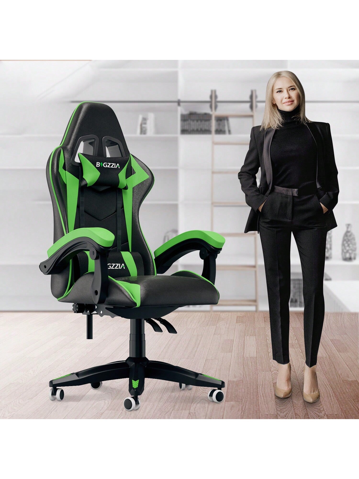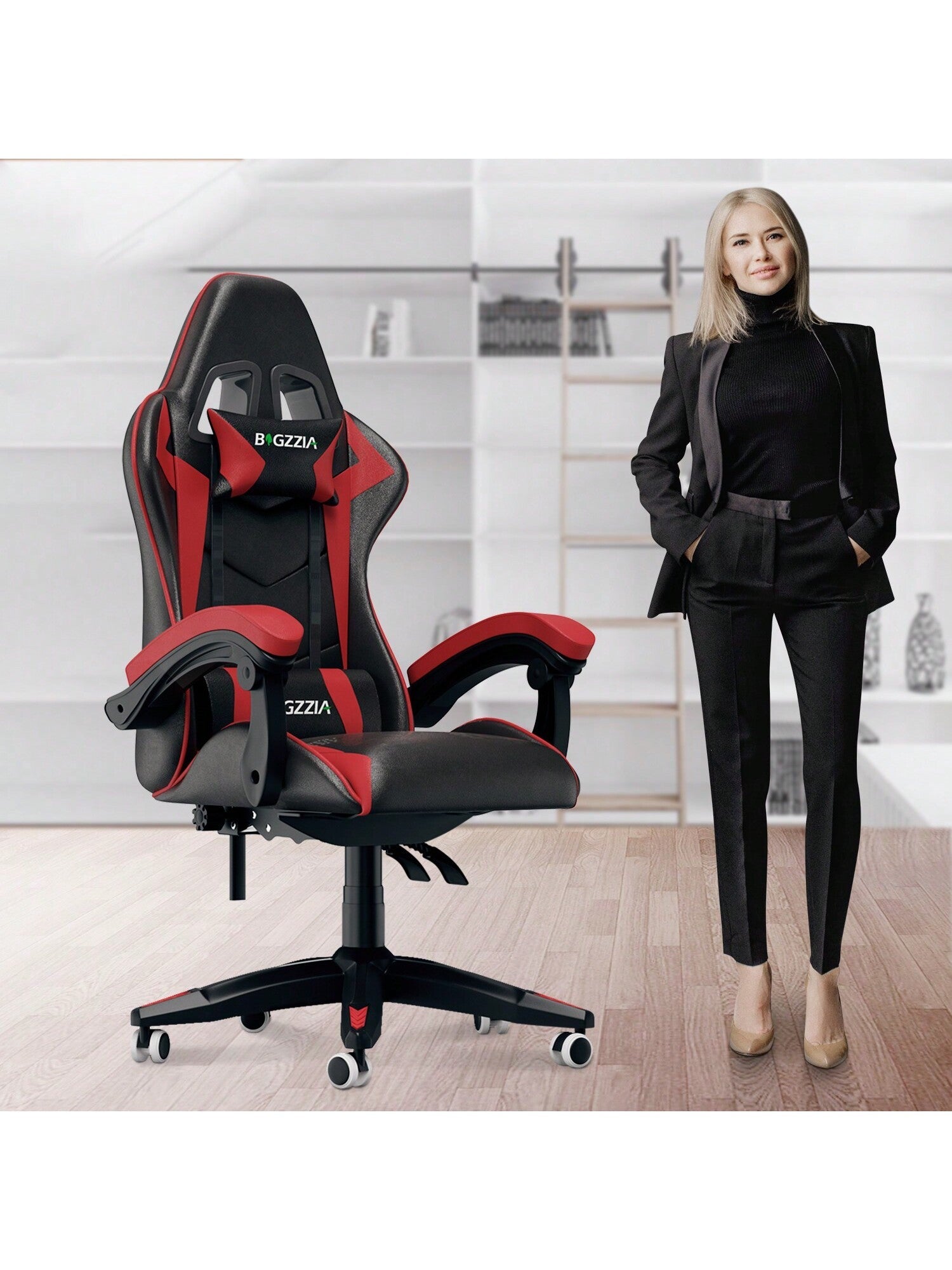 Per diversi stili di interni: 5 colori tra rosa, nero-rosso, nero-bianco, nero-verde e nero-blu tra cui scegliere. Le ruote girevoli a 360° possono essere spostate in modo flessibile tra le stanze, il che è molto adatto per uffici, case, sale giochi per e-sport....di più