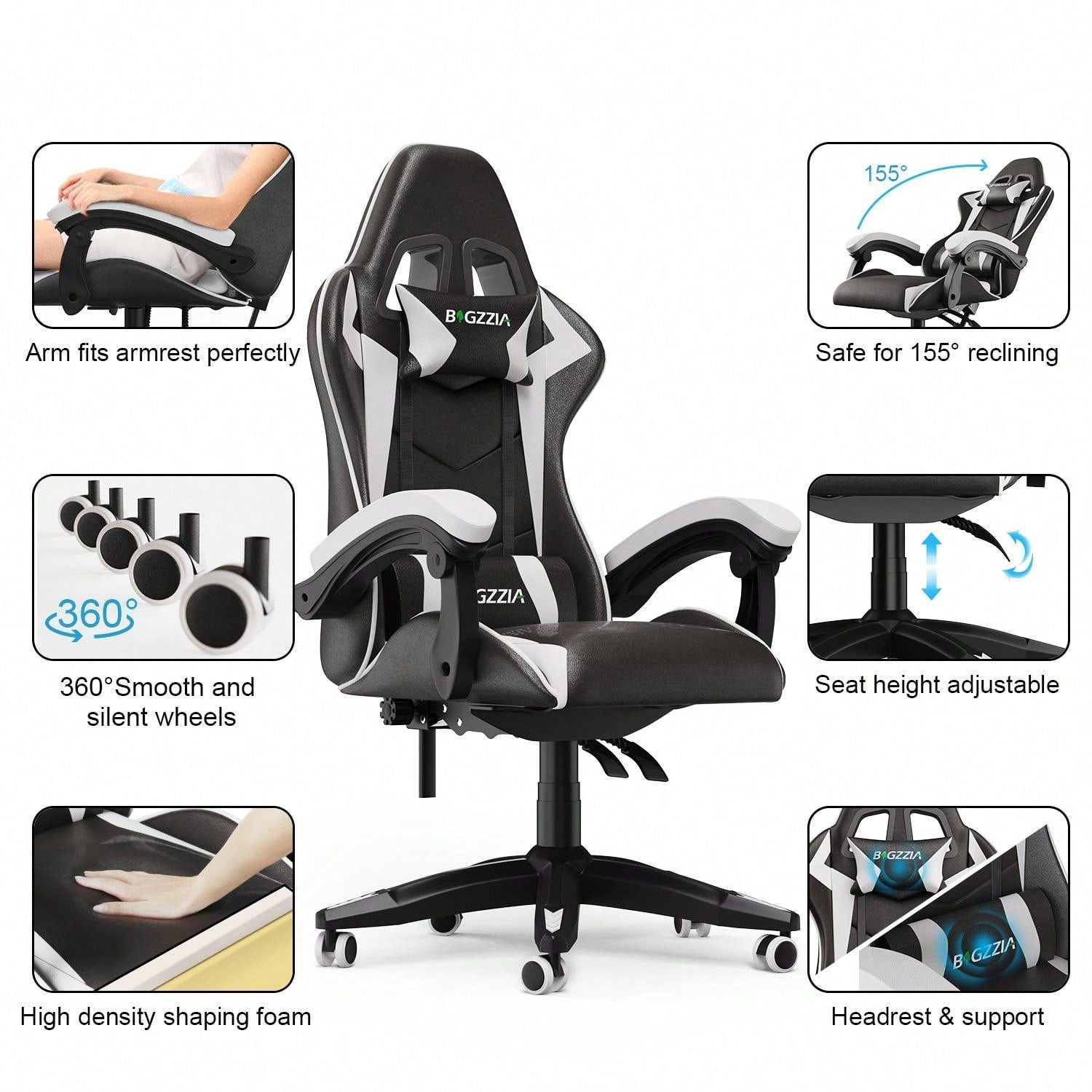 Buon comfort: durante le sessioni di gioco più lunghe o in ufficio a casa, si avvertono tensioni e dolori nella zona lombare a causa della lunga seduta. Per questo, la sedia da gaming, che non sia né troppo dura né troppo morbida, sarebbe una scelta migliore. I cuscini delle nostre sedie sono moderatamente morbidi e i cuscini lombari e per il collo inclusi (rimovibili) consentono una seduta più confortevole.