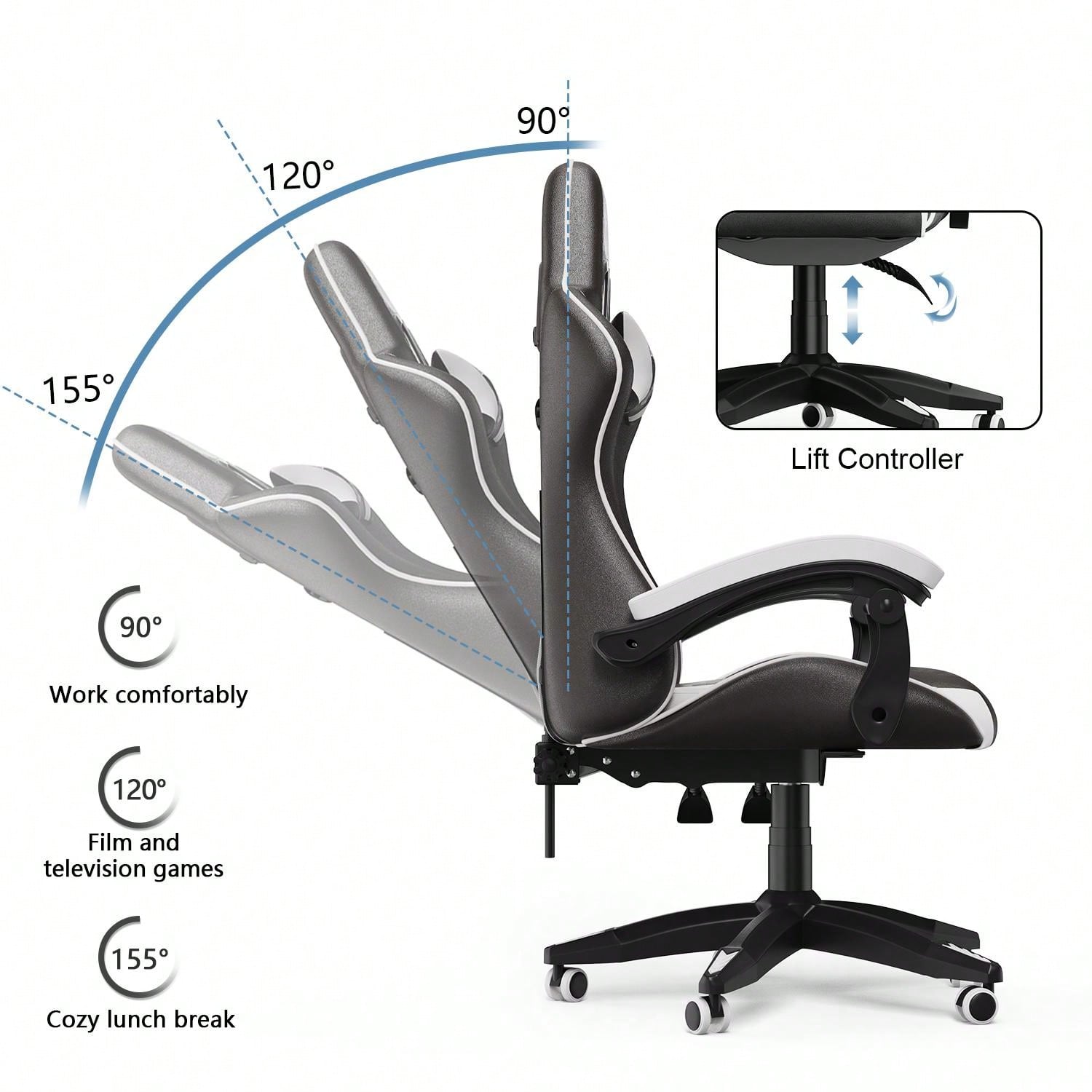 Altezza regolabile: la sedia da gioco è regolabile in altezza da 124 a 134 cm e lo schienale può essere inclinato all'indietro da 90° a 155°, il che aiuta ad adattarsi alle diverse dimensioni del corpo e alle altezze del tavolo.