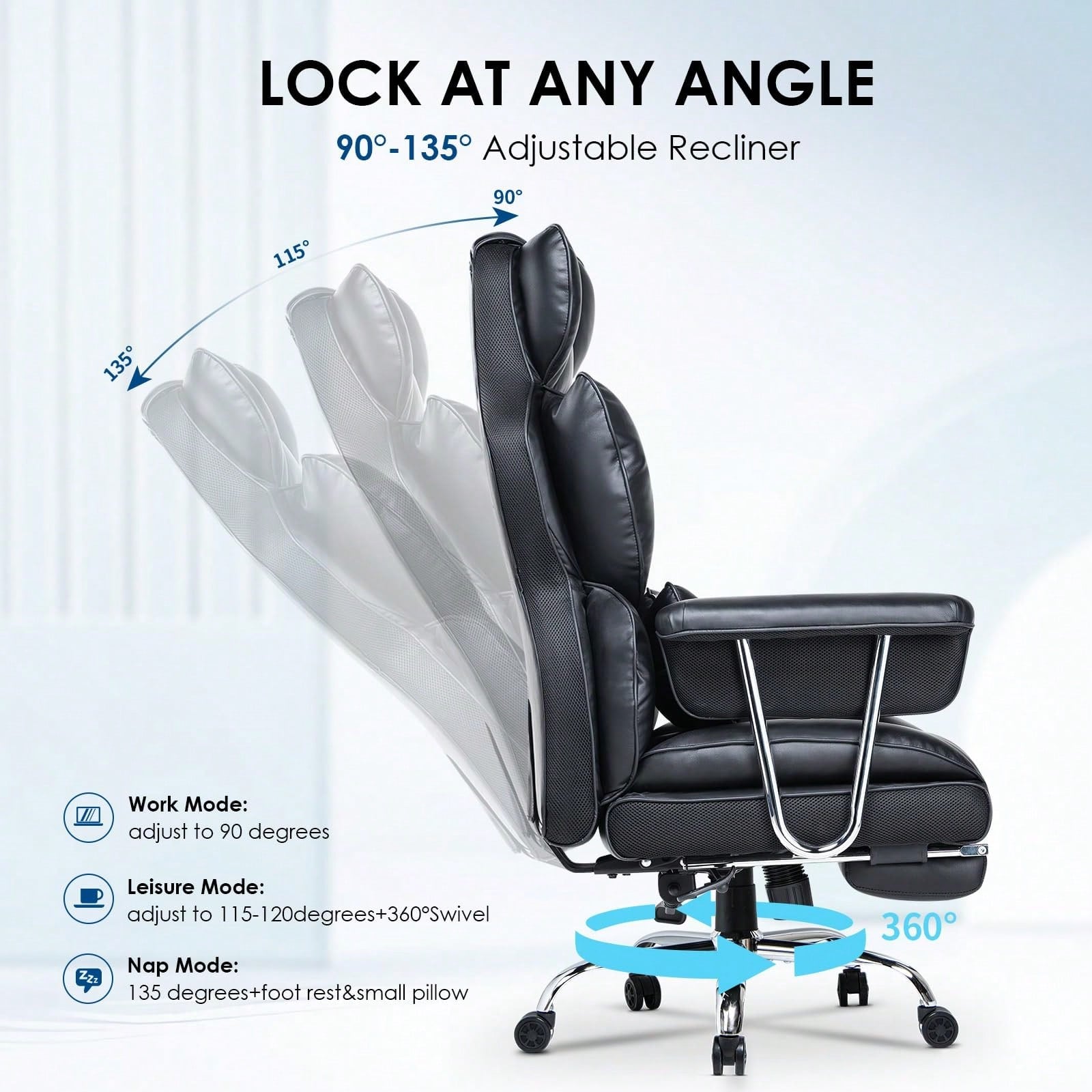 Sedia da ufficio ergonomica con cartella in pelle e poggiapiedi per l'ufficio a casa
