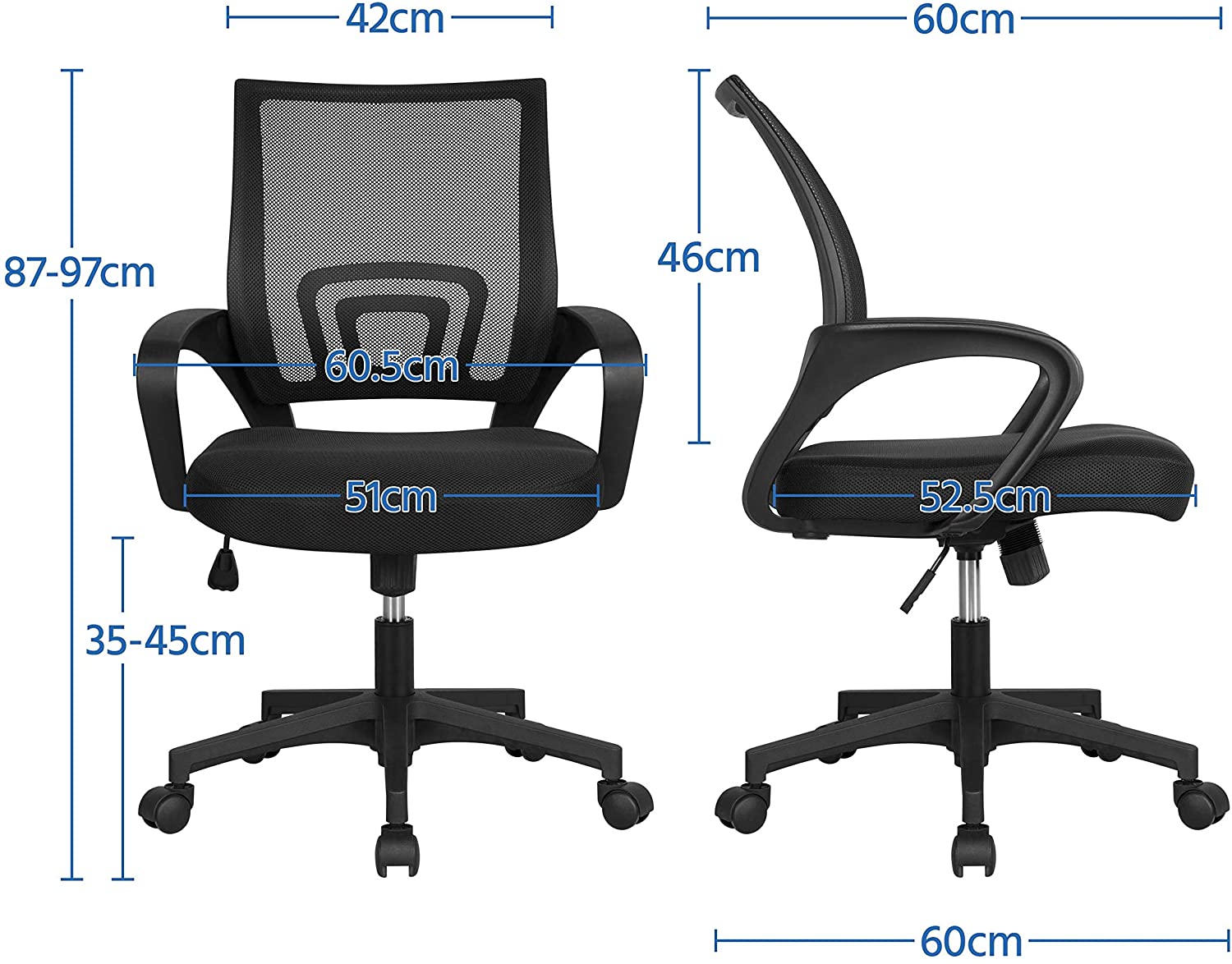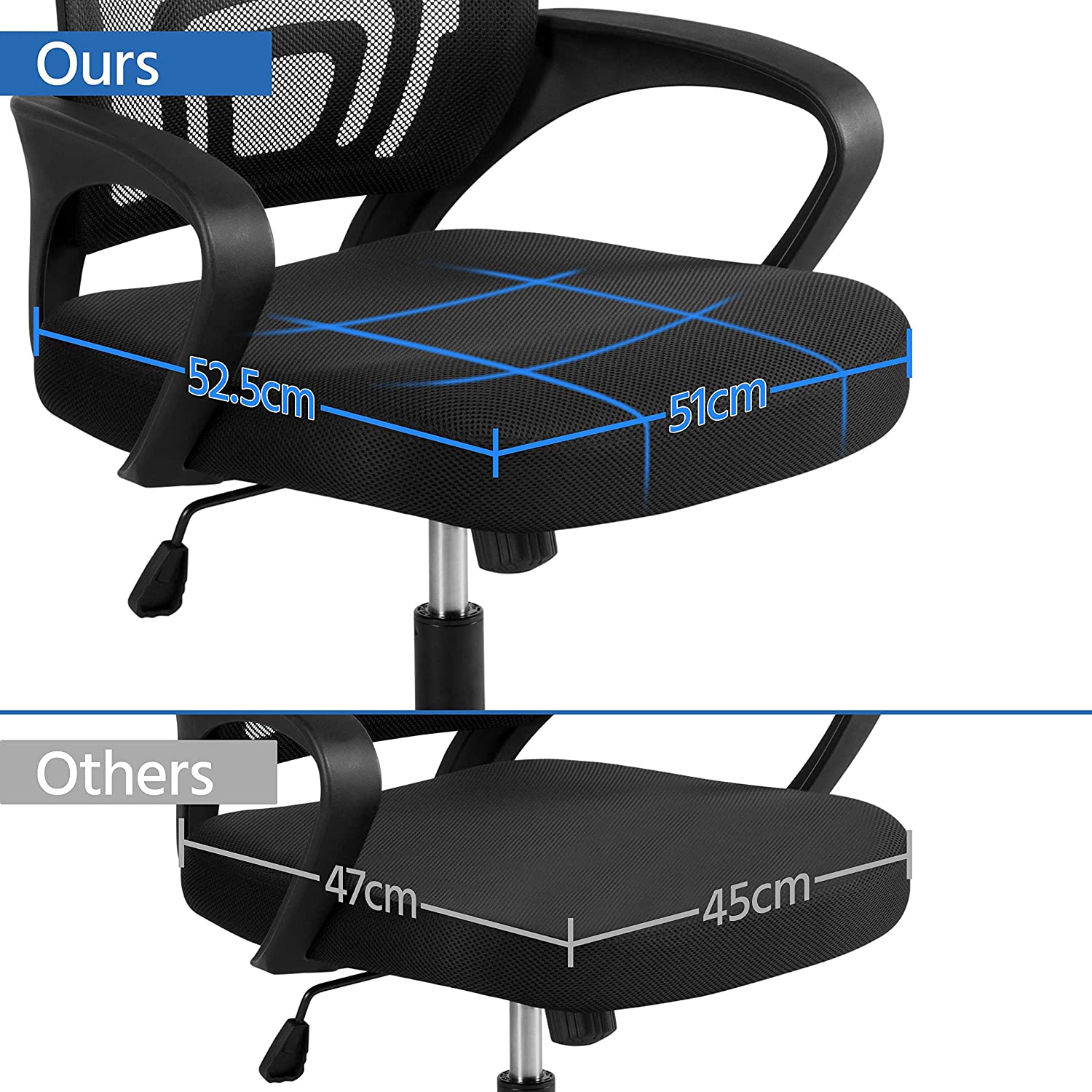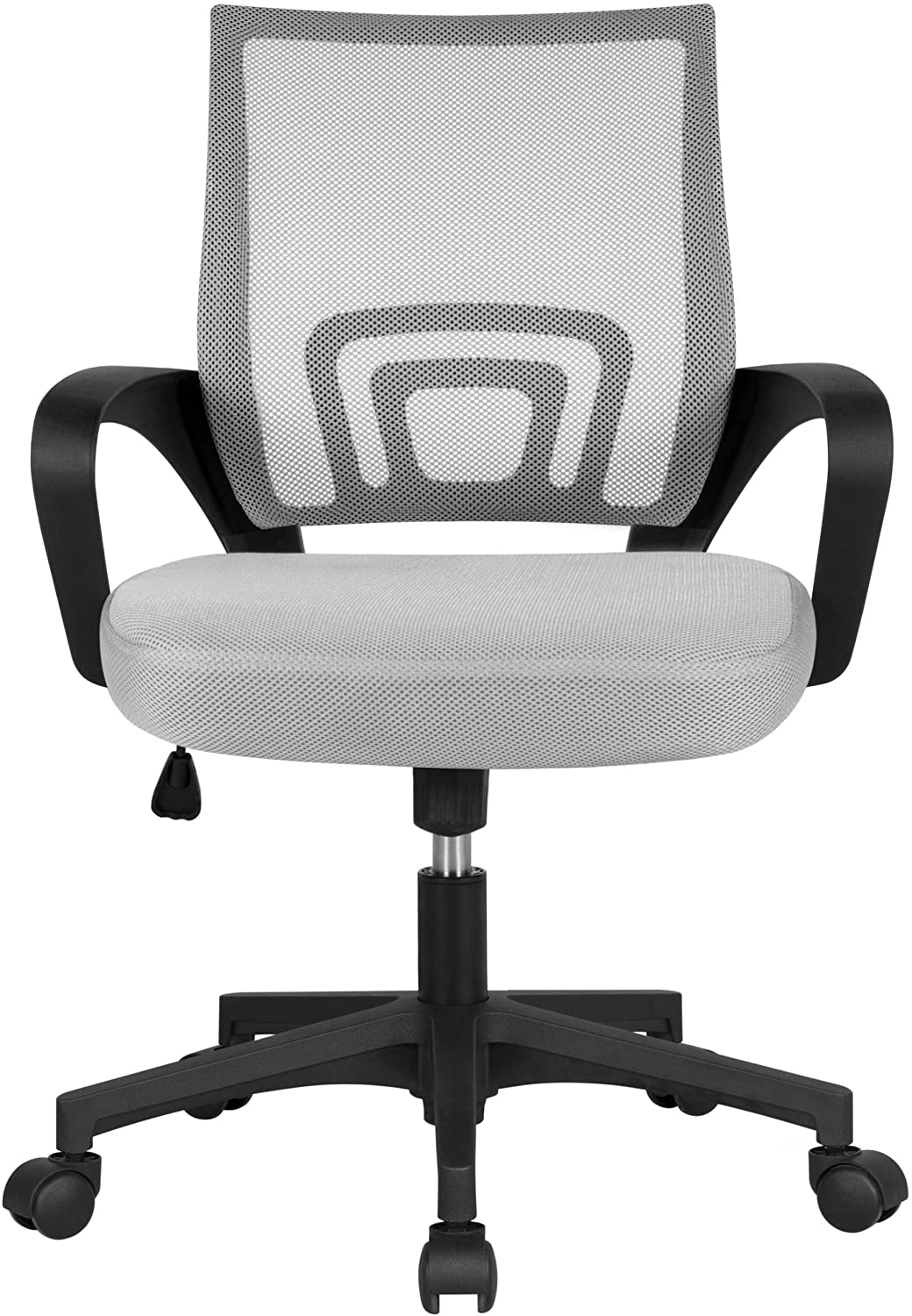 Una buona sedia da ufficio può essere utile per un giorno lavorativo produttivo. Questa sedia ergonomica girevole a 360 ° è la scelta più economica per il tuo ufficio e la casa. Sedile imbottito in spugna morbida e schienale in rete traspirante ti offrono una bella e comoda esperienza di sedere anche durante il clima caldo. Lo schienale curvo con supporti lombari può ridurre la fatica dopo la seduta da lungo tempo. Altezza del sedile regolabile alle tue esigenze variabili. Cinque ruote possono essere ruotate e rotolate in tutte le direzioni, che è conveniente per il multitasking. Il design inclinabile ti aiuta a raggiungere un migliore rilassamento dopo il duro lavoro. Questa sedia a rete resistente e robusta è pronta per il tuo uso a lungo termine.