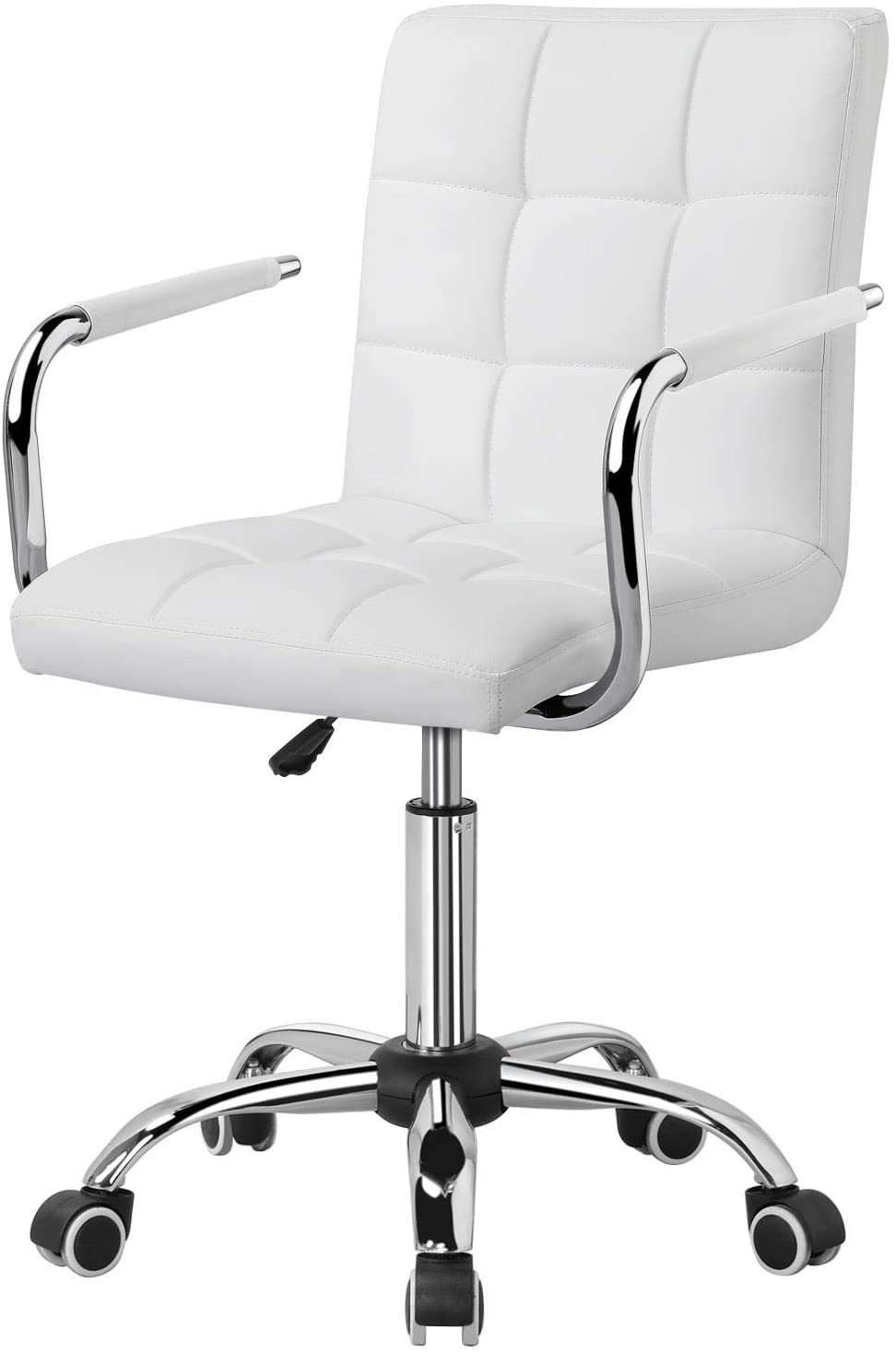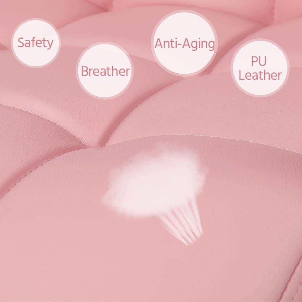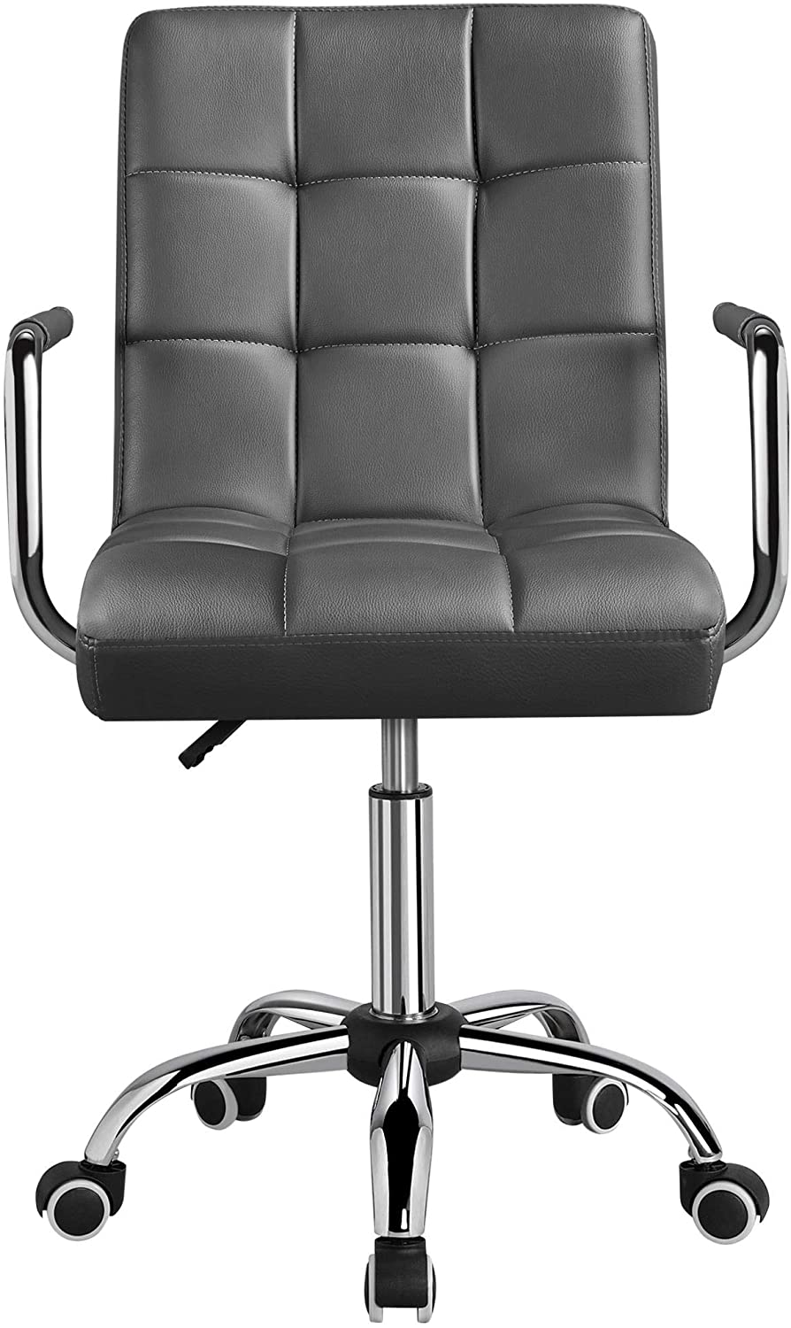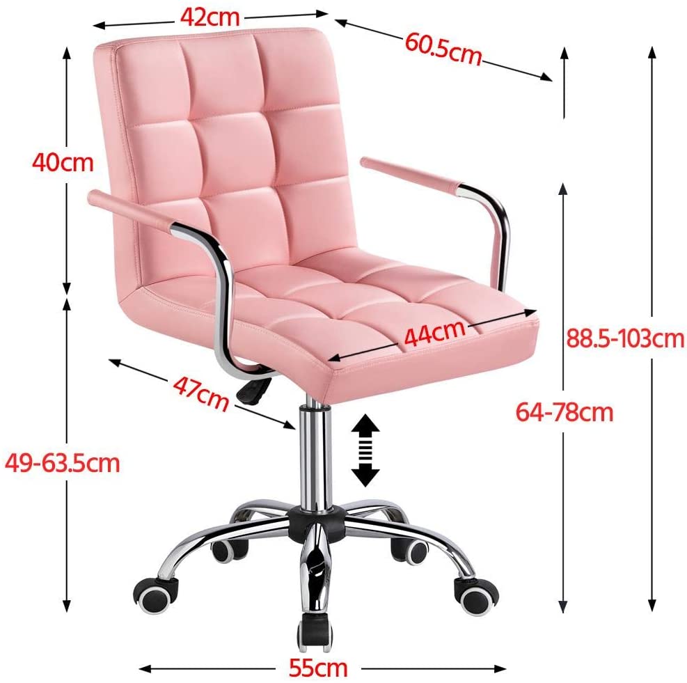 La sedia da ufficio è rivestita in pelle PU e il mainframe della sedia è in metallo. Il sedile è riempito con schiuma morbida, le ruote comode sono di plastica, gomma e metallo.