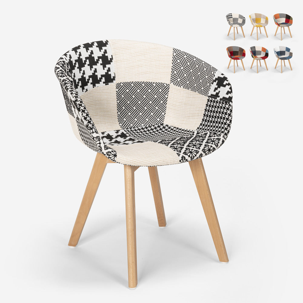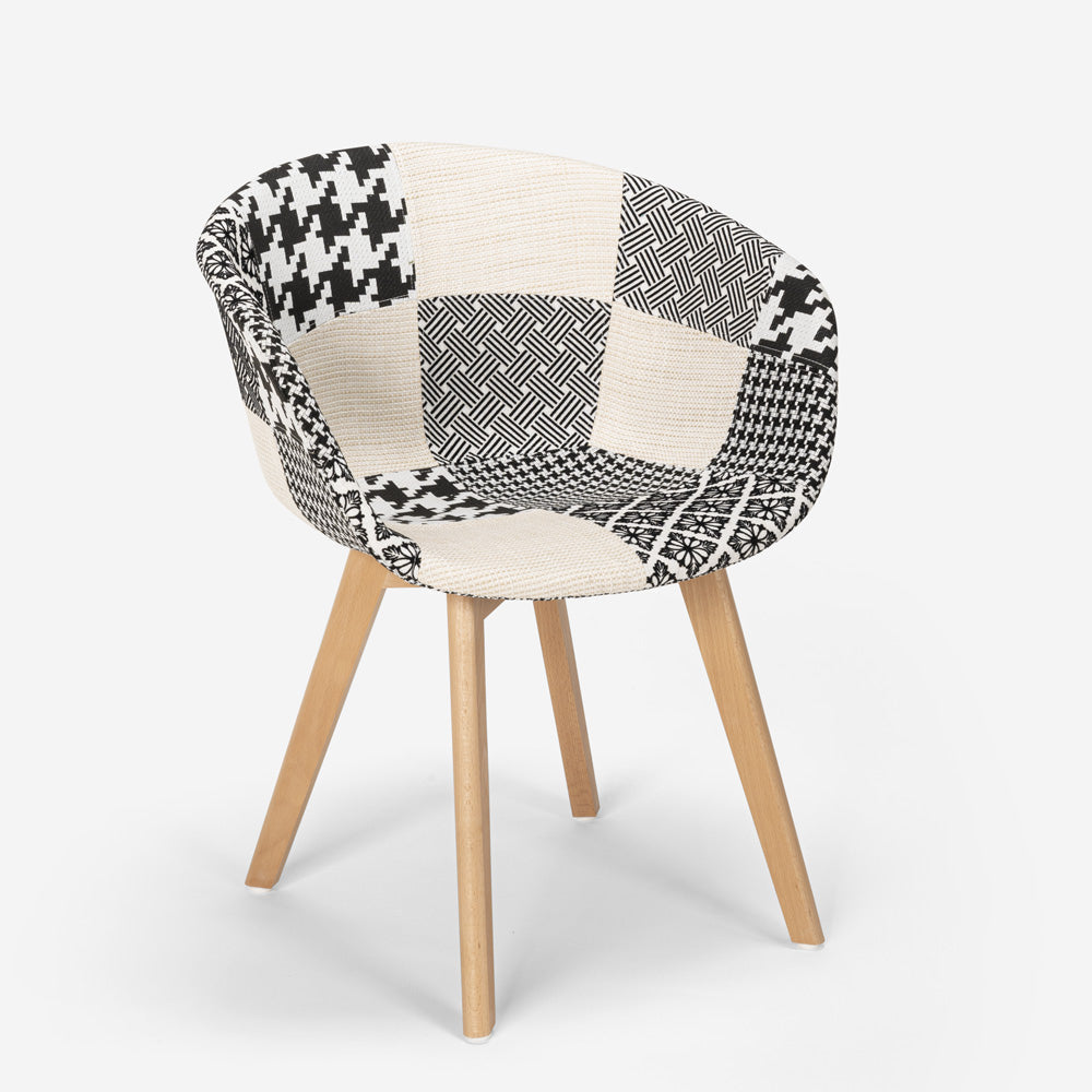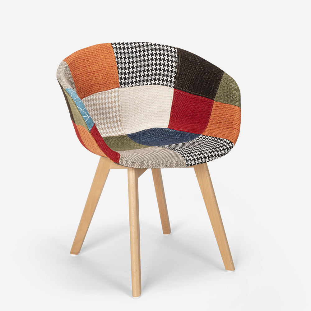 Sedia patchwork design nordico legno e tessuto cucina bar ristorante Pigeon