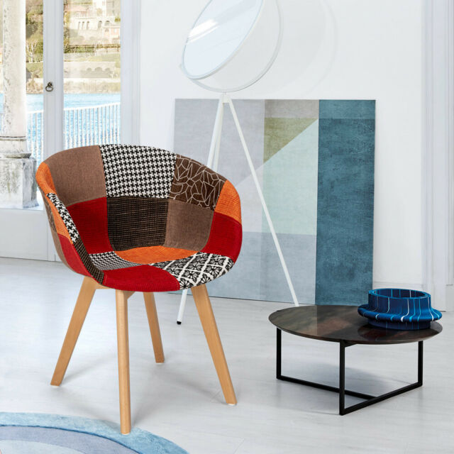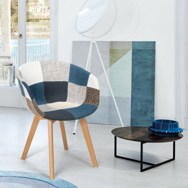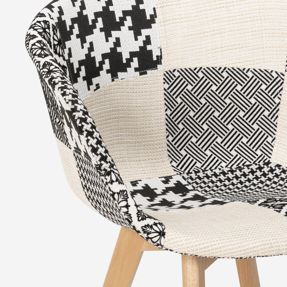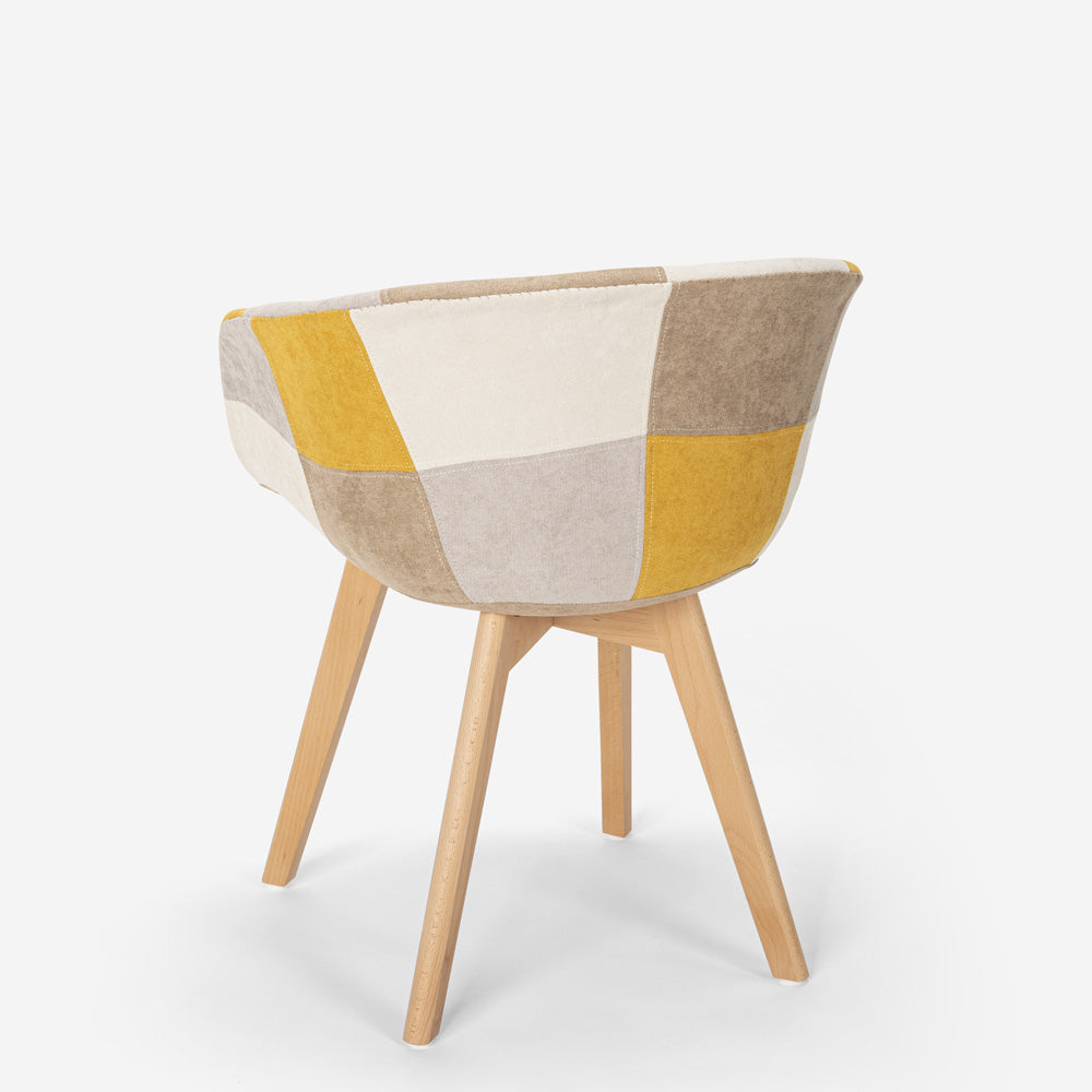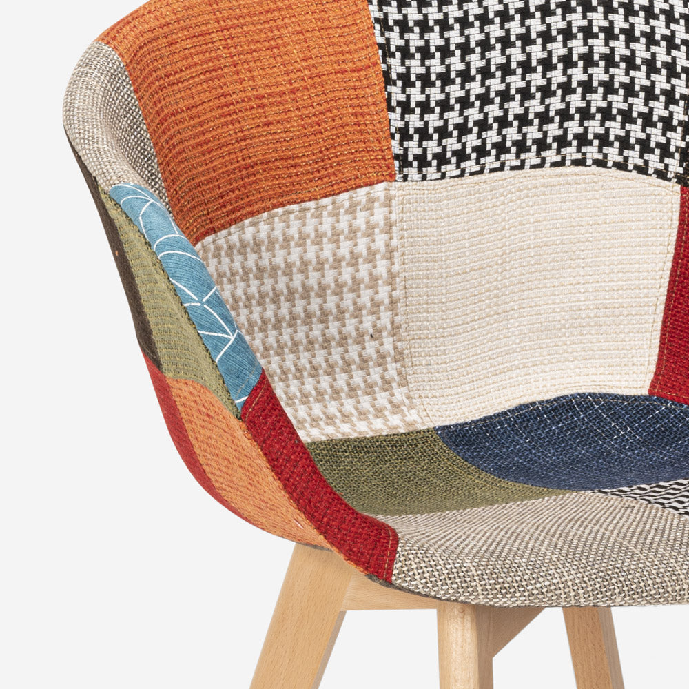 Sedia patchwork design nordico legno e tessuto cucina bar ristorante Pigeon