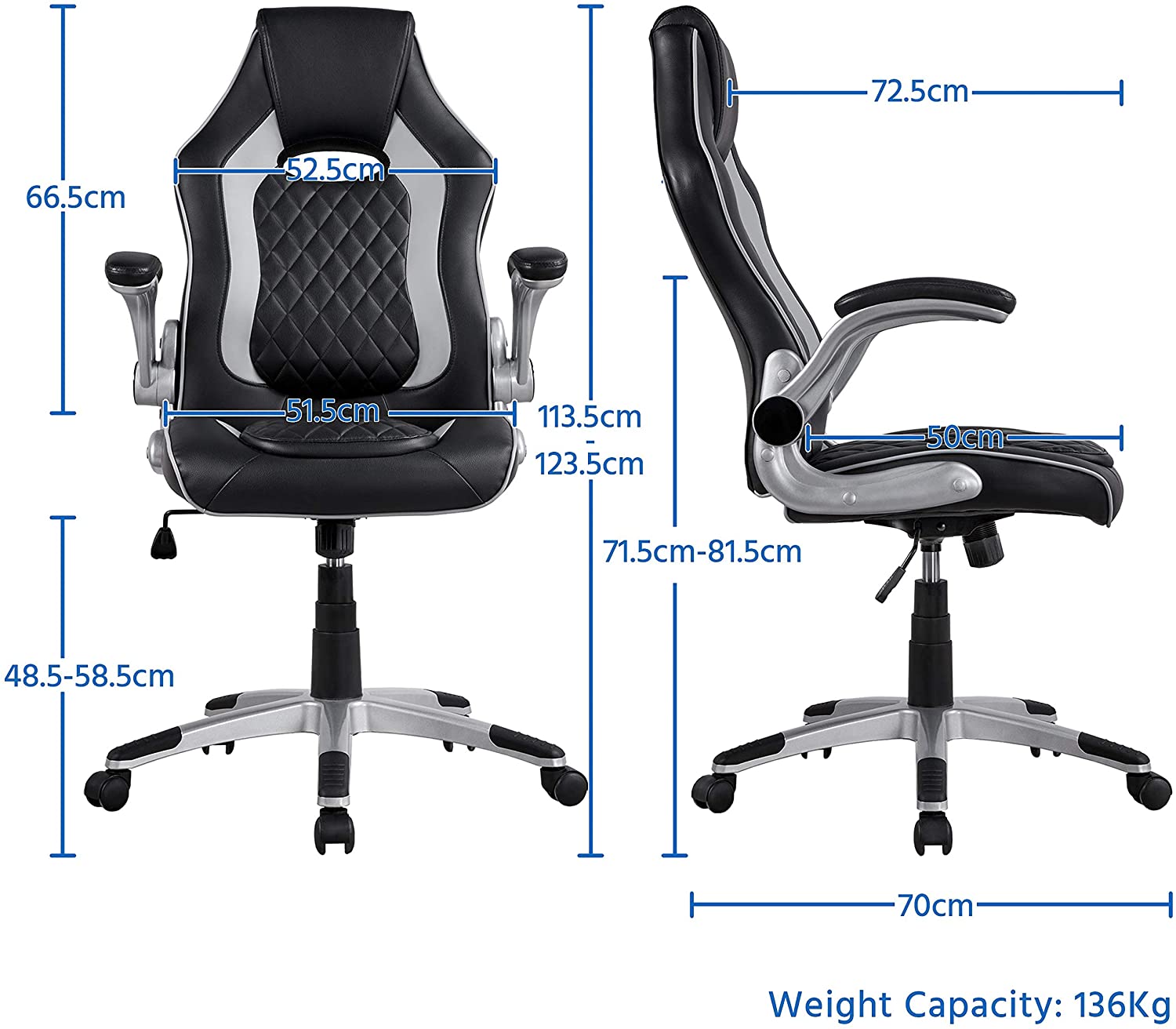 - Materiale di Alta Qualità: la robusta struttura in metallo ad alta densità rinforza sia la stabilità che la durata della sedia. La ecopelle morbida di prima qualità con una grande consistenza è anche impermeabile e facile da pulire. Consigliamo questa sedia per gli utenti di peso inferiore a 136kg. Sicurezza e comfort tutto in uno.