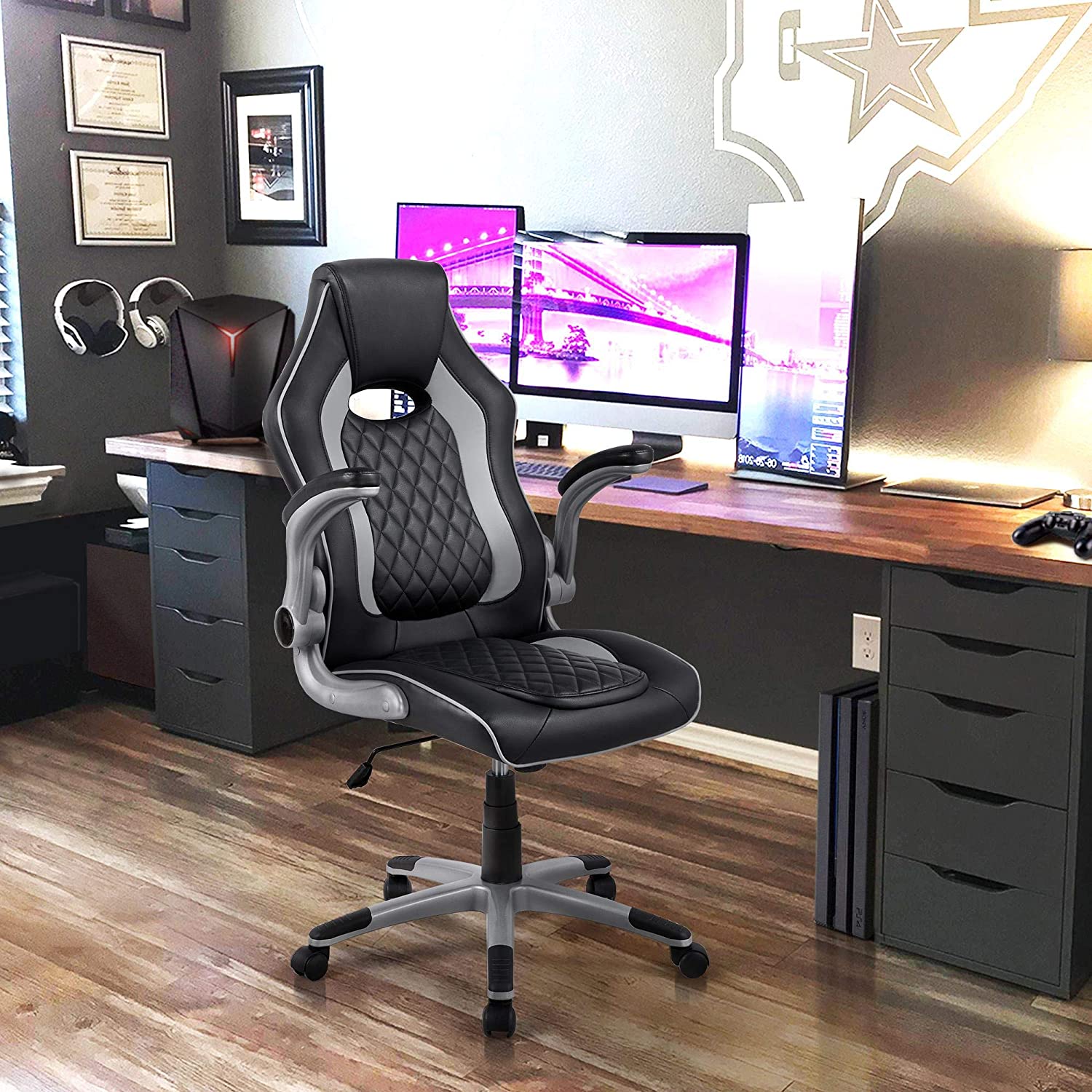 Sedia/Poltrona Ufficio Scrivania Ergonomica con Braccioli Pieghevoli Girevole