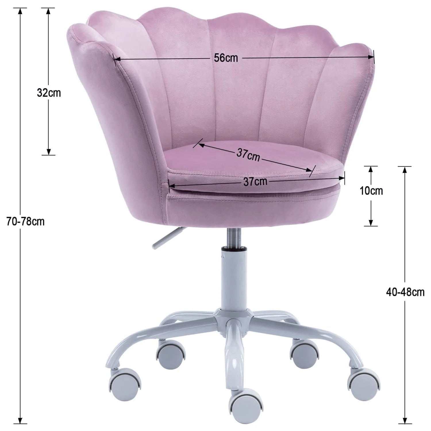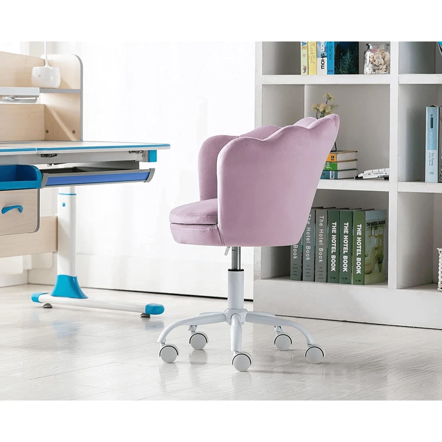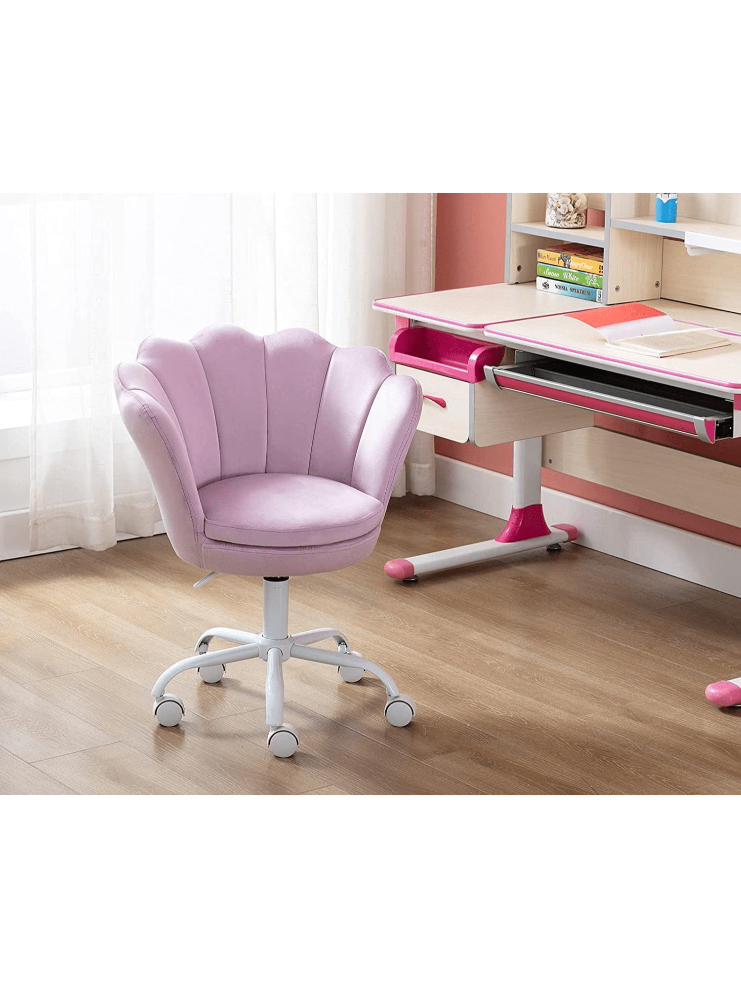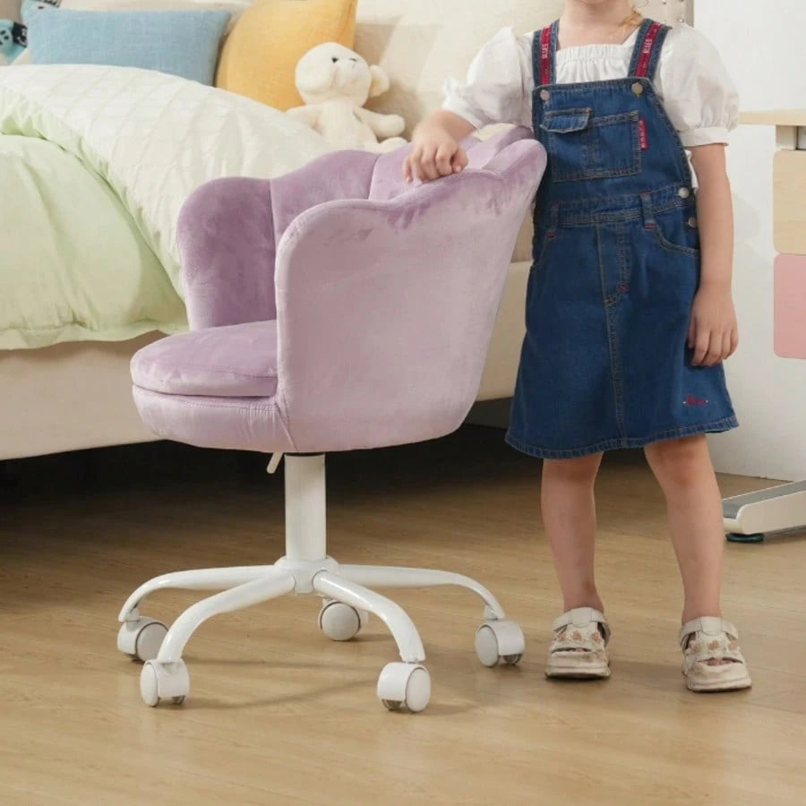 Sedia da scrivania per bambini realizzata in velluto morbido, disponibile nella tonalità Petalo ideale per le ragazze.