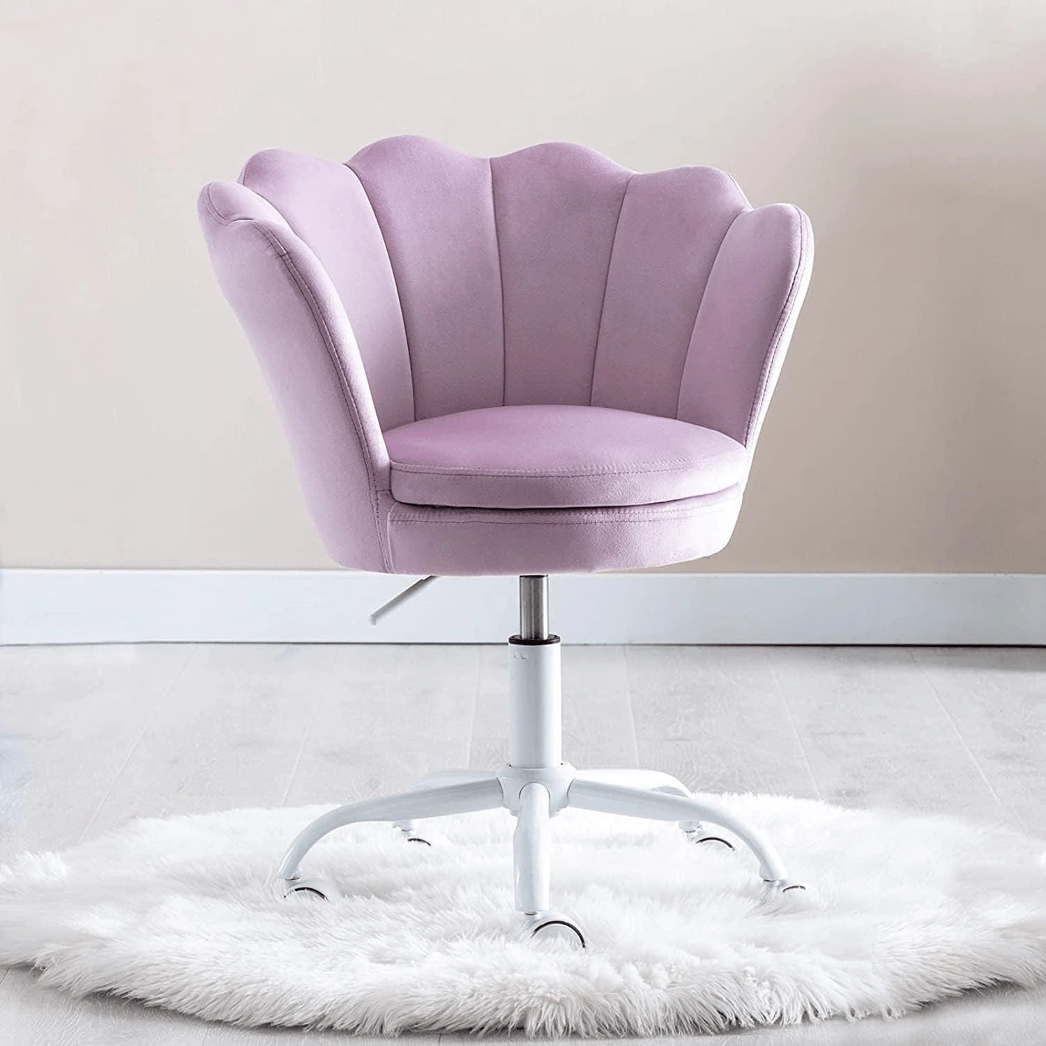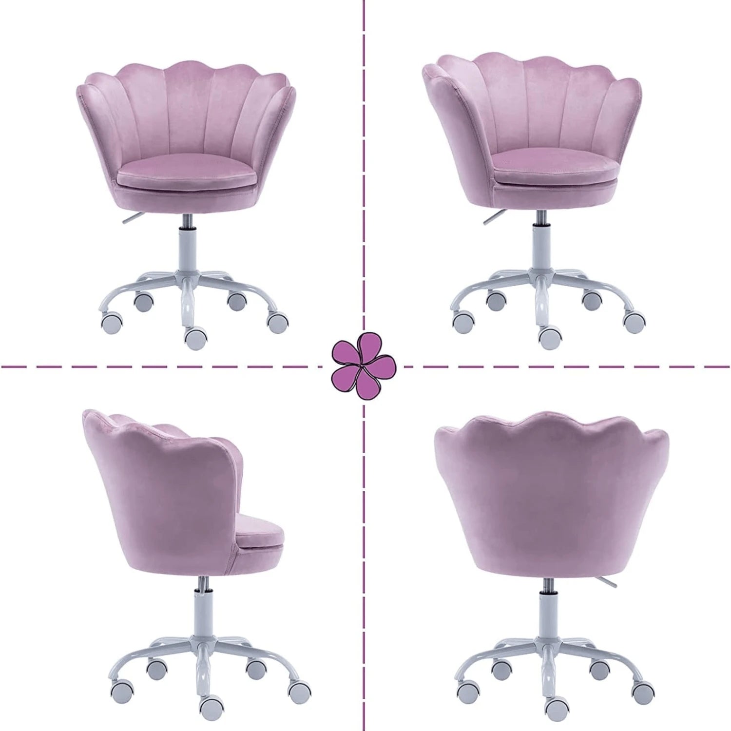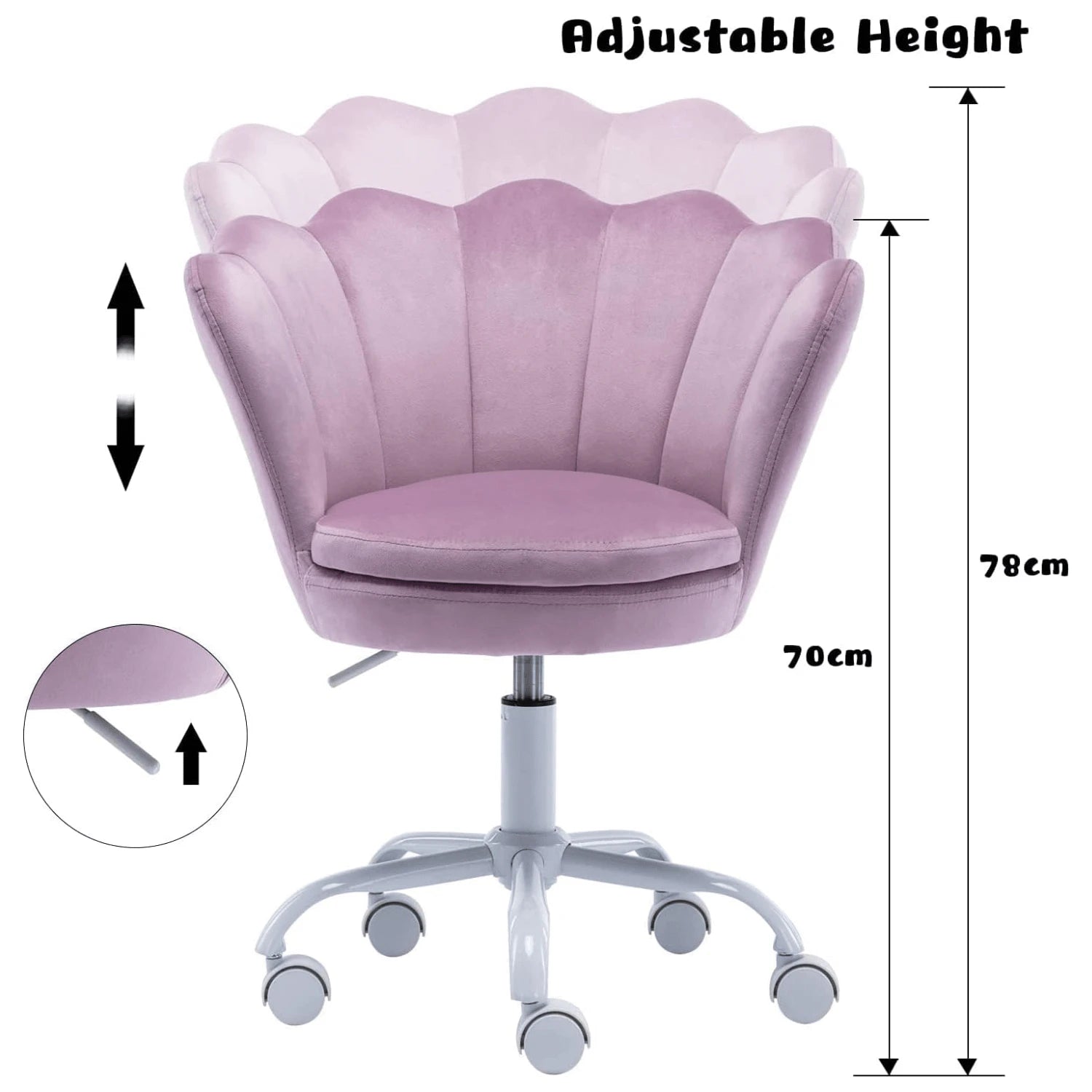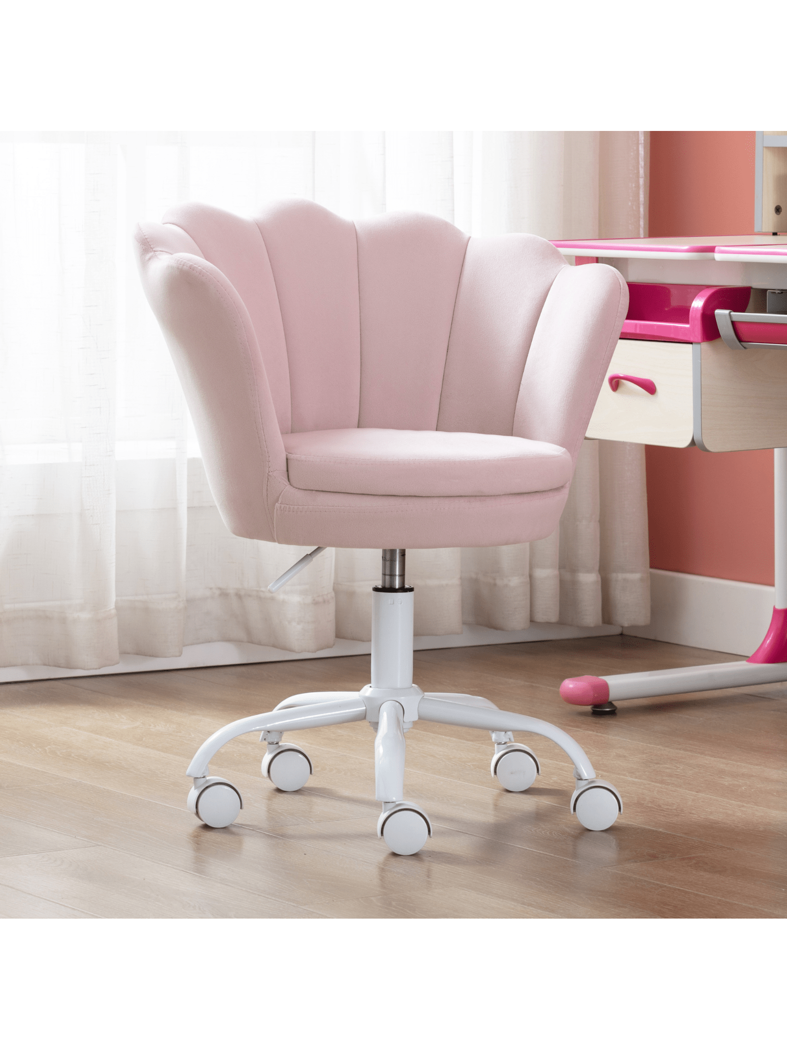 Sedia da scrivania per bambini realizzata in velluto morbido, disponibile nella tonalità Petalo ideale per le ragazze.