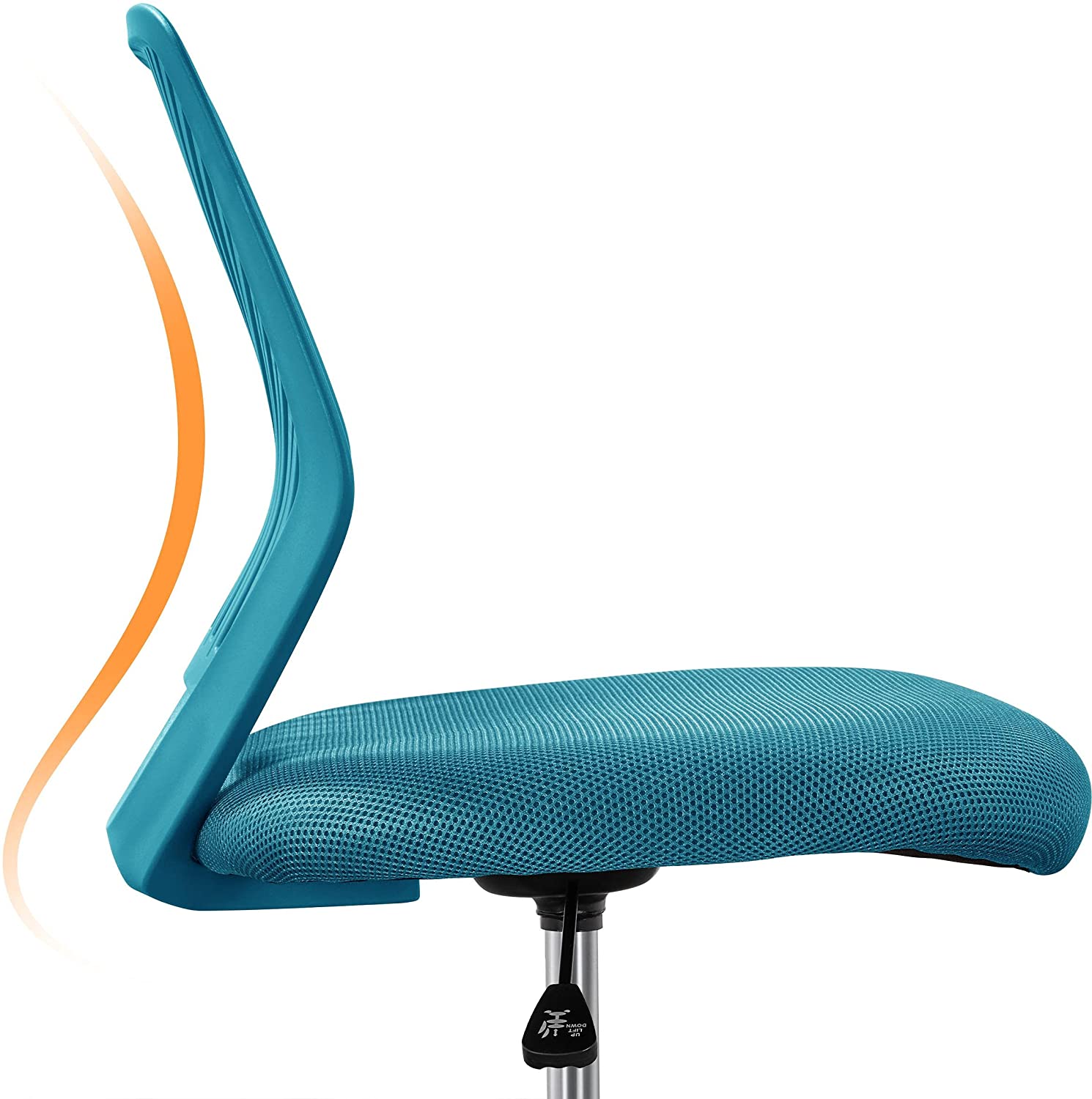 Sedia Ufficio Scrivania Girevole a Rotelle Ergonomica Portata 136 kg Senza Braccioli in Rete Traspirante Altezza Regolabile Turchese Sedia Morbida e Confortevole Sedia Ergonomica
