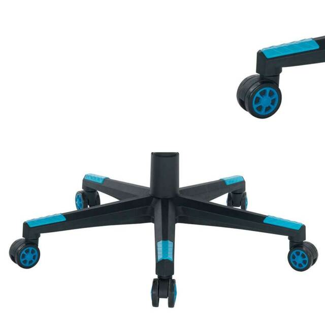 Solida base in Nylon a 5 razze dotata di pistone a gas che regola la rotazione a 360° della sedia e la regolazione dell'altezza della seduta fino a ad un massimo di 53 cm (circa) inoltre le pratiche ruote antigraffio permettono un facile spostamento della sedia su qualsiasi tipo di pavimento.