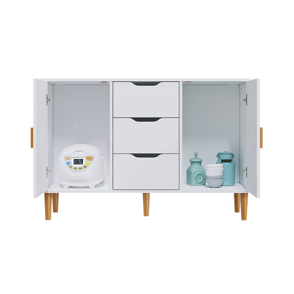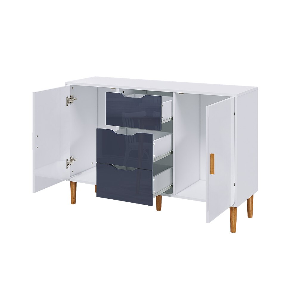 La credenza unità è sapientemente realizzato in truciolare ambientale di alta qualità, che garantiscono stabilità e durata nel tempo. E 5 gambe del mobile sono realizzati in legno massello, in modo che il cabinet può essere supportati in un modo molto stabile.Il pavimento armadio è dotato di due porte e...