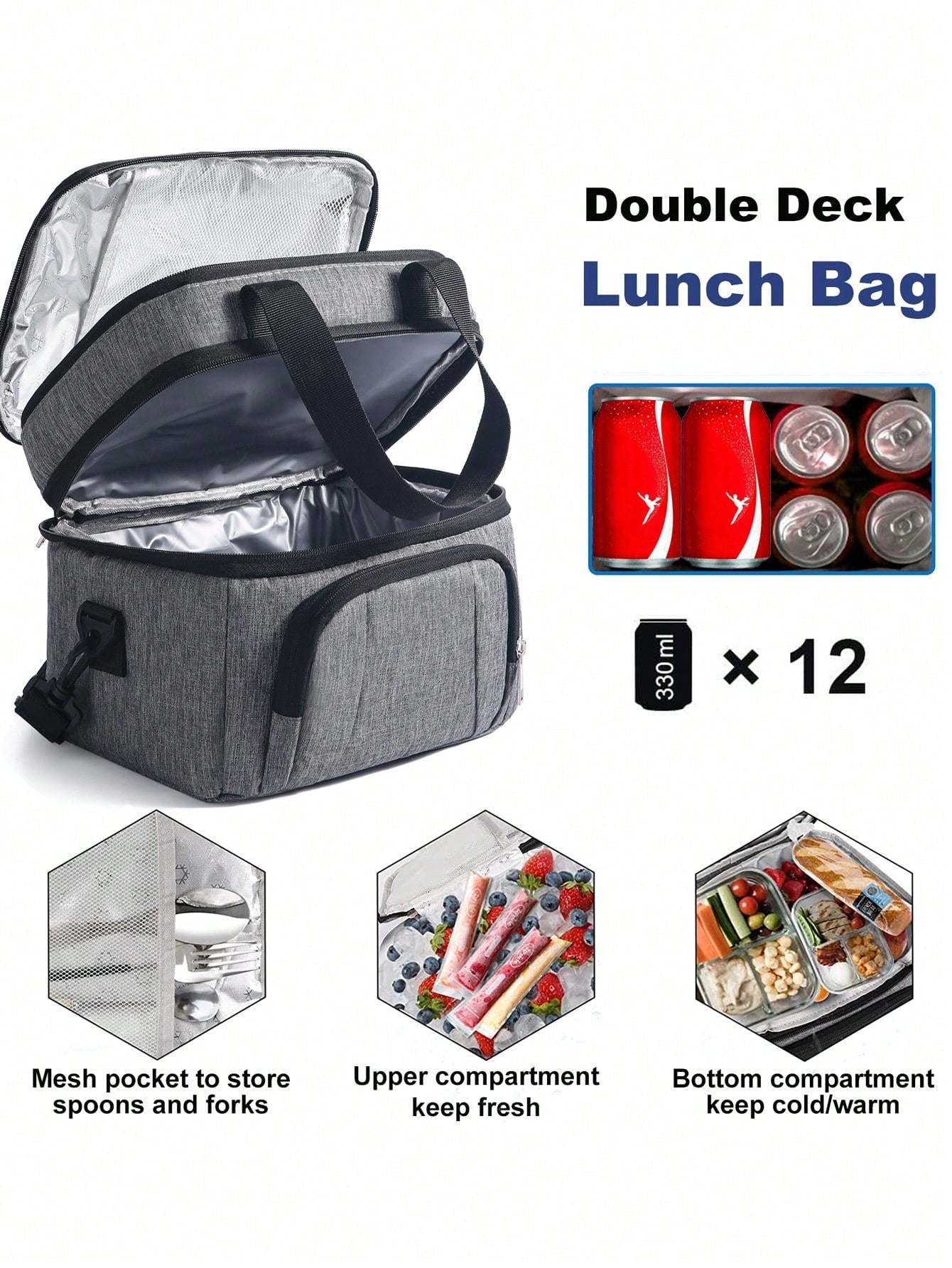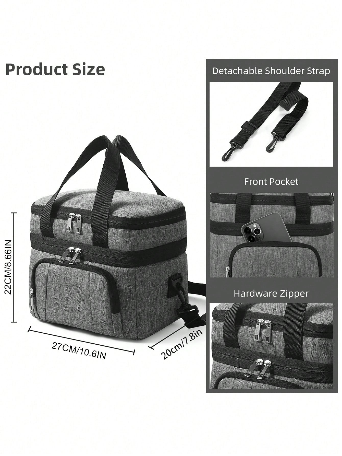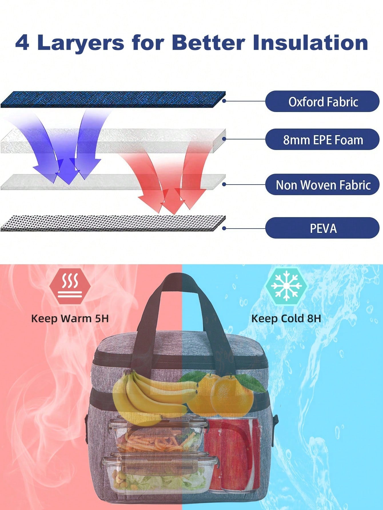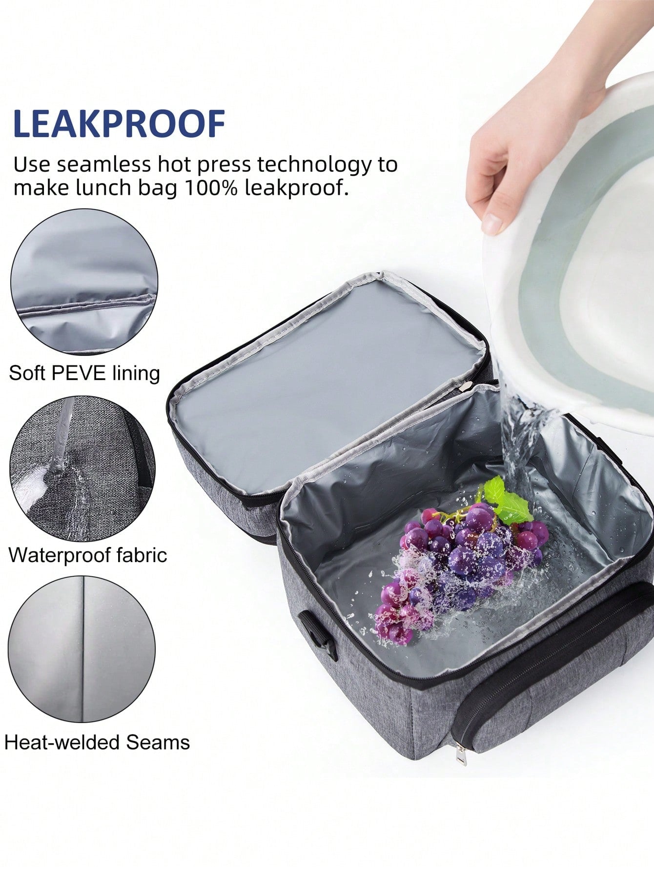 • CASARIA Borsa per il pranzo isolata di grande capacità con tracolla, design a doppio strato con impacco di ghiaccio