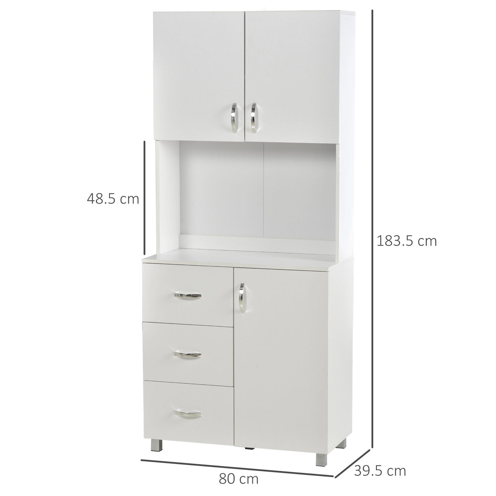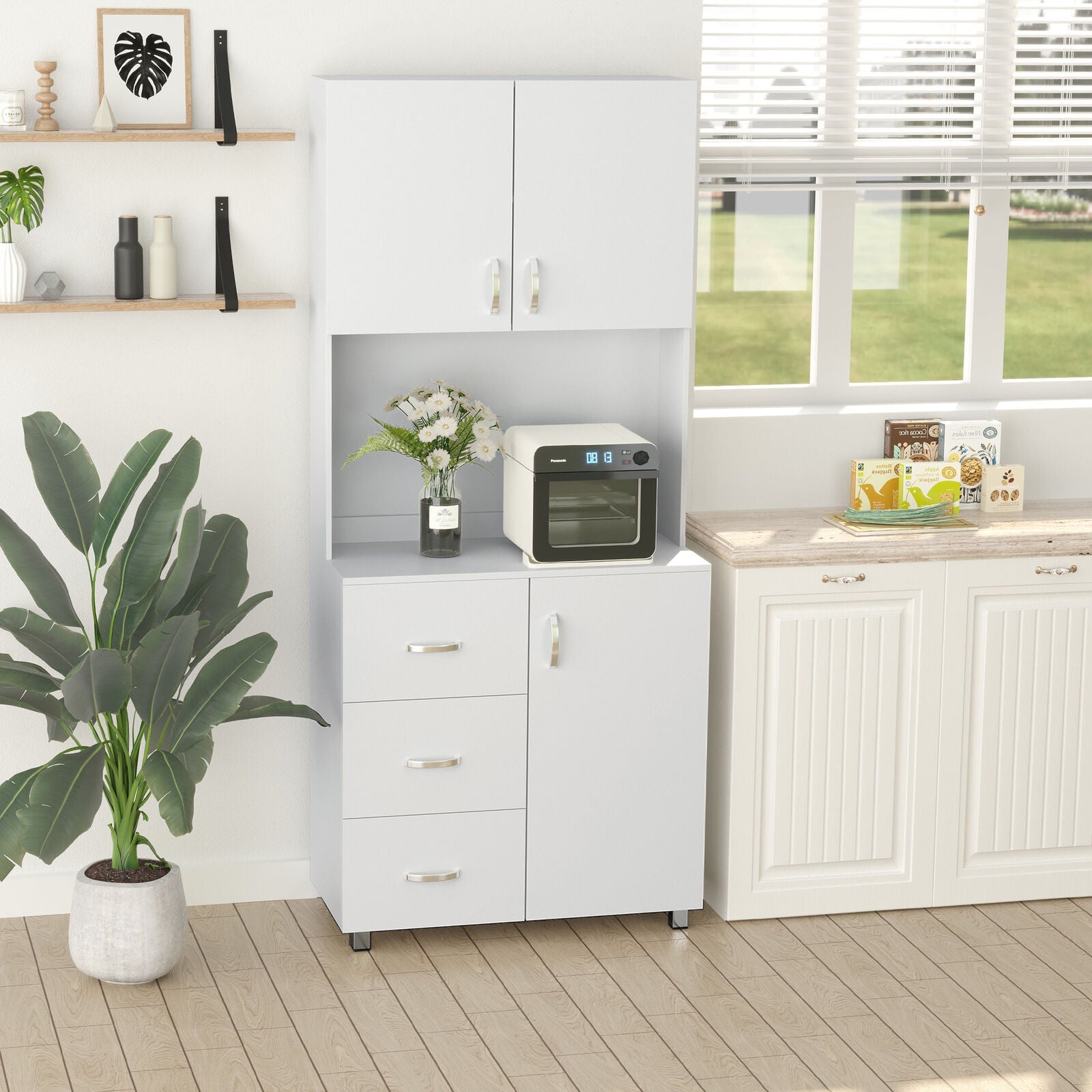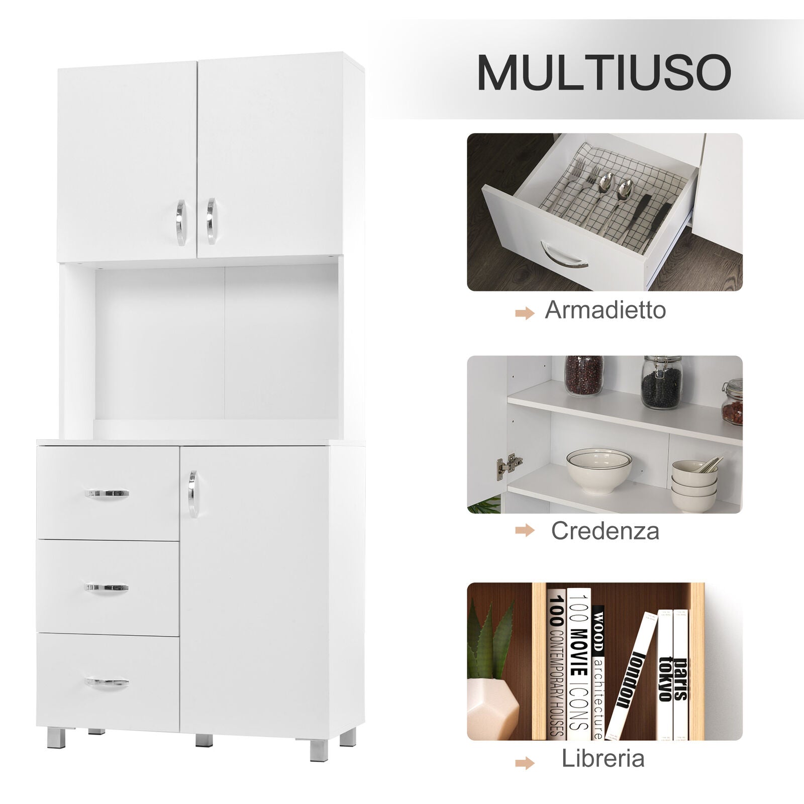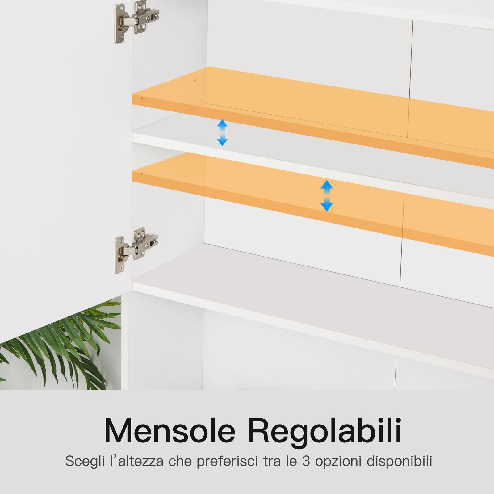 Credenza in Legno Bianco con 2 Armadietti 1 Ripiano Aperto e 3 Cassetti