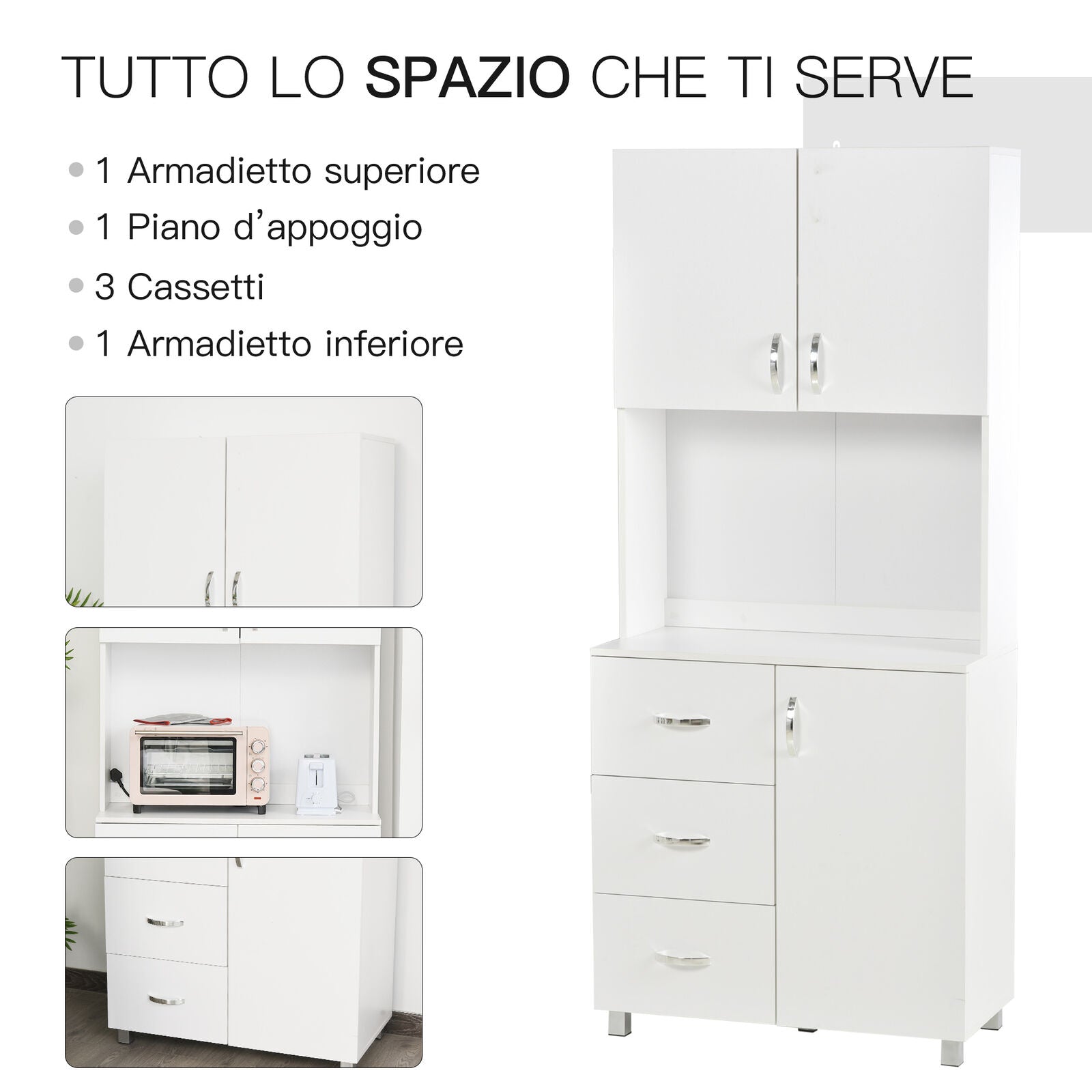 Vuoi arredare la tua casa e tenere piatti, bicchieri e pentole sempre in ordine? Questa credenza combina eleganza e funzionalità, ed è perfetta per decorare la tua sala da pranzo o la tua cucina con uno stile classico che non passerà mai di moda. Tutto il mobile è costruito con pannelli truciolari ed è composto da: 2 armadietti, un ripiano aperto e 3 cassetti.