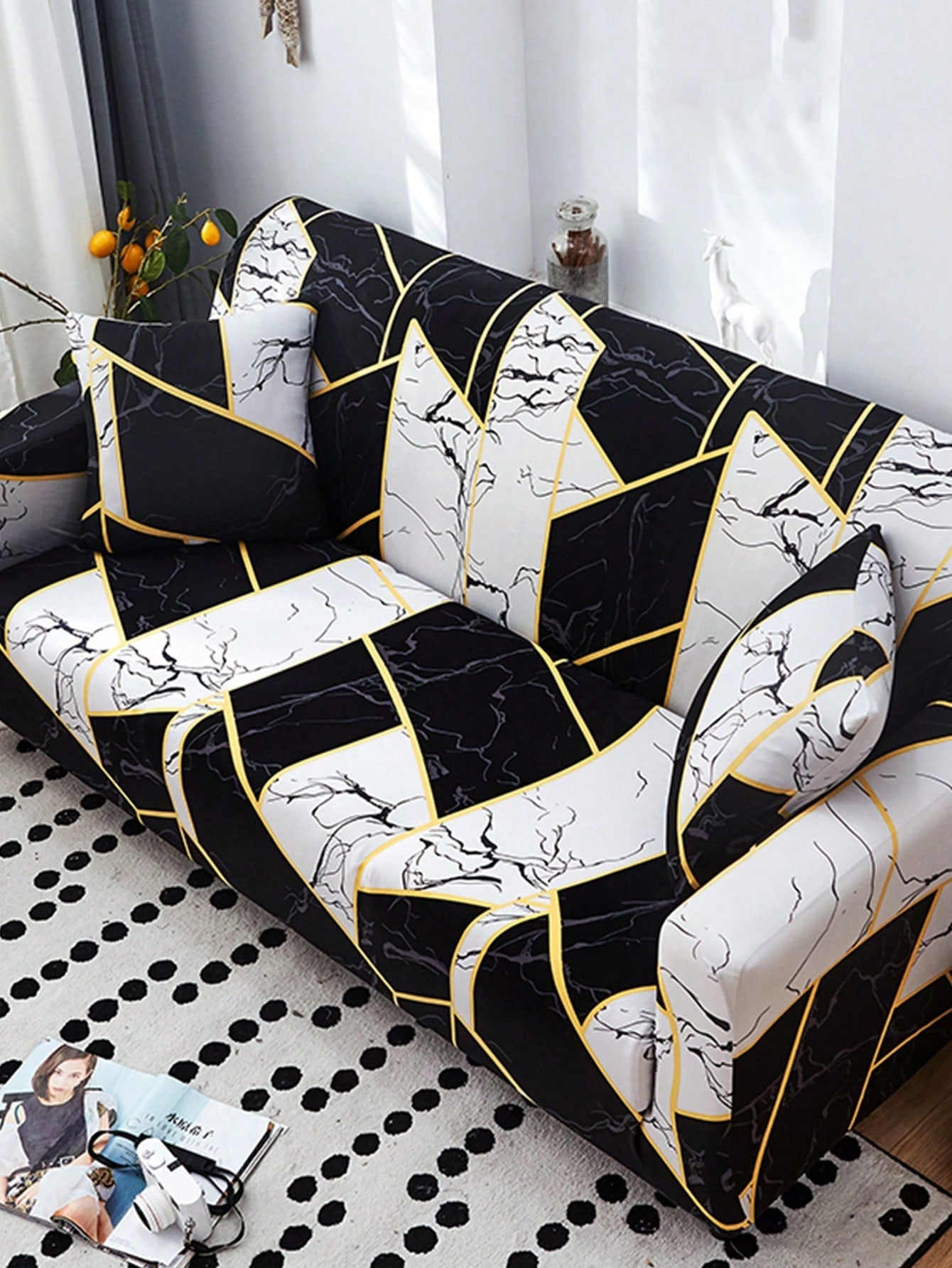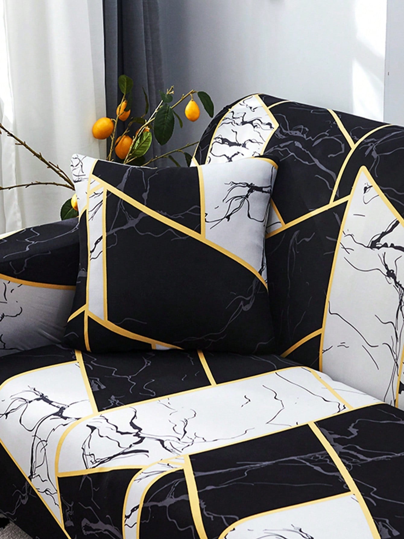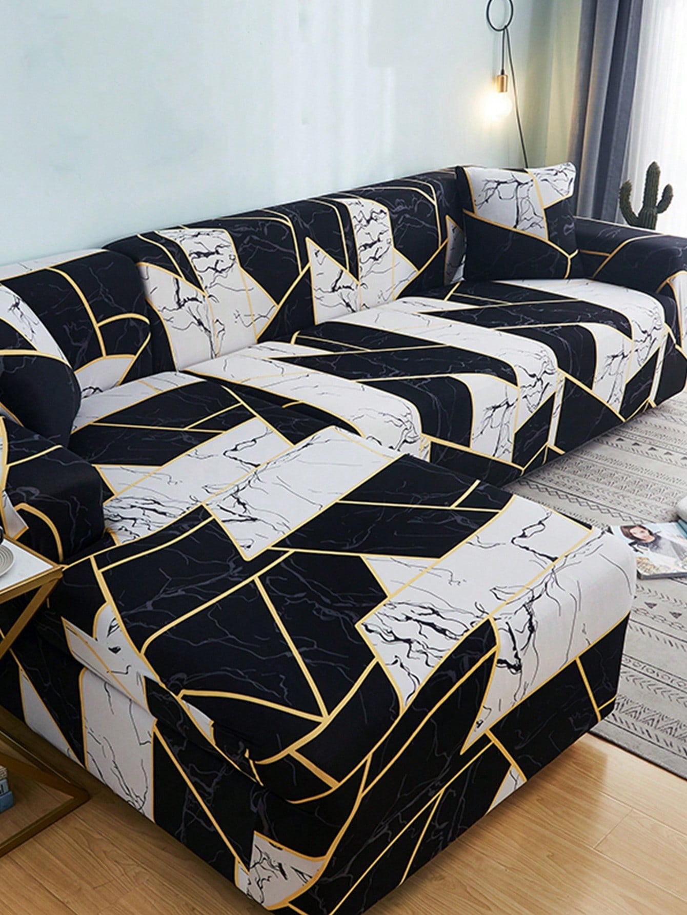 Fodera per divano elasticizzata con motivo geo divano moderno colorblock per