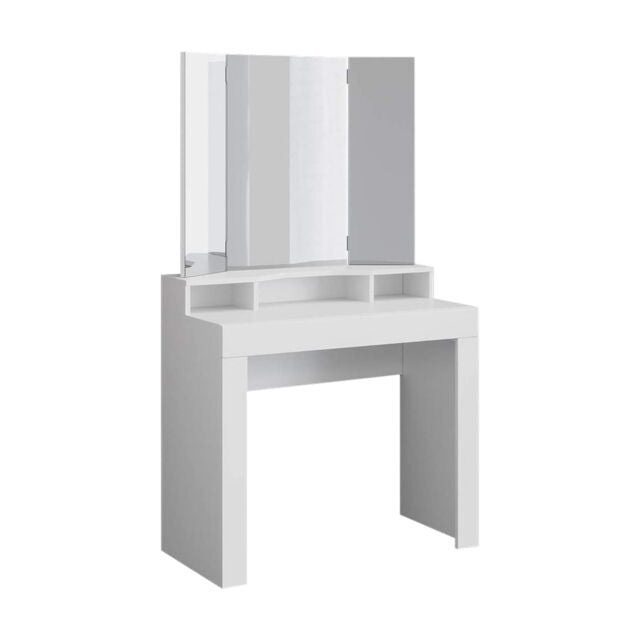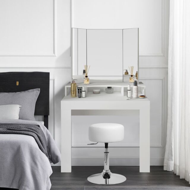 Tavolino cosmetico toeletta da trucco bianco con specchio e sgabello