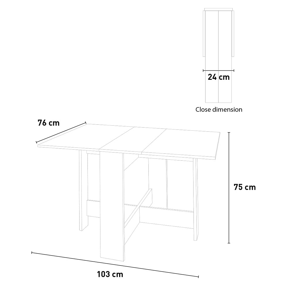 Questo moderno tavolo pieghevole si adatta a qualsiasi ambiente della vostra casa ed è dotato di un sistema a ribalta unico che consente di aprire il tavolo in modo indipendente e in base alle esigenze del momento, su uno o entrambi i lati.