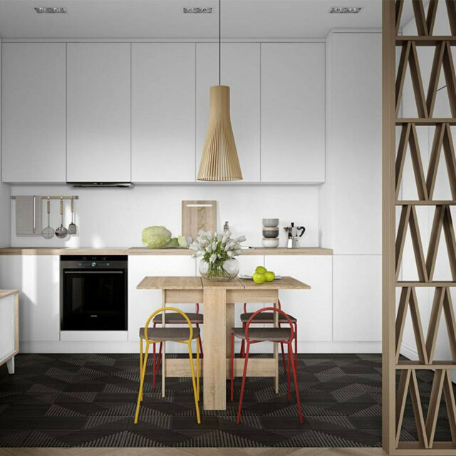 La struttura portante è costruita in legno MDF solido e resistente per l’uso in cucina o nelle sale da pranzo più piccole, mentre il piano d’appoggio è rifinito in melaminico il che rende la superficie non solo facile da pulire e liscia al tatto ma anche resistente ai graffi e durevole nel tempo.