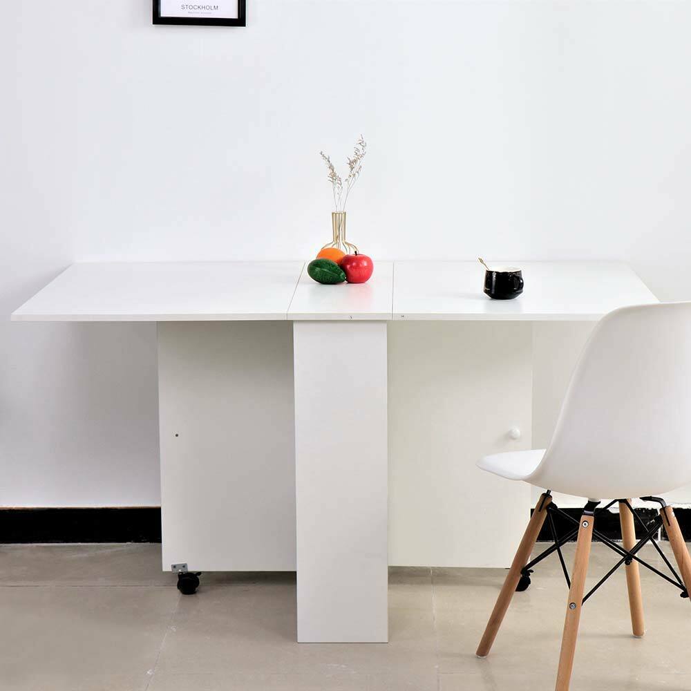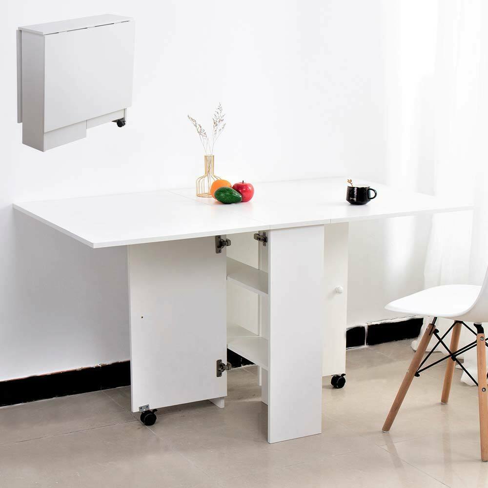 1 x Tavolo Pranzo Scrivania con Libreria Richiudibile Allungabile a Scomparsa Bianco