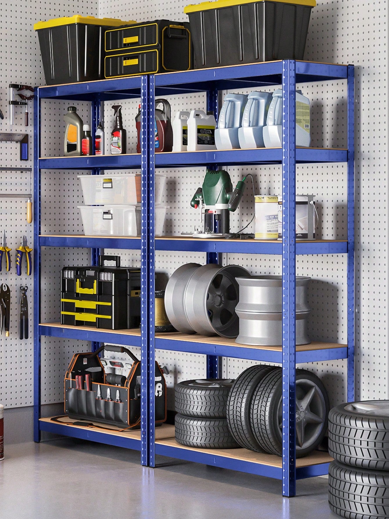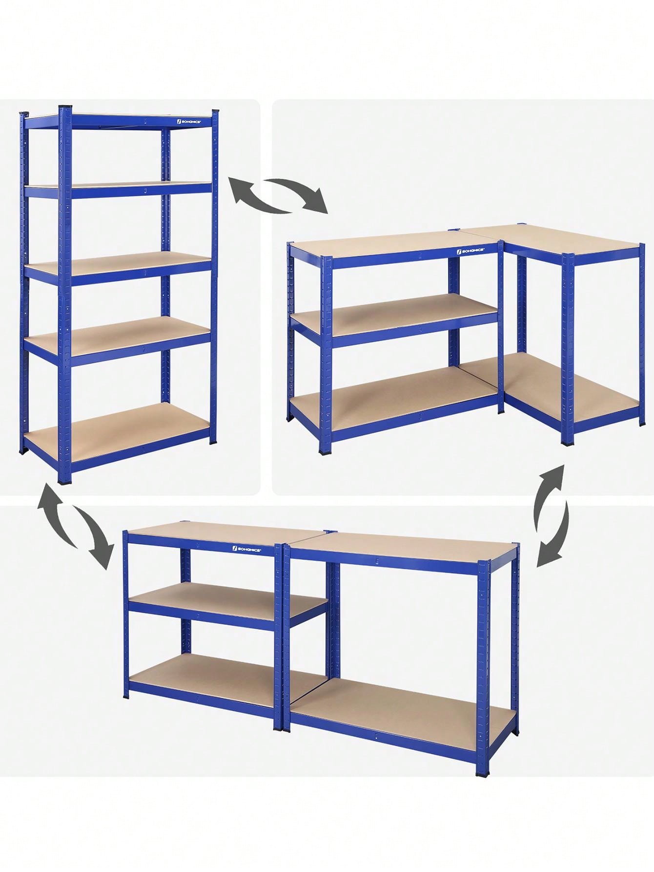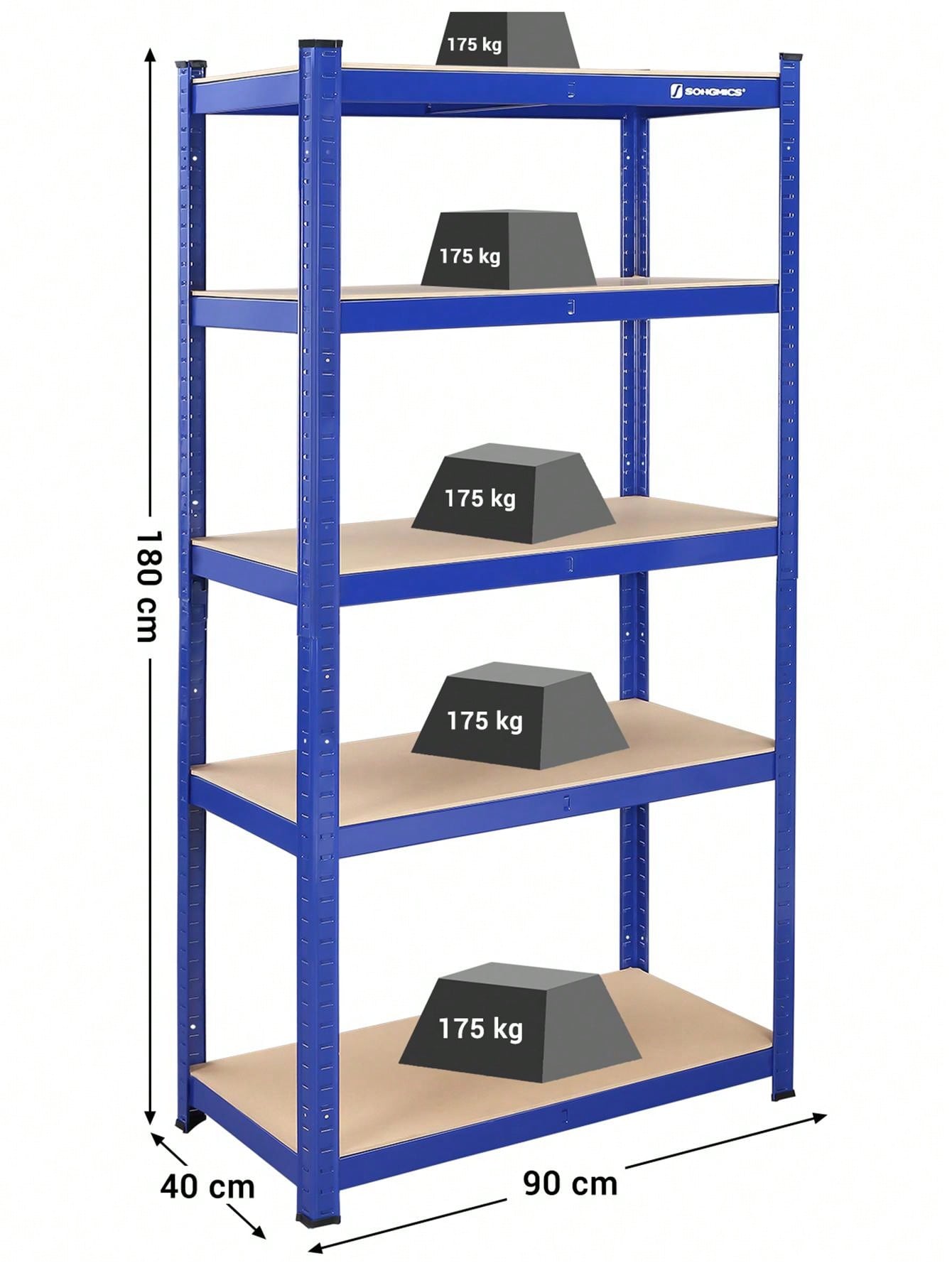 Cosa ricevi: Una scaffalatura a 5 piani per impieghi gravosi con bordi orlati, tappi in plastica, un accessorio anti-ribaltamento per una casa sicura, un facile montaggio e l'opportunità di riordinare un garage, un capannone, una cantina, un seminterrato, un ripostiglio, un'officina o un negozio -