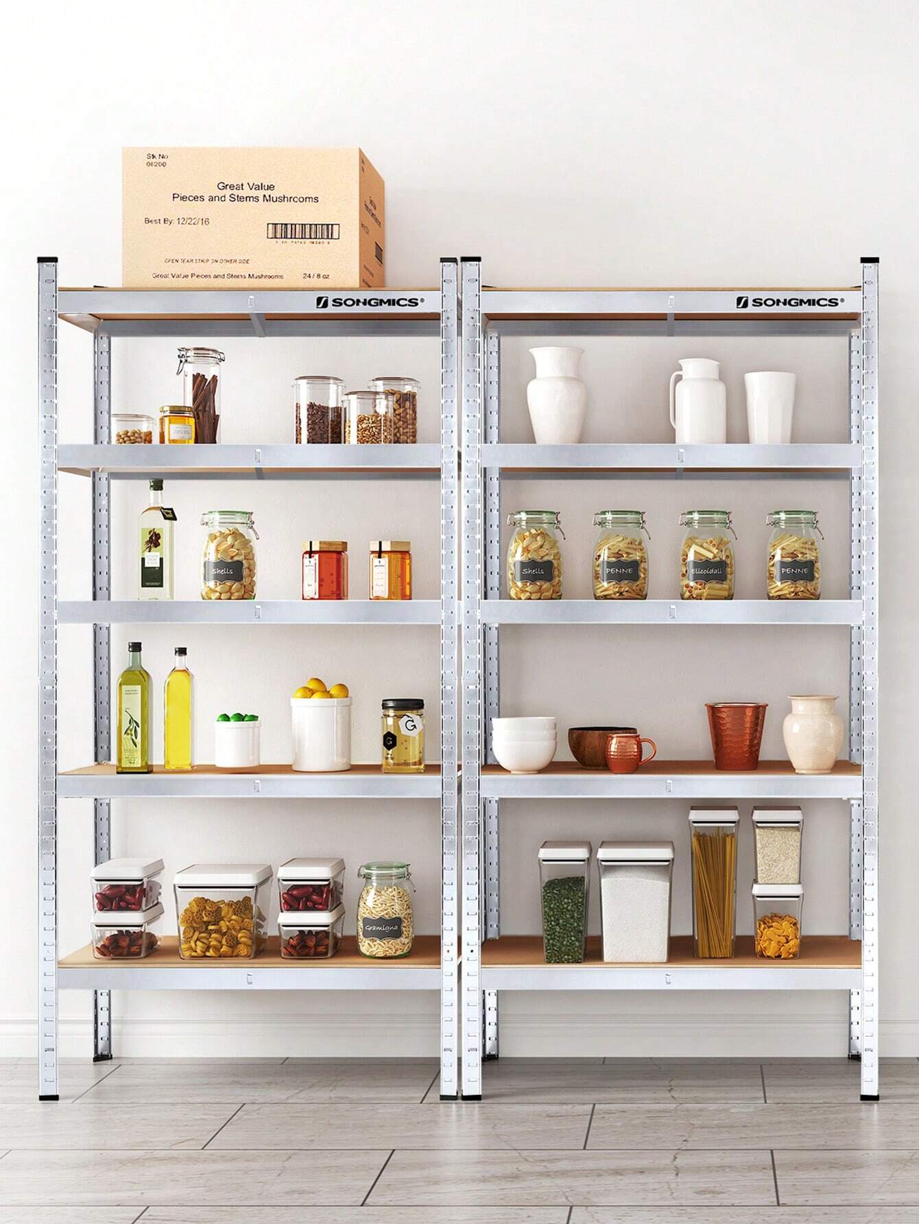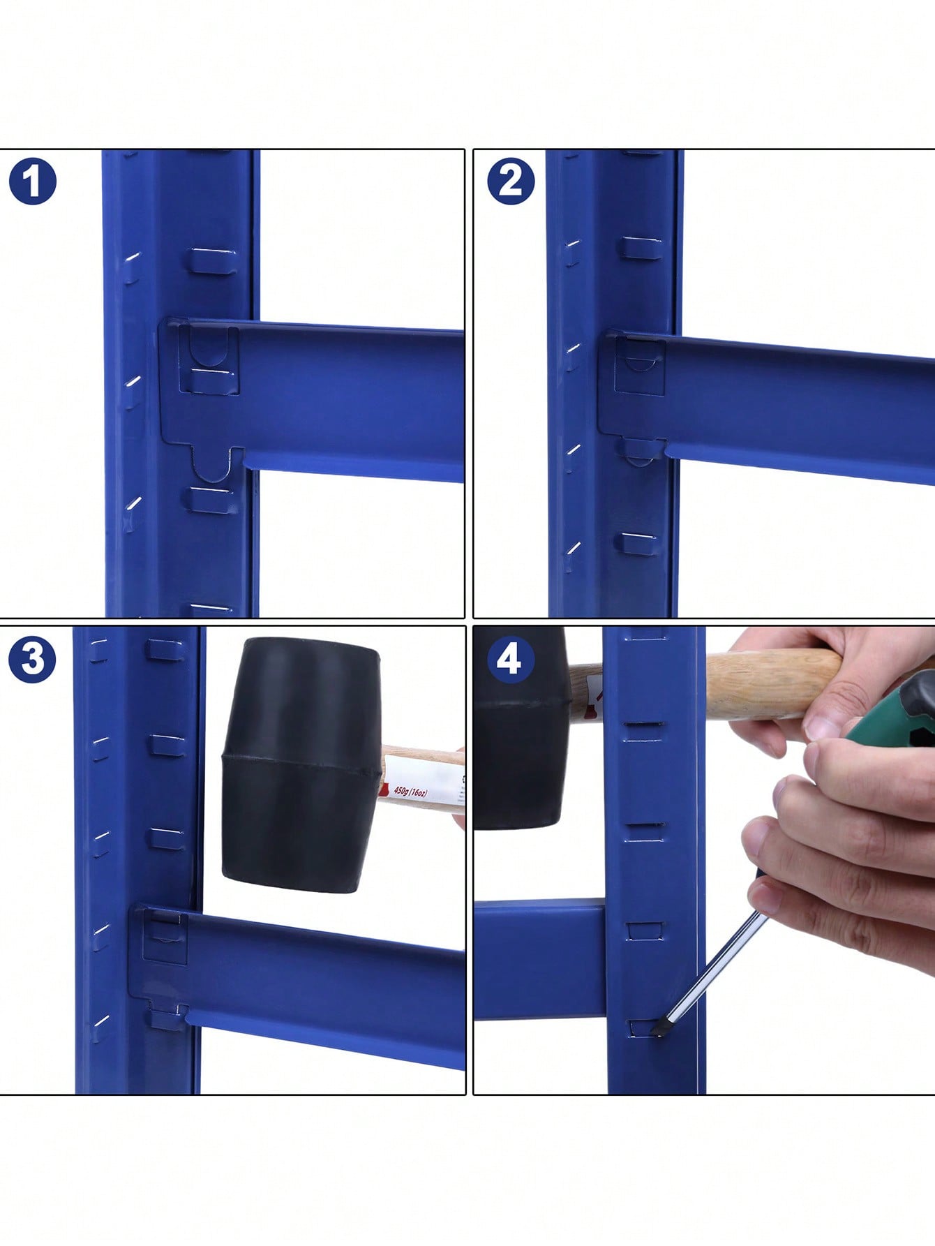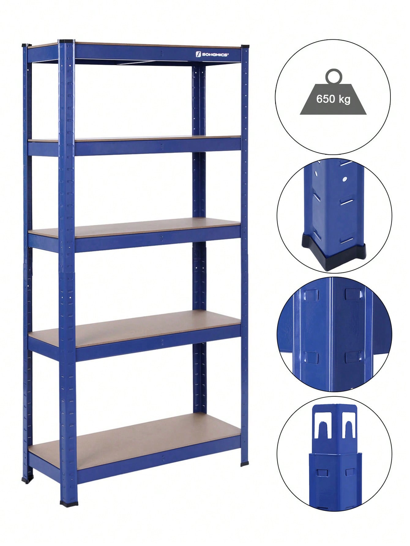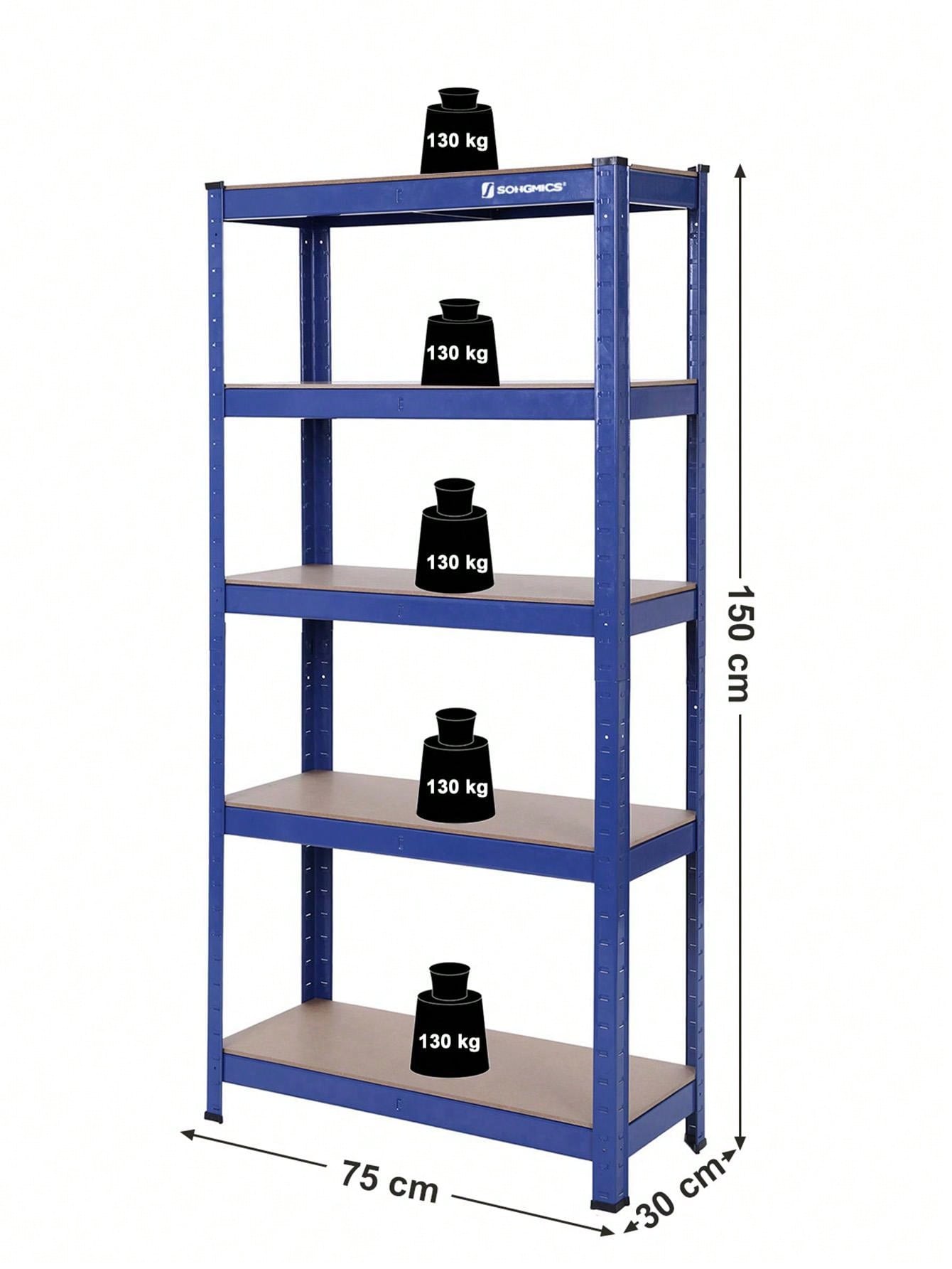 Cosa ricevi: Una scaffalatura a 5 piani per impieghi gravosi con bordi orlati, tappi in plastica, un accessorio anti-ribaltamento per una casa sicura, un facile montaggio e l'opportunità di riordinare un garage, un capannone, una cantina, un seminterrato, un ripostiglio, un'officina o un negozio -