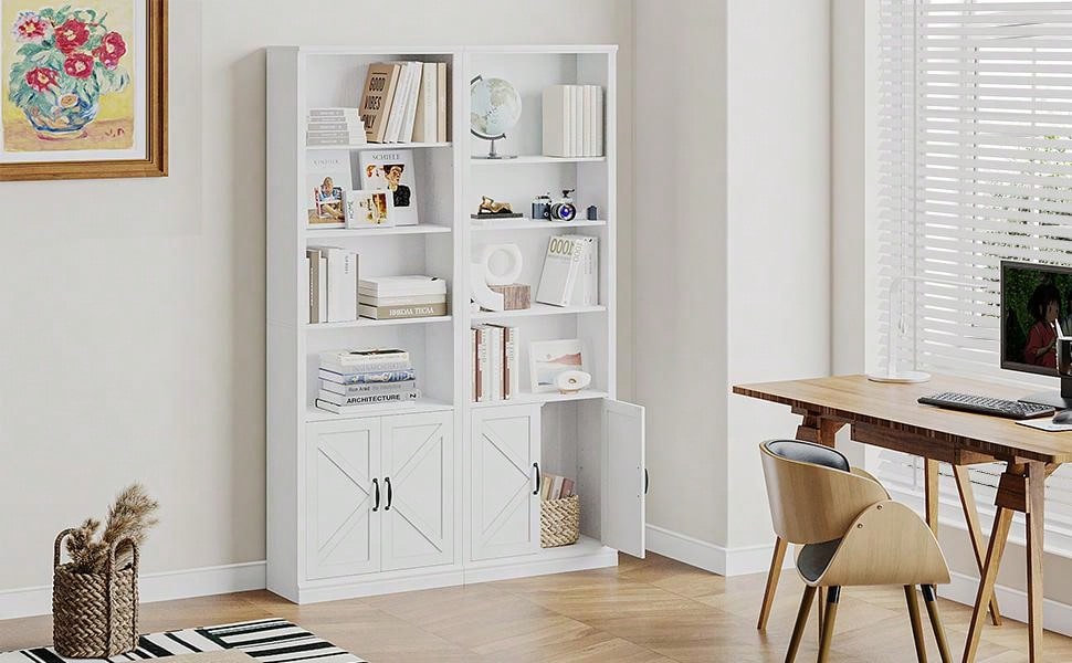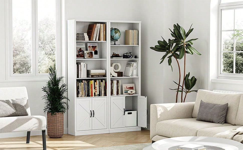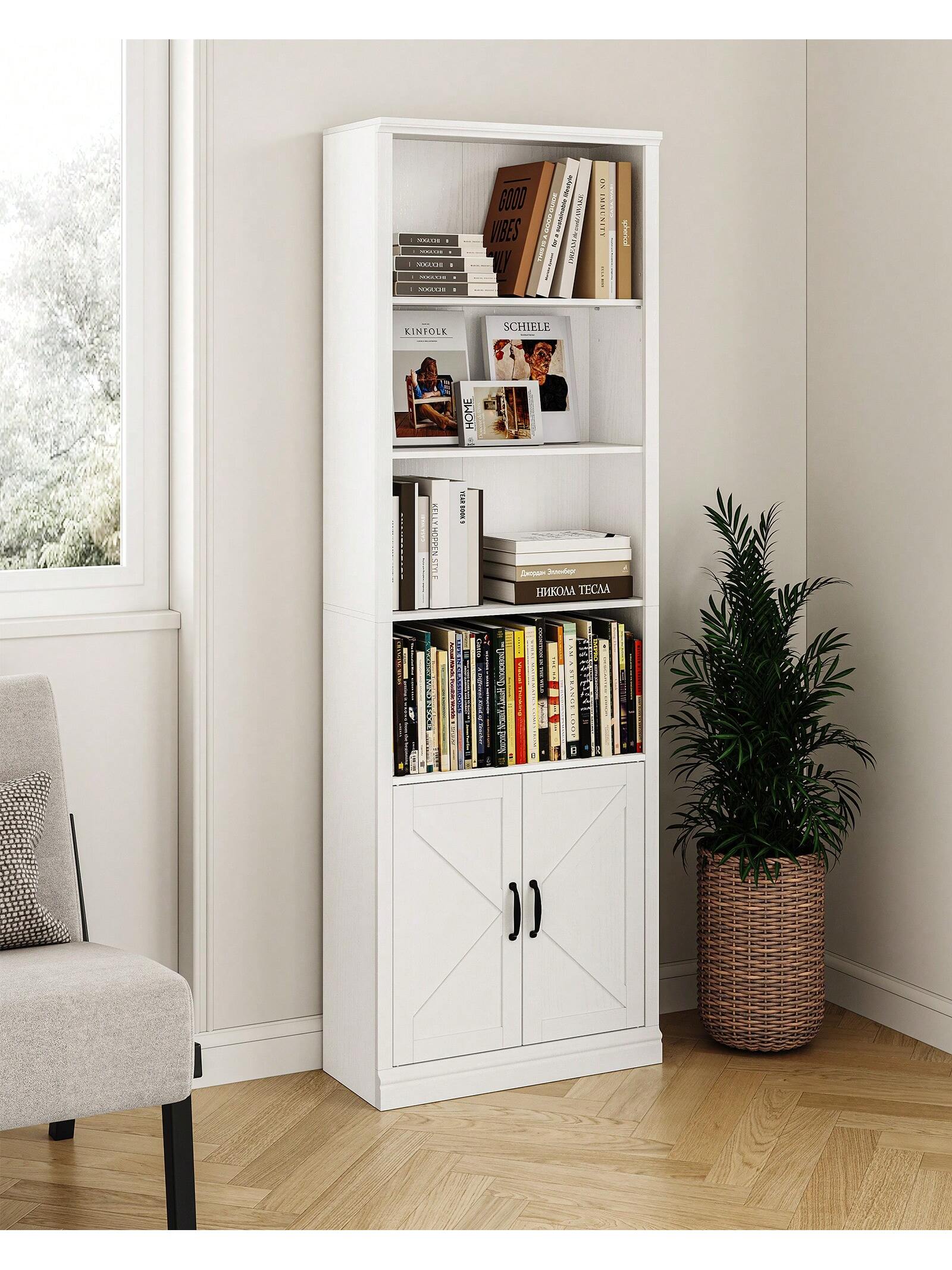 Libreria a 5 Ripiani in Piedi con Ante dell'Armadio Scaffale Alto per Collezionismo