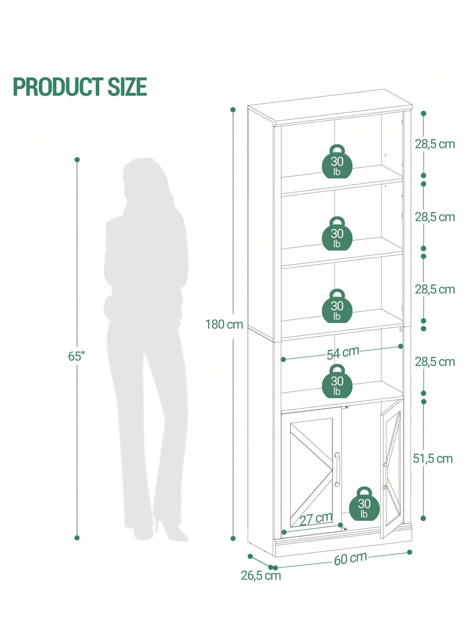 -Dimensioni: 26 x 60 x 180 cm (P x L x A)