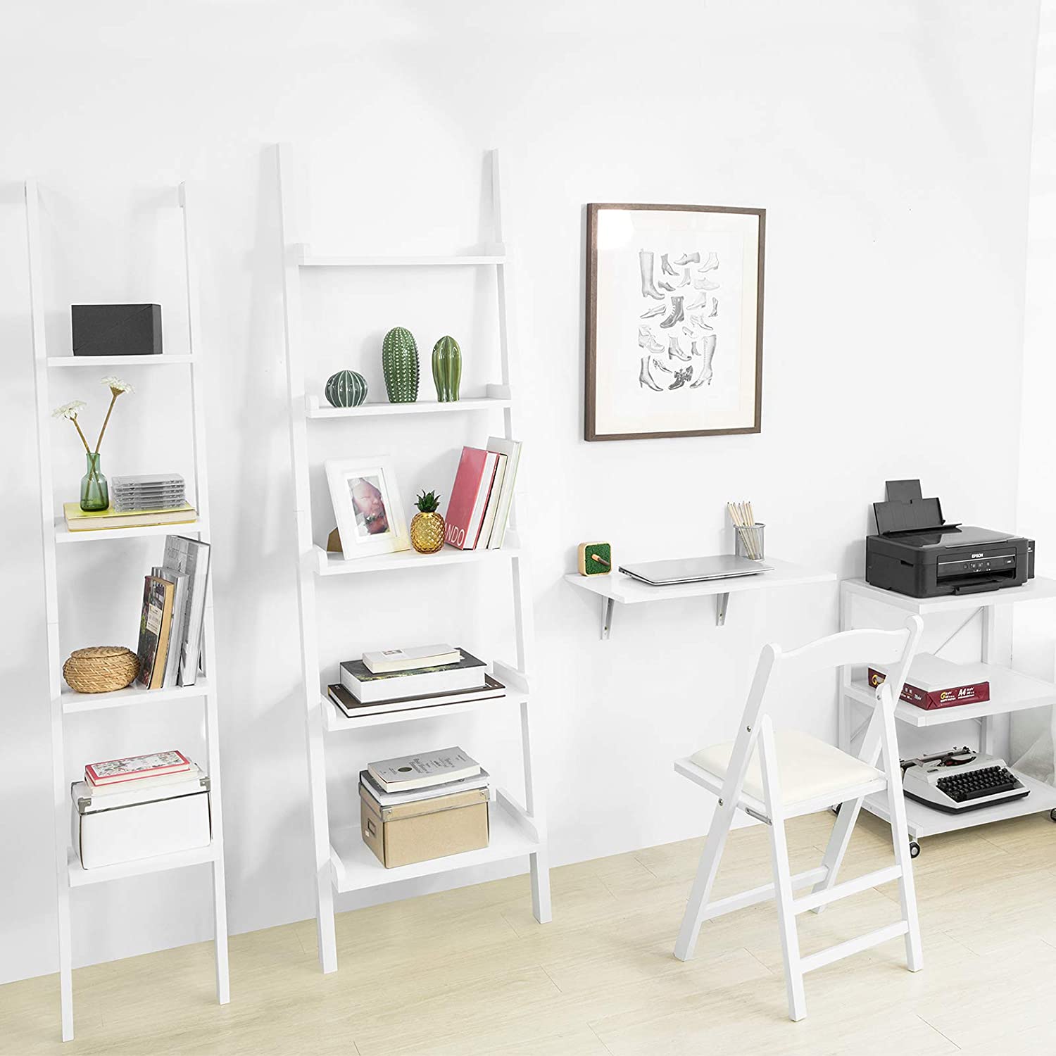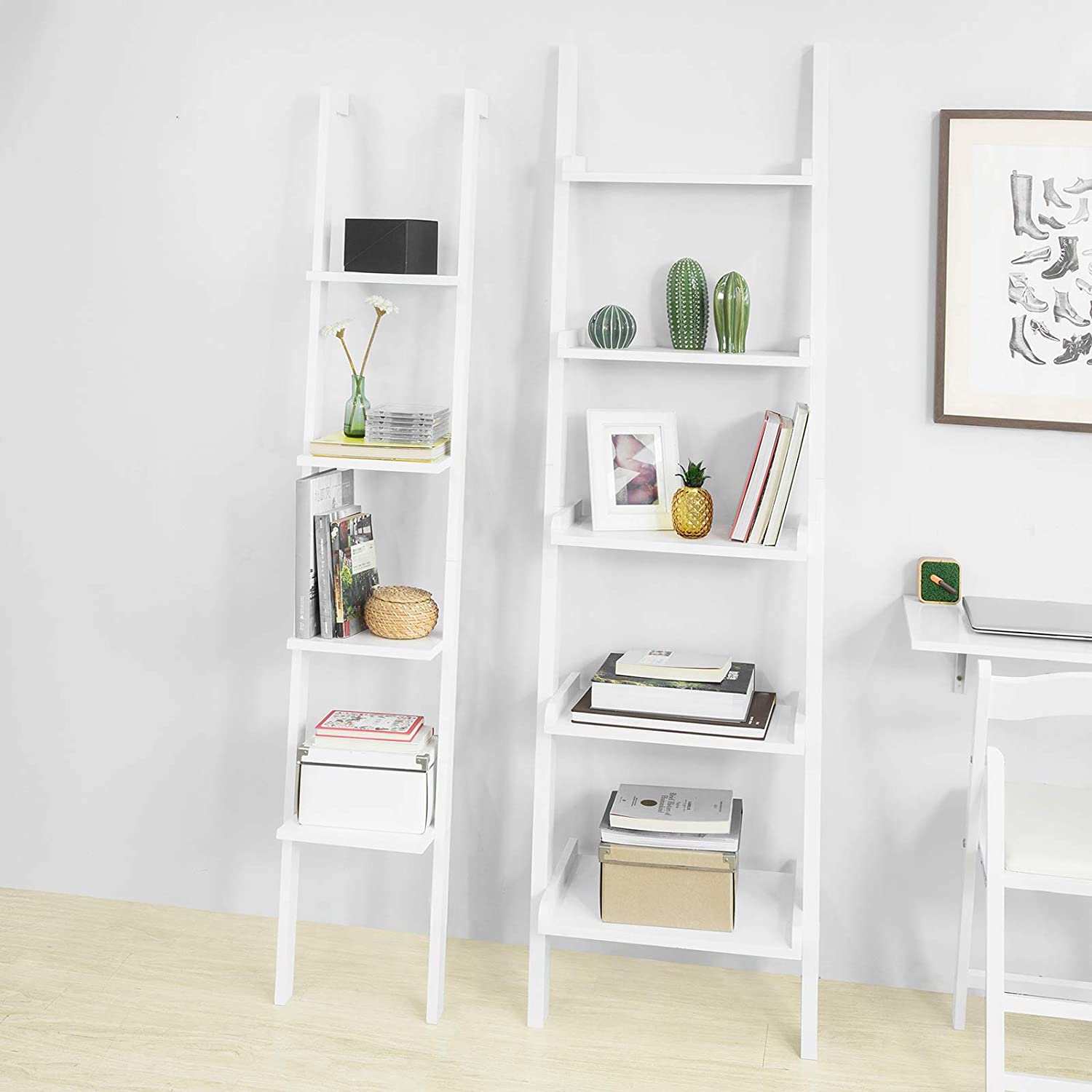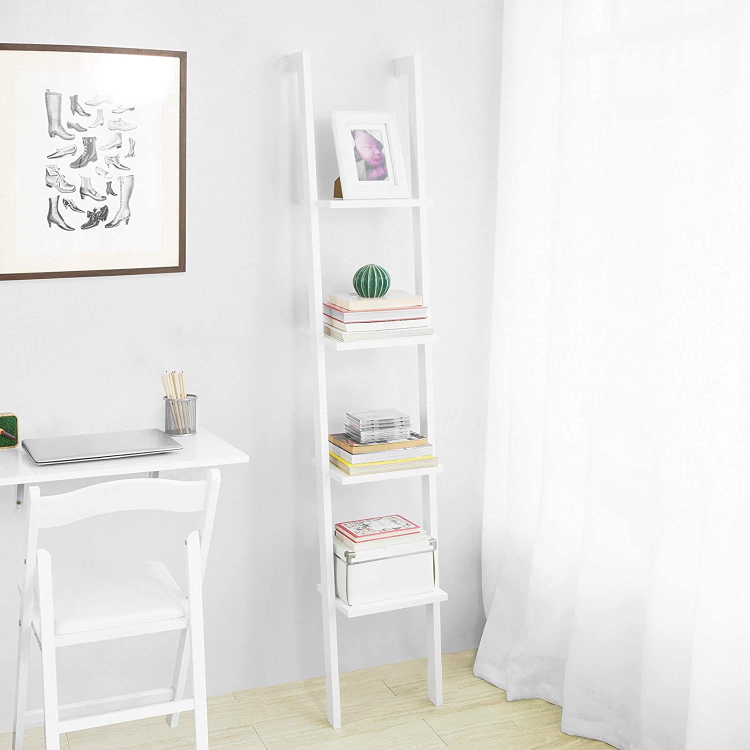 Libreria mensola  Scaffale a scala moderno con quattro ripiani. Uno scaffale moderno per tutti quelli che adorano decorare. Con il suo design elegante e semplice può essere usato ovunque (anche in bagno). Perfetto per presentare sopramobili e decorazioni o anche semplicemente come libreria. L'articolo è disponibile nei colori: bianco, nero,...